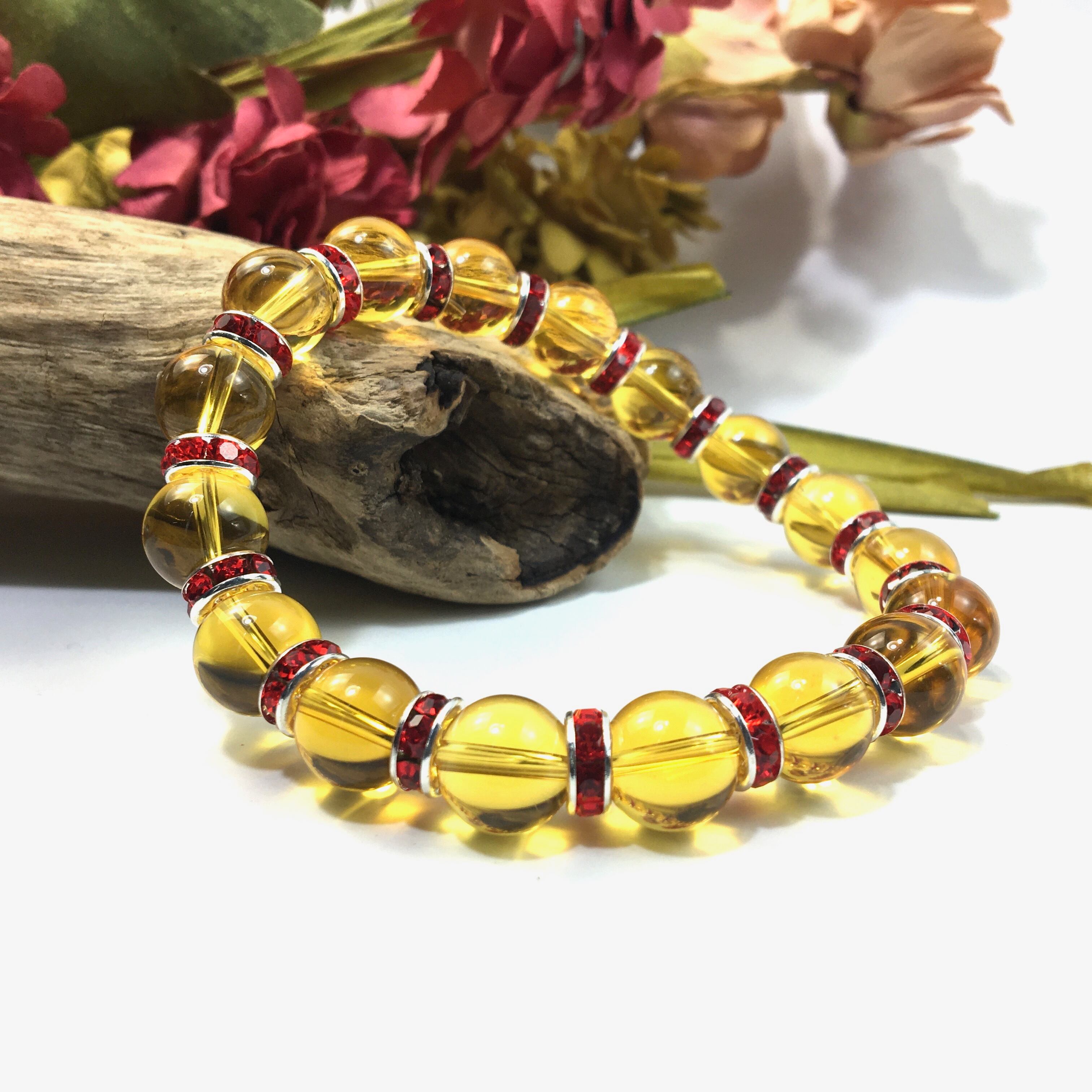 シトリン パワーストーン ブレスレット 10mm (レッド)メンズ・レディース 男性・女性 数珠ブレス 開運 ☆
