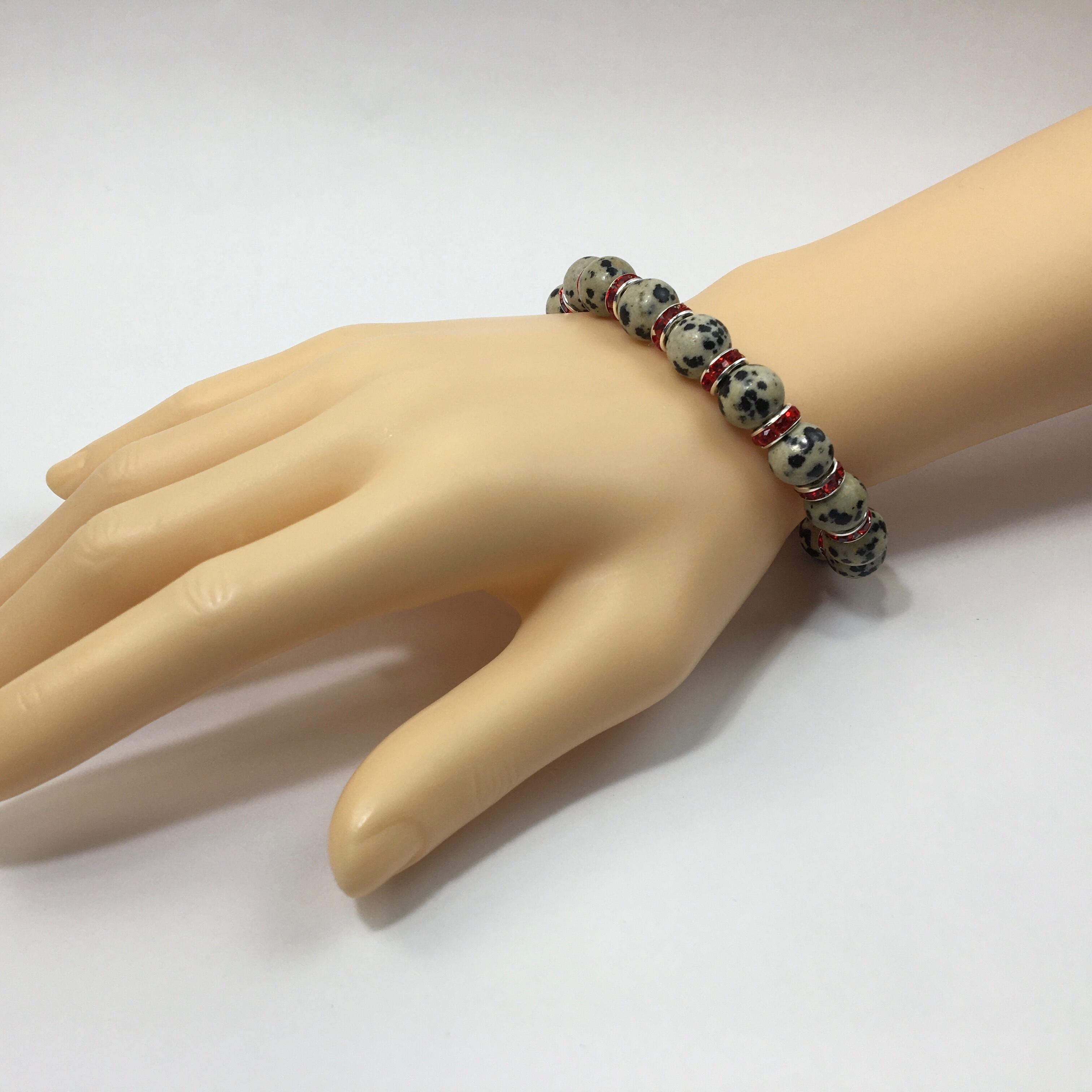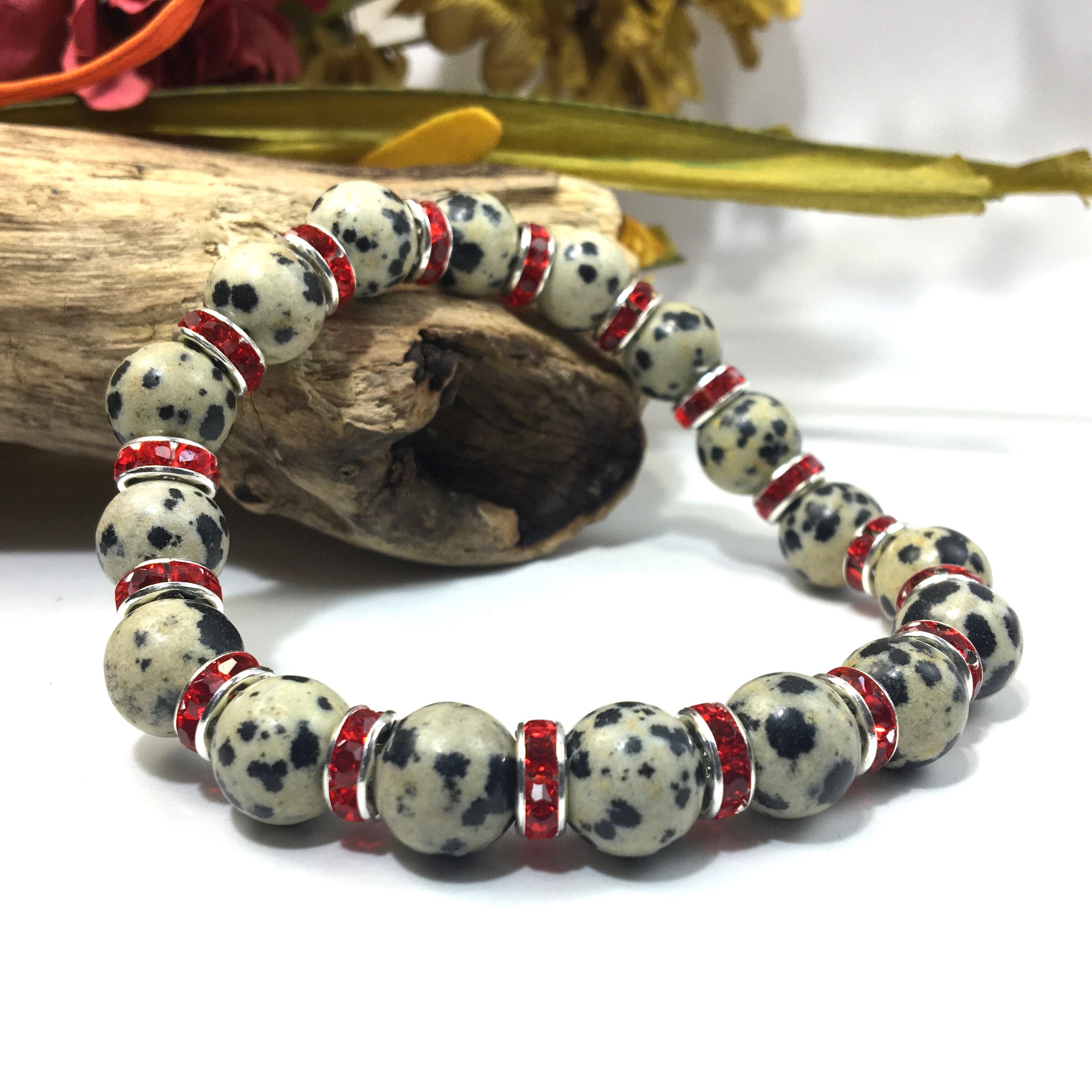 ダルメシアンジャスパー パワーストーン ブレスレット 天然石 10mm (レッド)メンズ・レディース 男性・女性 数珠ブレス 開運 ☆