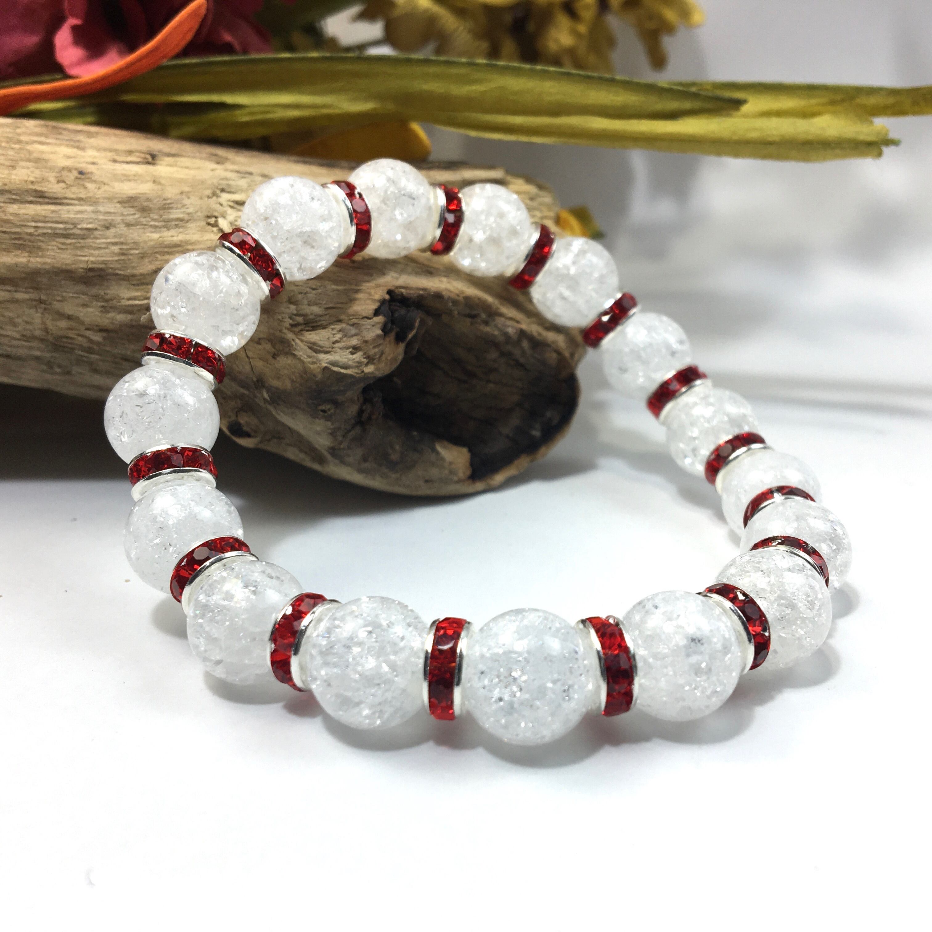 クラック水晶 パワーストーン ブレスレット 天然石 10mm (レッド)メンズ・レディース 男性・女性 数珠ブレス 開運 ☆