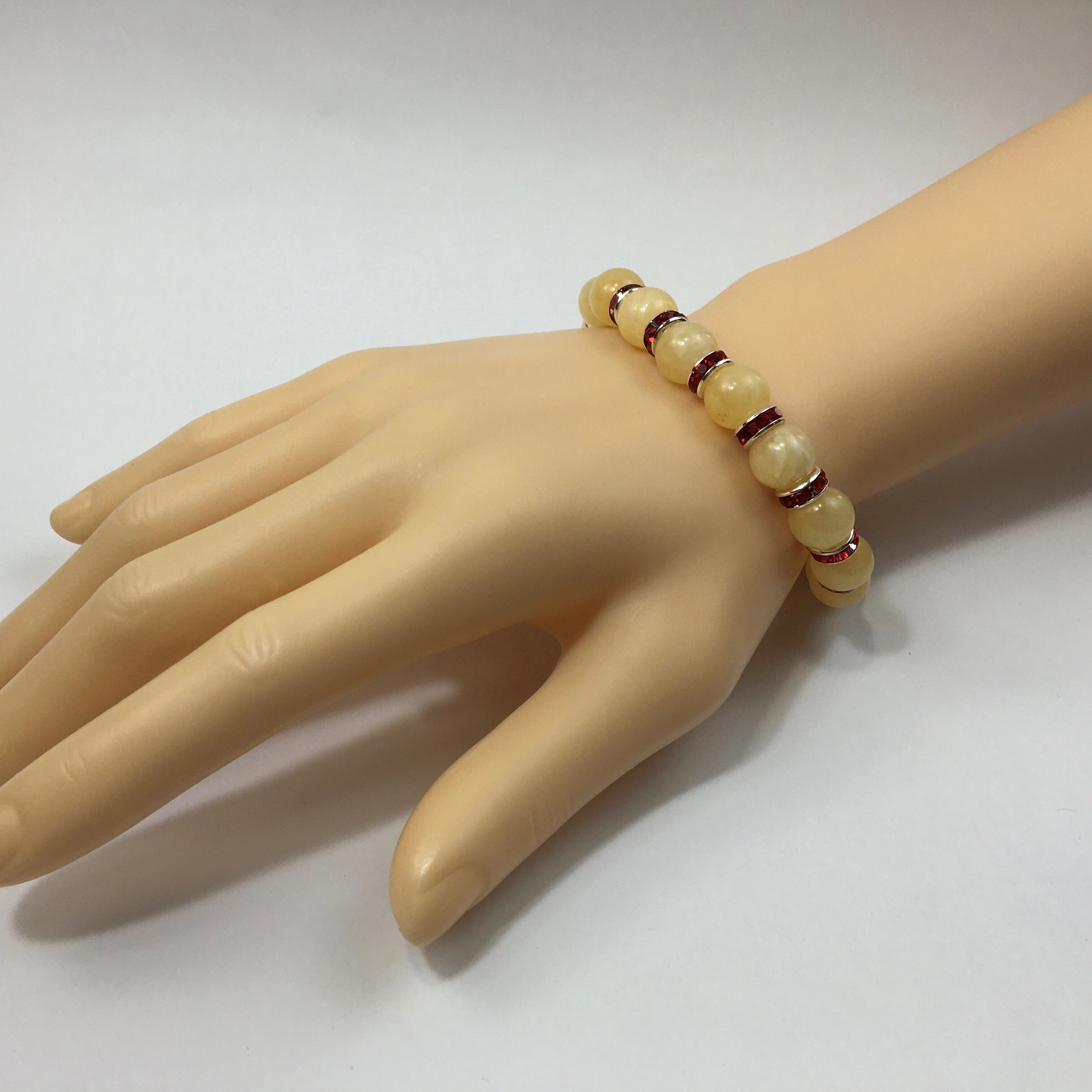 こちらは、アラゴナイトの10mm玉を使用したパワーストーンブレスレットです。石との間にはロンデルを挟み高級感を演出しております。シンプルなデザインは、シーン問わずどんなコーディネートとも合わせ易いブレスレットです。サイズは種類を選択からお選びください。(内周約14cm?内周約22cmでお選び頂けます)当社の中でも一番人気の実績があるデザインとなっております。気になる方はお早めにどうぞ。