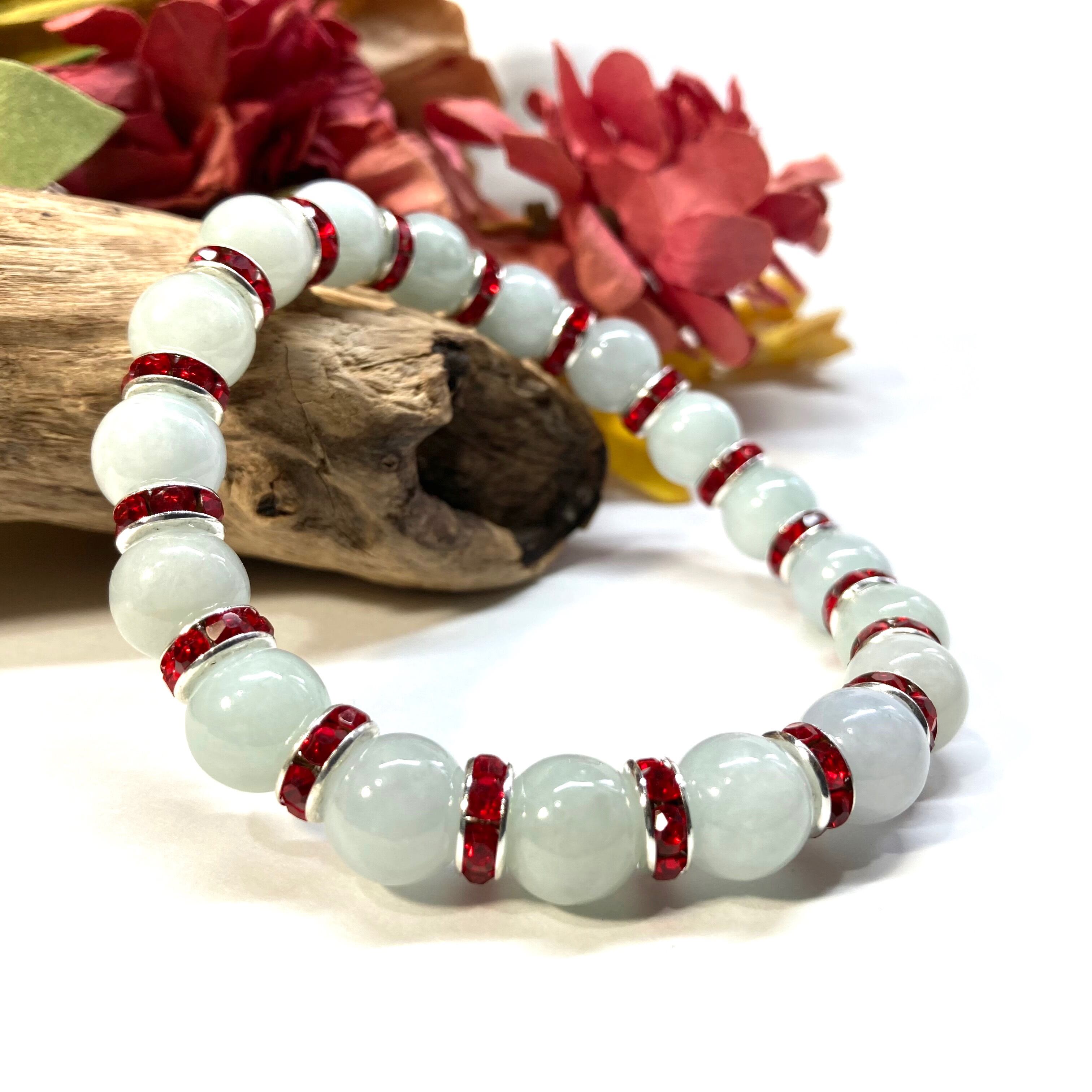 ビルマ翡翠 パワーストーン ブレスレット 天然石 10mm (レッド)メンズ・レディース 男性・女性 数珠ブレス 開運 ☆