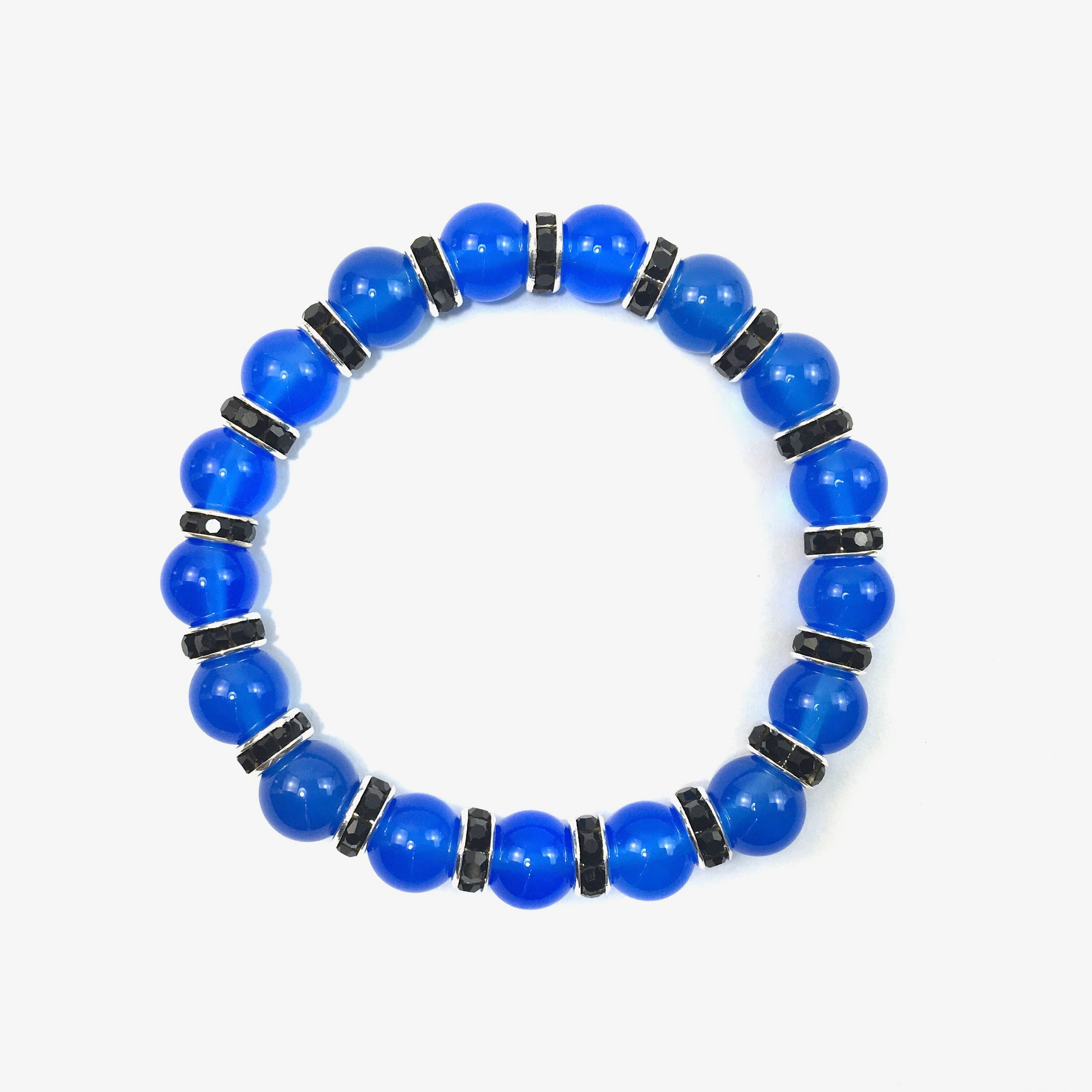 こちらは、青瑪瑙の10mm玉を使用したパワーストーンブレスレットです。石との間にはロンデルを挟み高級感を演出しております。シンプルなデザインは、シーン問わずどんなコーディネートとも合わせ易いブレスレットです。サイズは種類を選択からお選びください。(内周約14cm?内周約22cmでお選び頂けます)当社の中でも一番人気の実績があるデザインとなっております。気になる方はお早めにどうぞ。