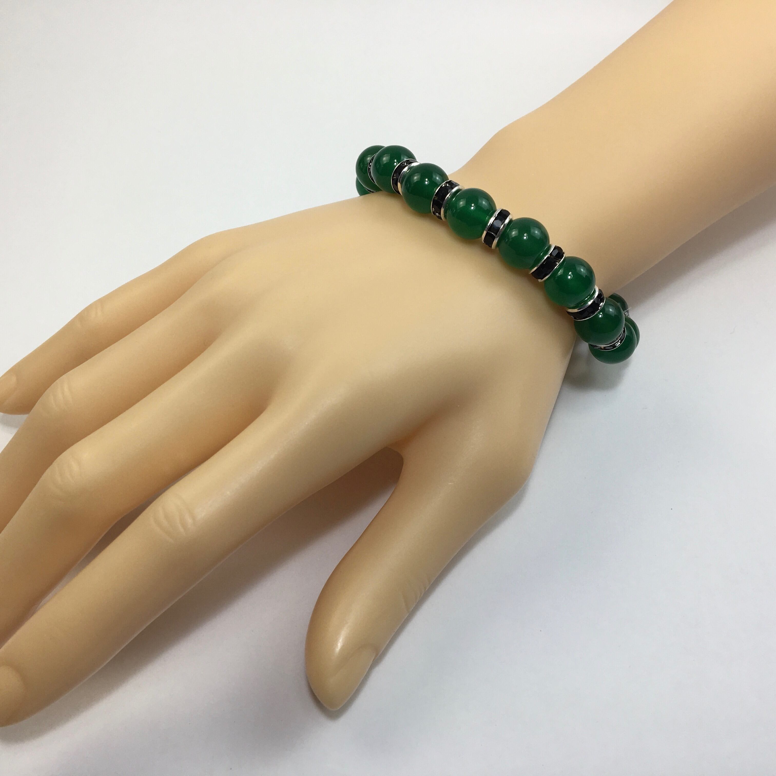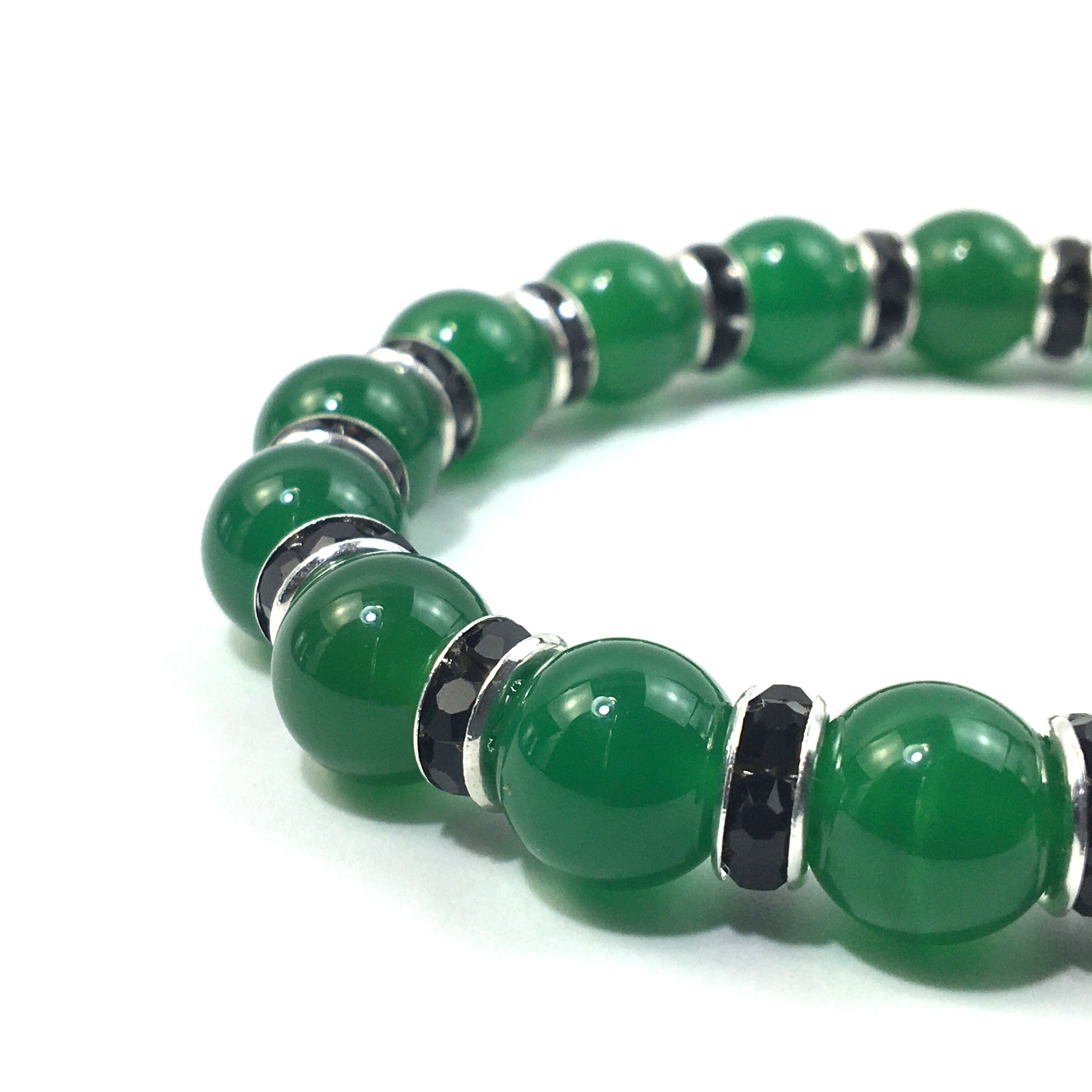 緑瑪瑙 パワーストーン ブレスレット 天然石 10mm (ブラック)メンズ・レディース 男性・女性 数珠ブレス 開運 ☆