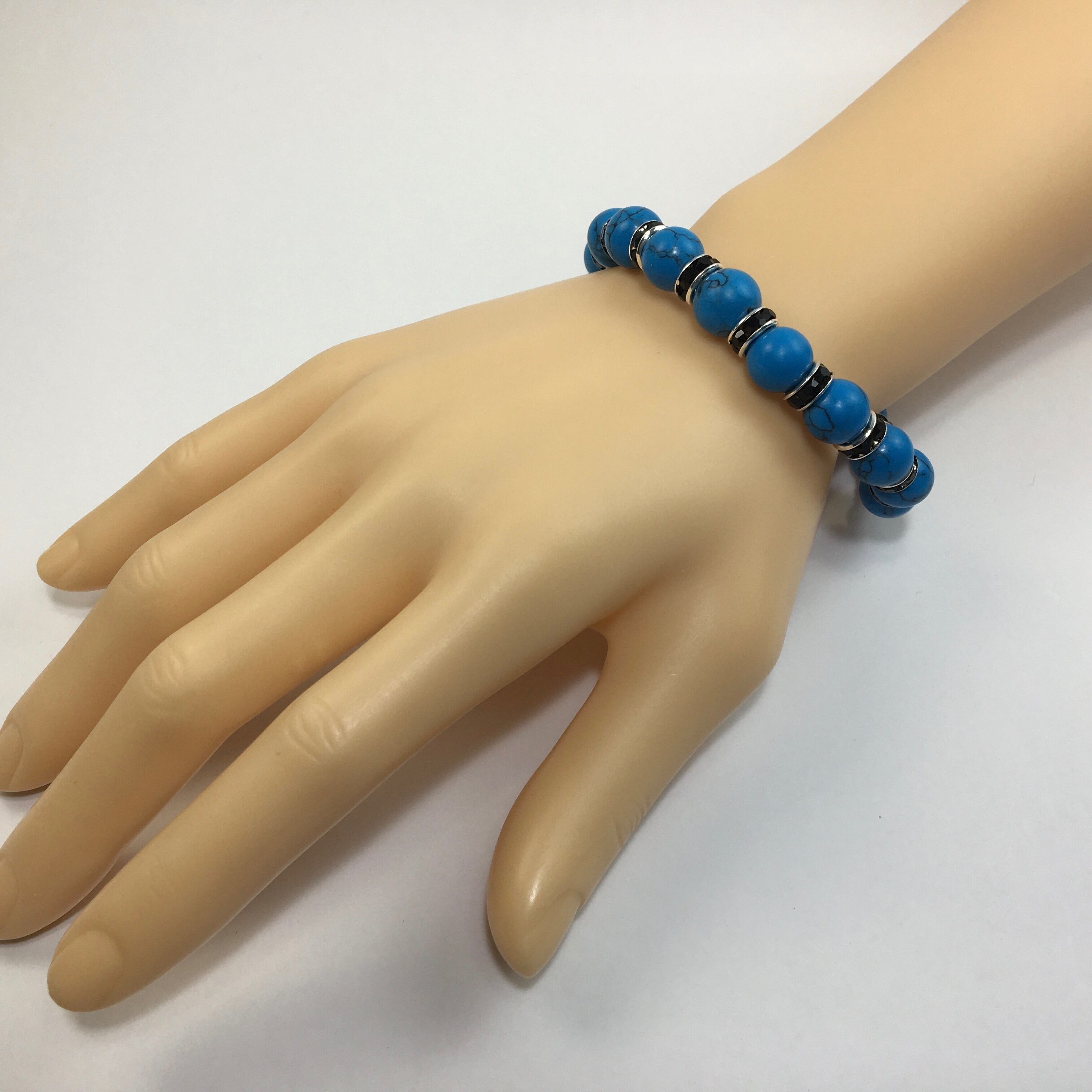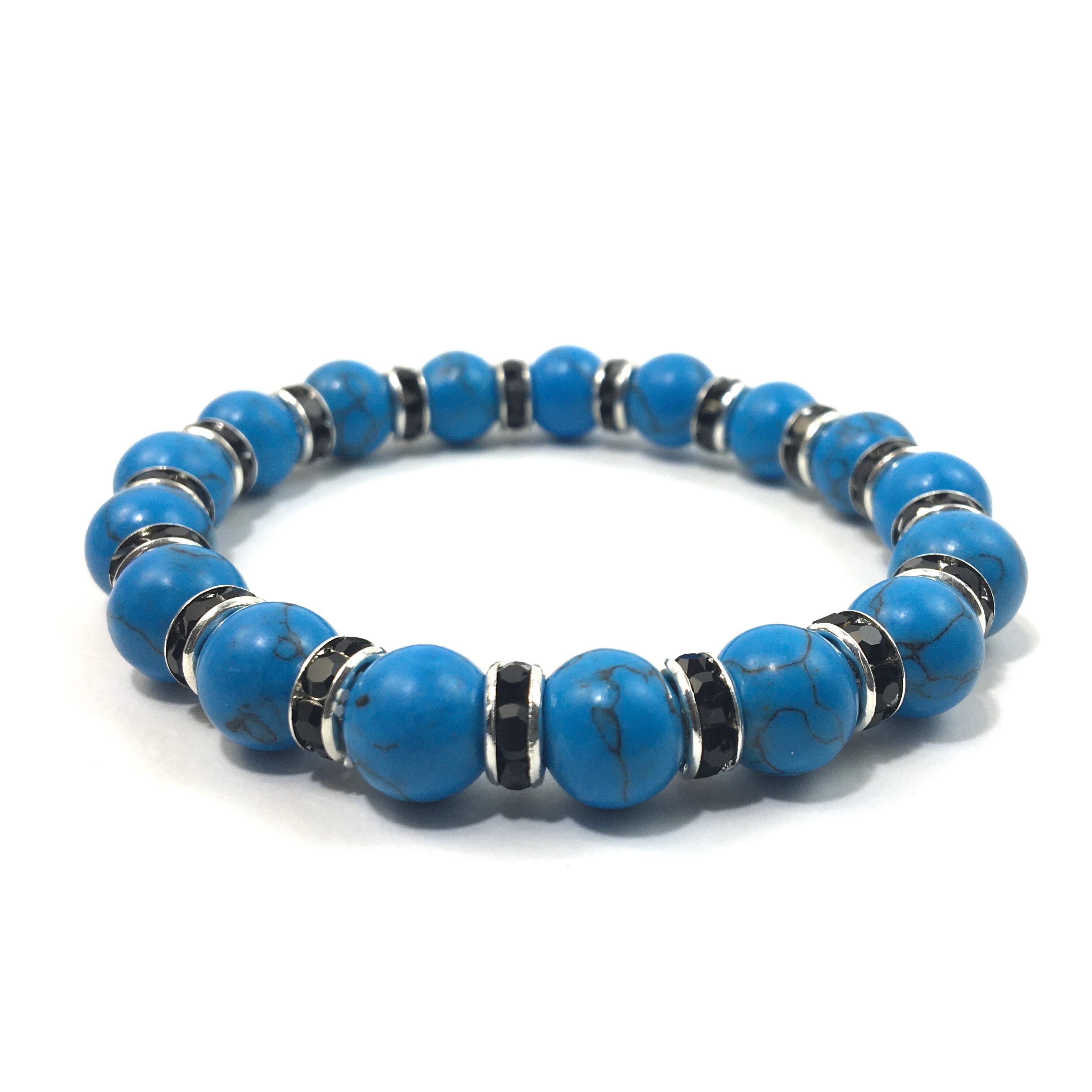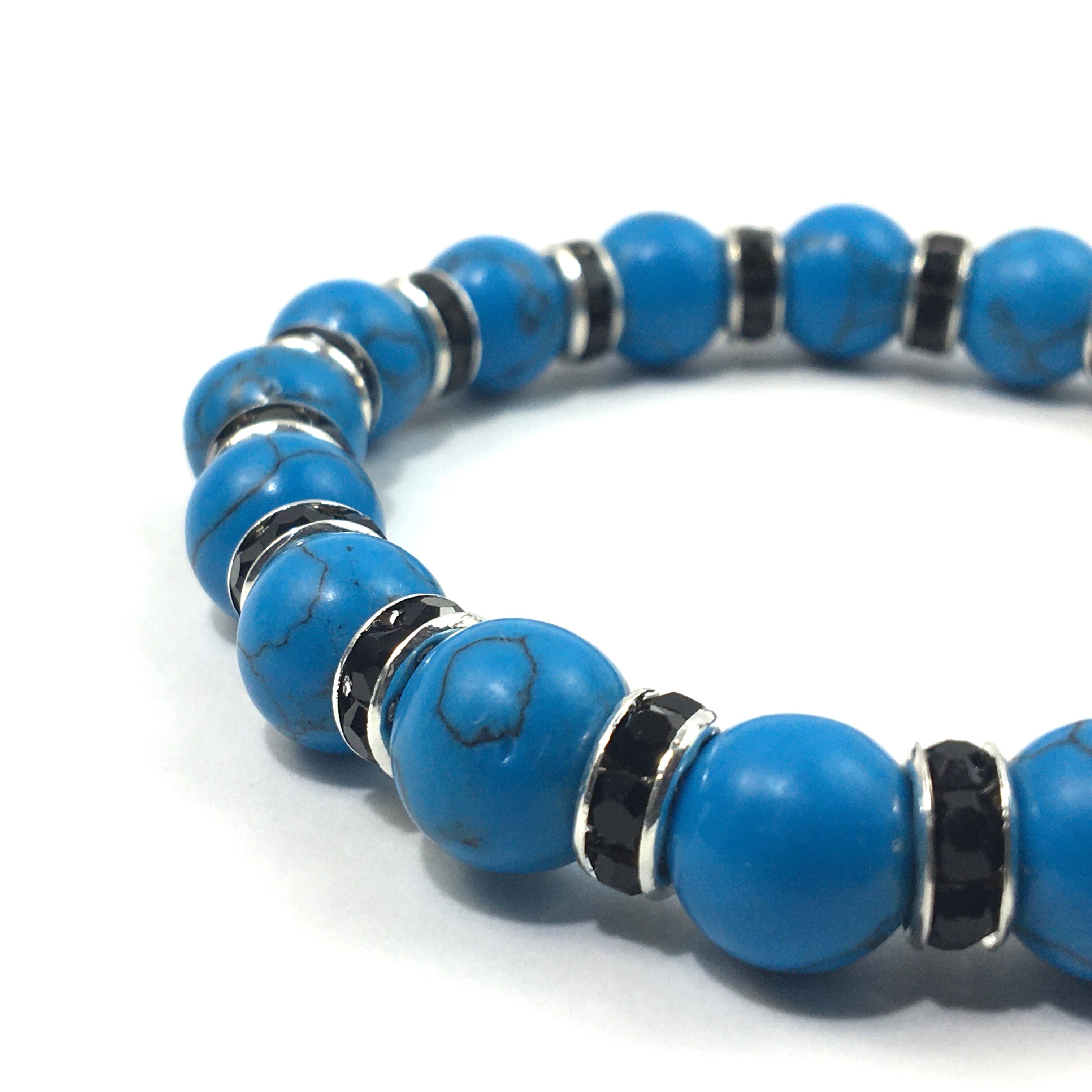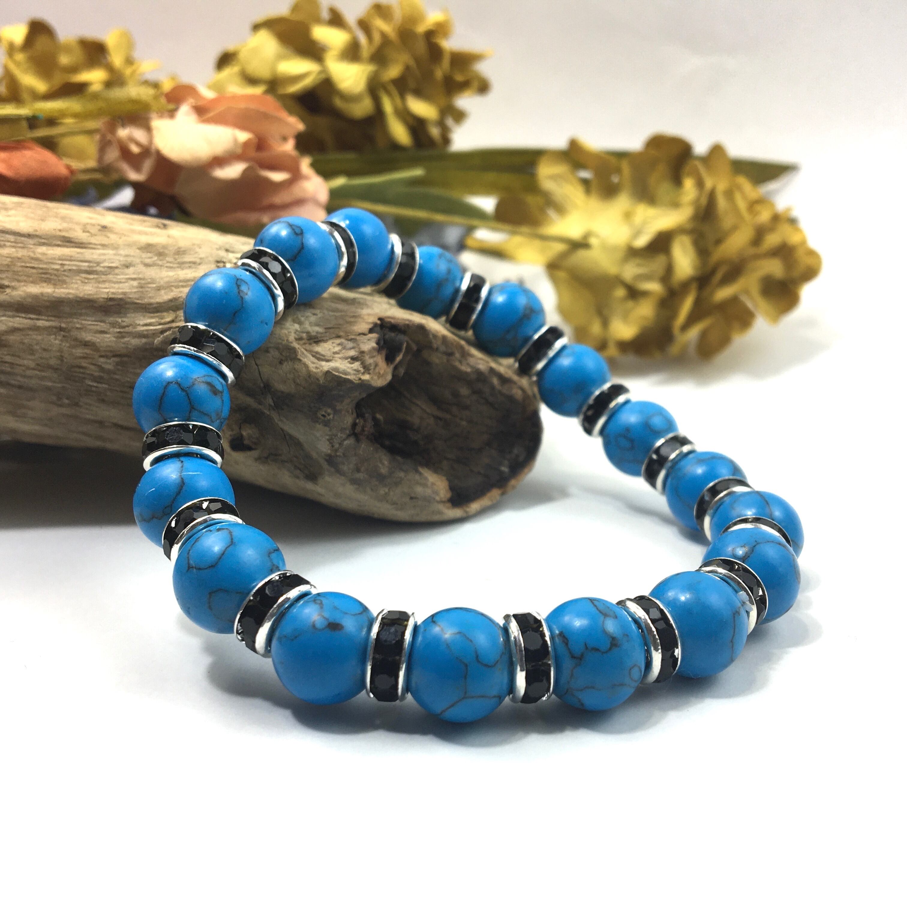 ターコイズ パワーストーン ブレスレット 10mm (ブラック)メンズ・レディース 男性・女性 数珠ブレス 開運 ☆