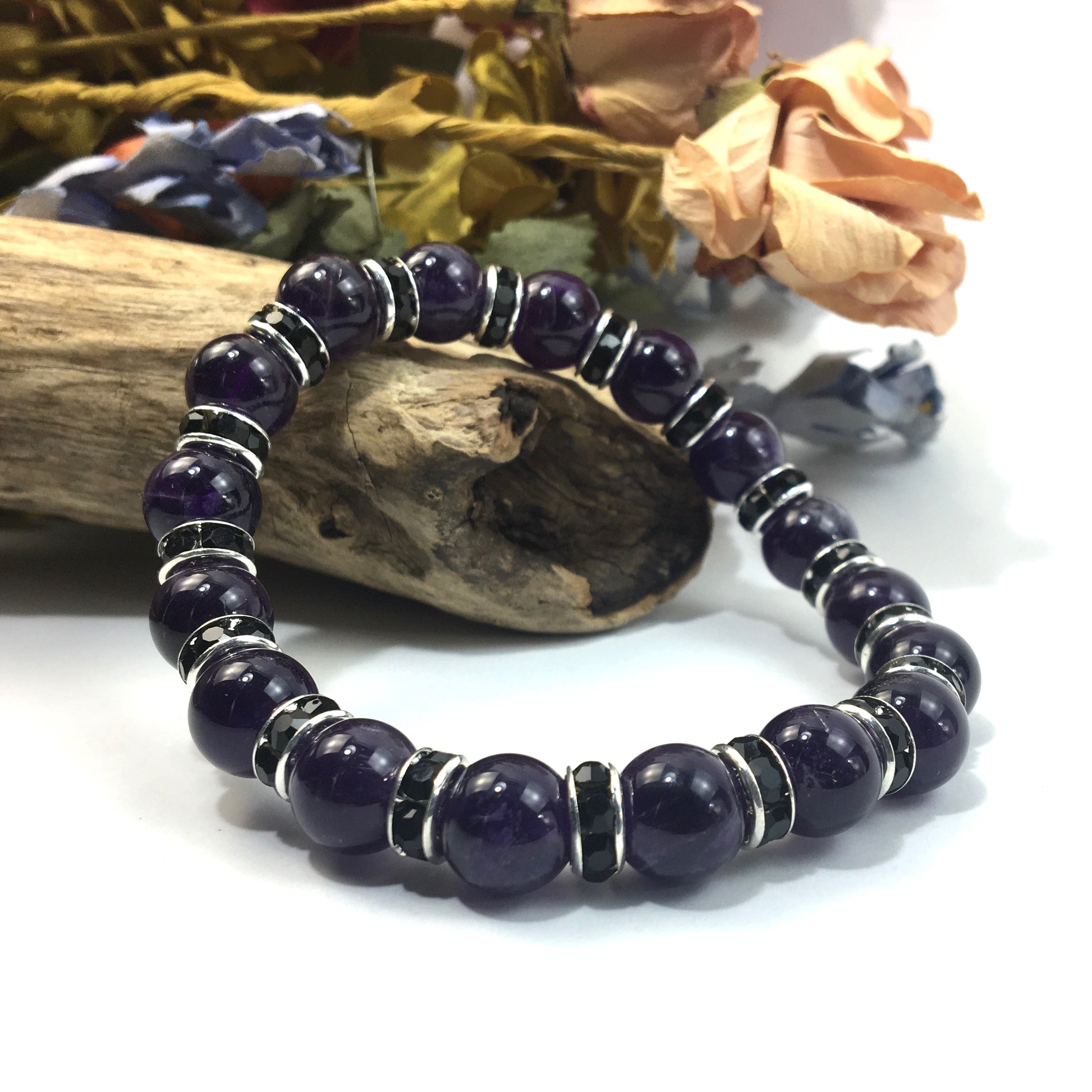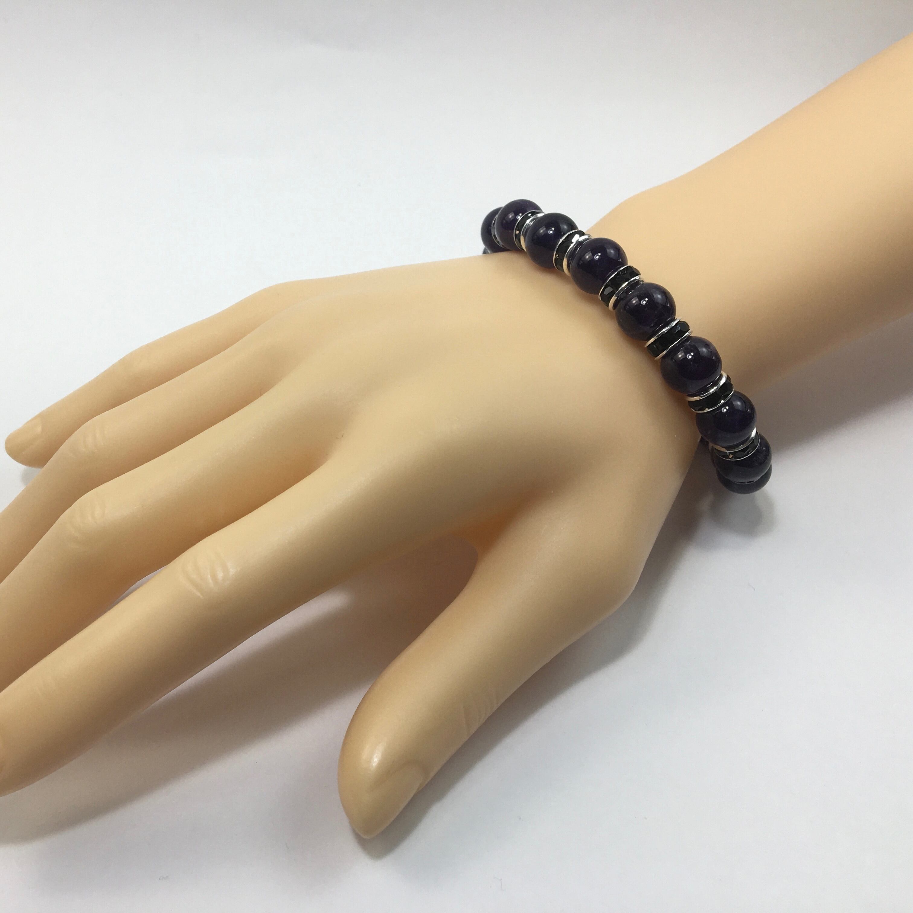 アメジスト パワーストーン ブレスレット 天然石 10mm (ブラック)メンズ・レディース 男性・女性 数珠ブレス 開運 ☆