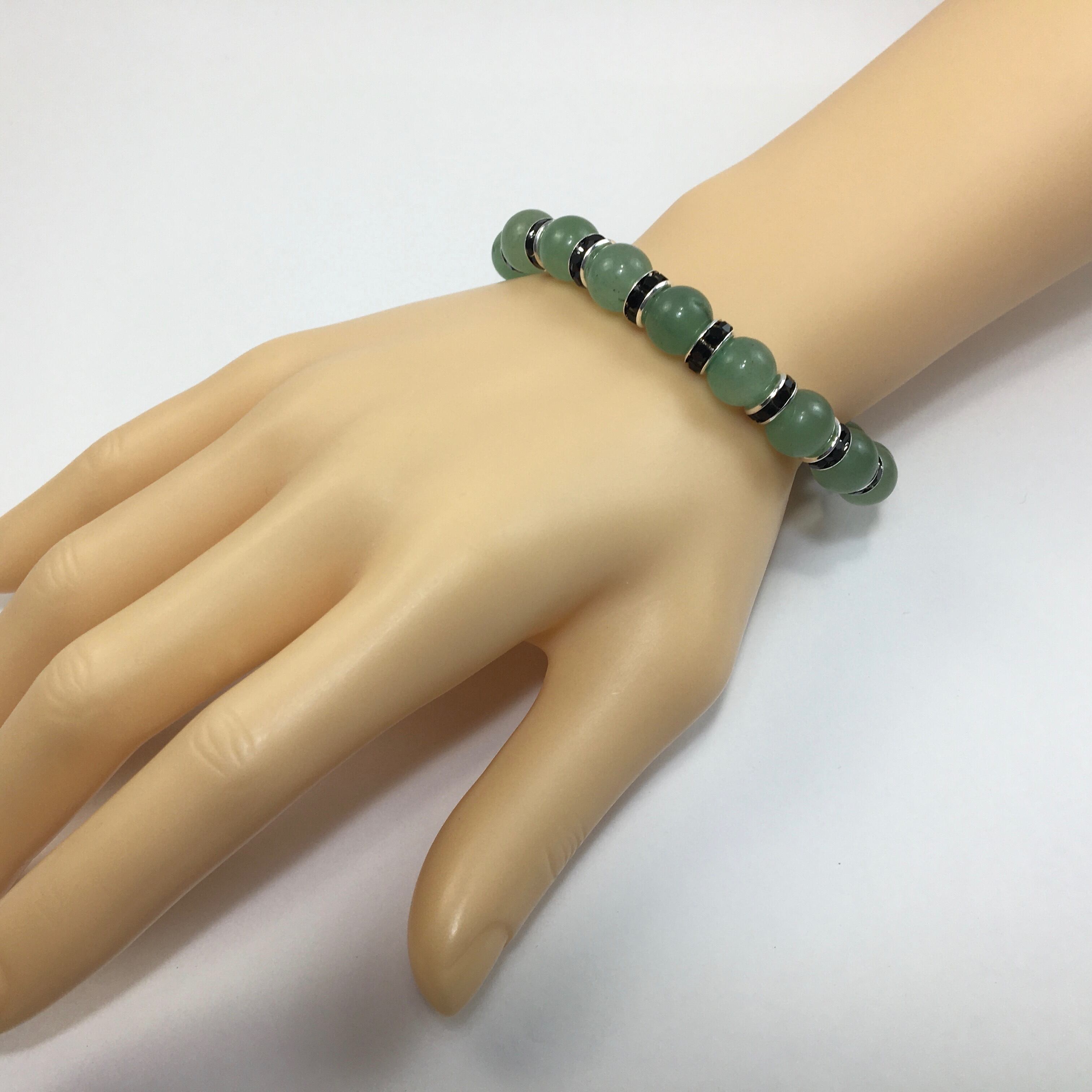 こちらは、アベンチュリンの10mm玉を使用したパワーストーンブレスレットです。石との間にはロンデルを挟み高級感を演出しております。シンプルなデザインは、シーン問わずどんなコーディネートとも合わせ易いブレスレットです。サイズは種類を選択からお選びください。(内周約14cm?内周約22cmでお選び頂けます)当社の中でも一番人気の実績があるデザインとなっております。気になる方はお早めにどうぞ。