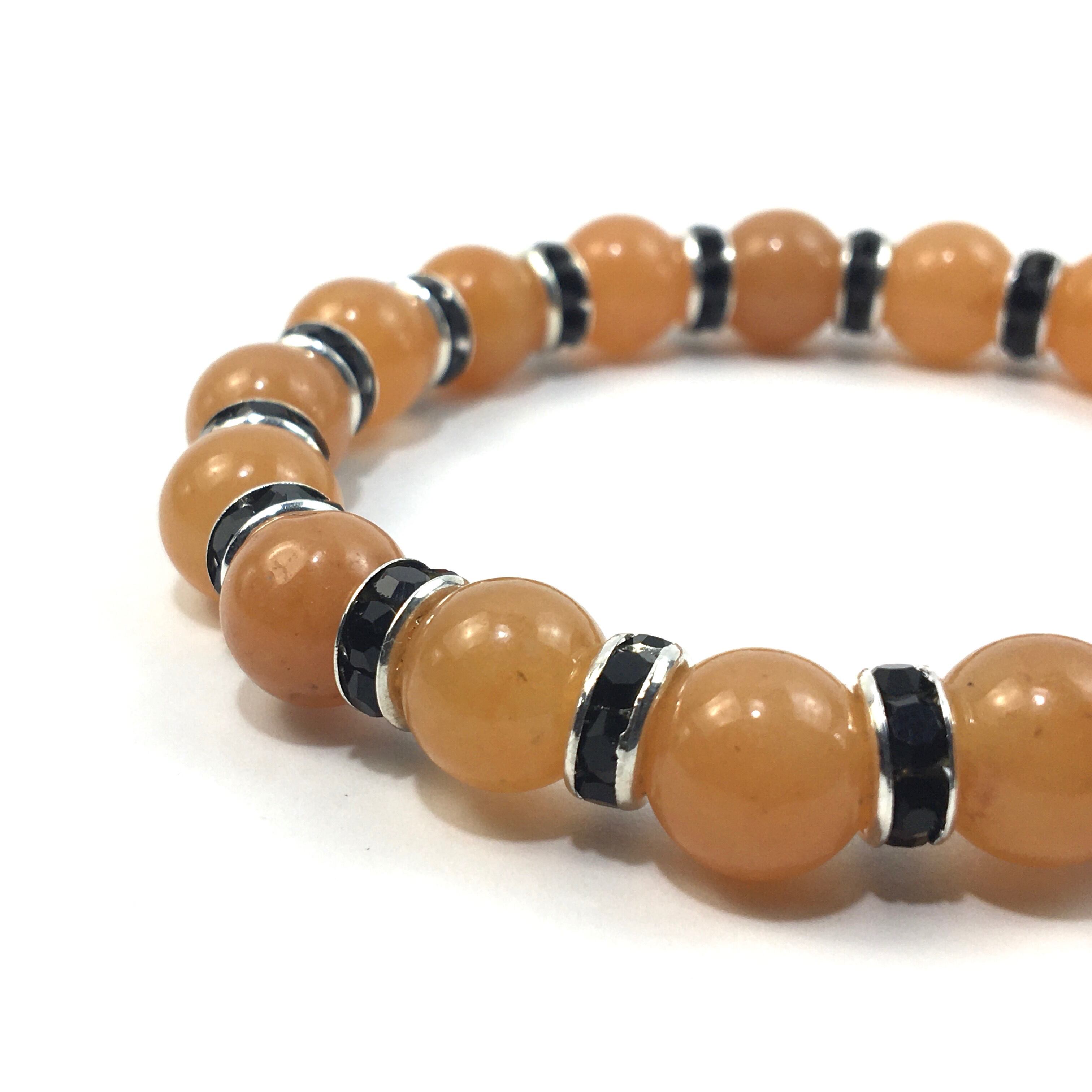 アベンチュリンと同様に癒しのパワーを持った石です。持ち主のエネルギーを穏やかなパワーで補い、潜在意識の中にあるネガティブな意識を取りのぞいてくれると言われています。また、付ける人に運を呼びチャンスをもたらし、逆境を乗り越えるパワーを与えてくれるとも言われ、行動力と情熱をおこさせてくれます。 明るい色合いから「恋」を実らせる効果もあるといわれています。