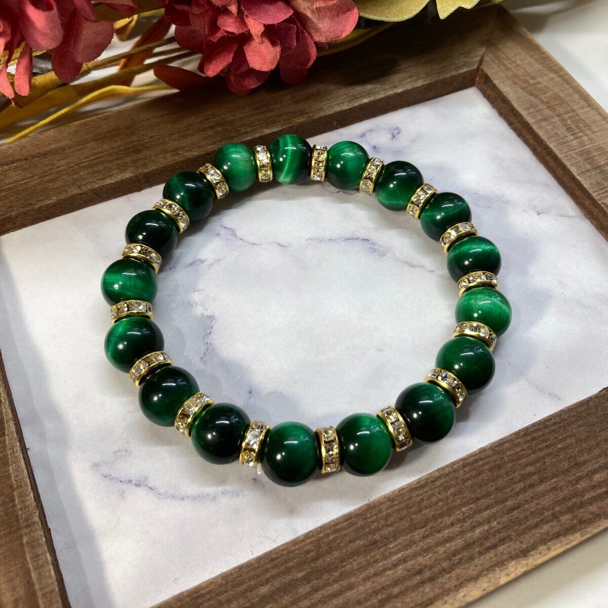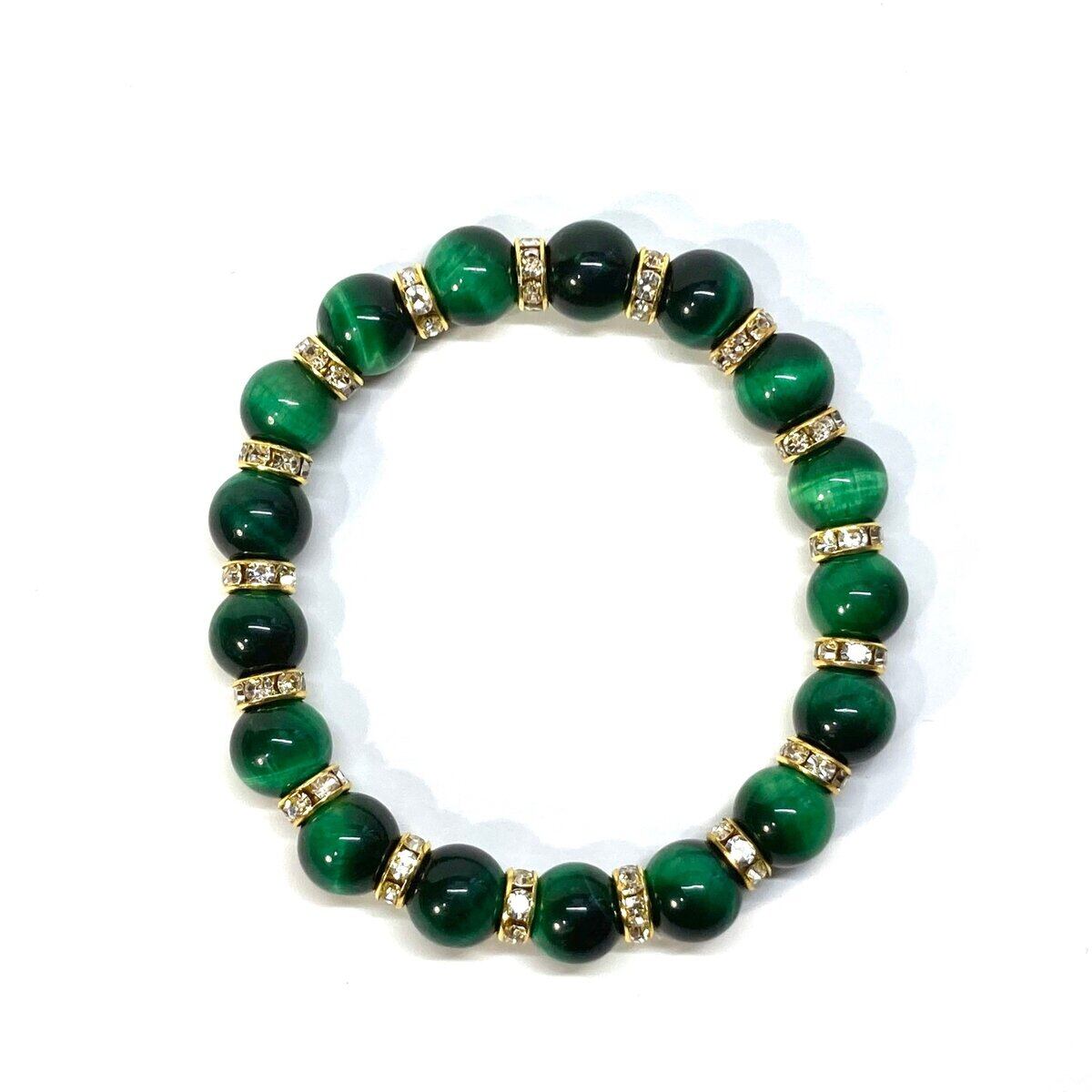グリーンタイガーアイ パワーストーン ブレスレット 10mm (ゴールド)メンズ・レディース 男性・女性 数珠ブレス 開運 ☆