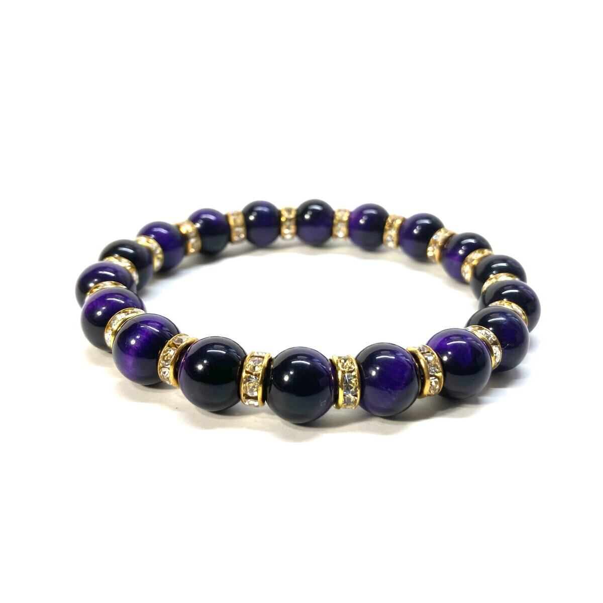 パープルタイガーアイ パワーストーン ブレスレット 10mm (ゴールド)メンズ・レディース 男性・女性 数珠ブレス 開運 ☆