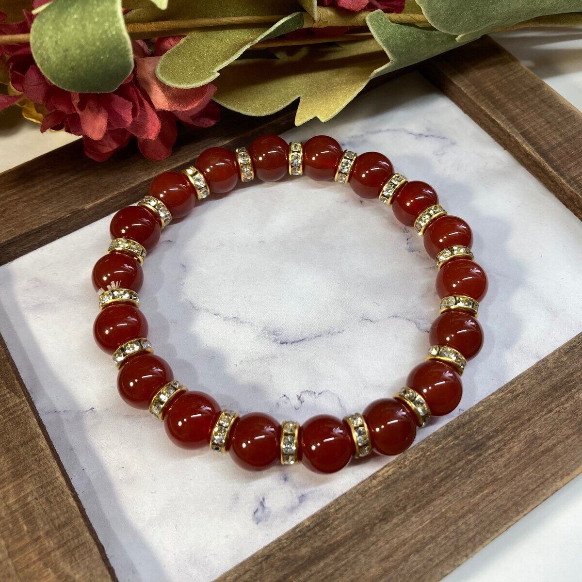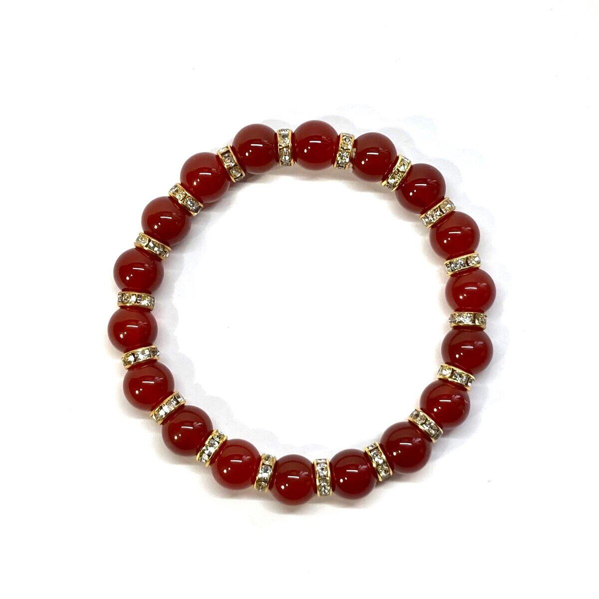 赤瑪瑙は、マイナスエネルギーと、邪気・悪意・災い・不運といった悪いものから持つ者を守ってくれると効果があると言われている石です。また、生命力を高め、血液にパワーを与えるといった効果を持つことから、安産と子宝のお守りとしても人気のある石です。大切な人との絆も深めてくれると言われていますので、親子間・夫婦間・兄弟間・姉妹間・恋人間・友情間など、大切に思う相手との絆をより深めたいと思っている人には、特にオススメしたい石です。
