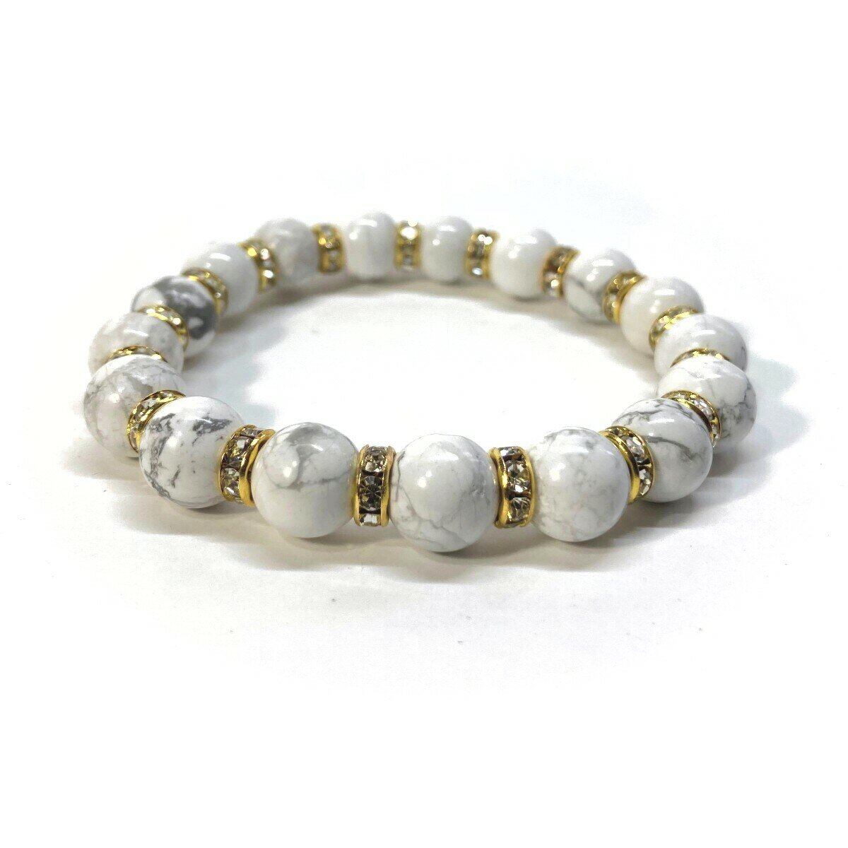 ハウライト パワーストーン ブレスレット 天然石 10mm (ゴールド)メンズ・レディース 男性・女性 数珠ブレス 開運 ☆