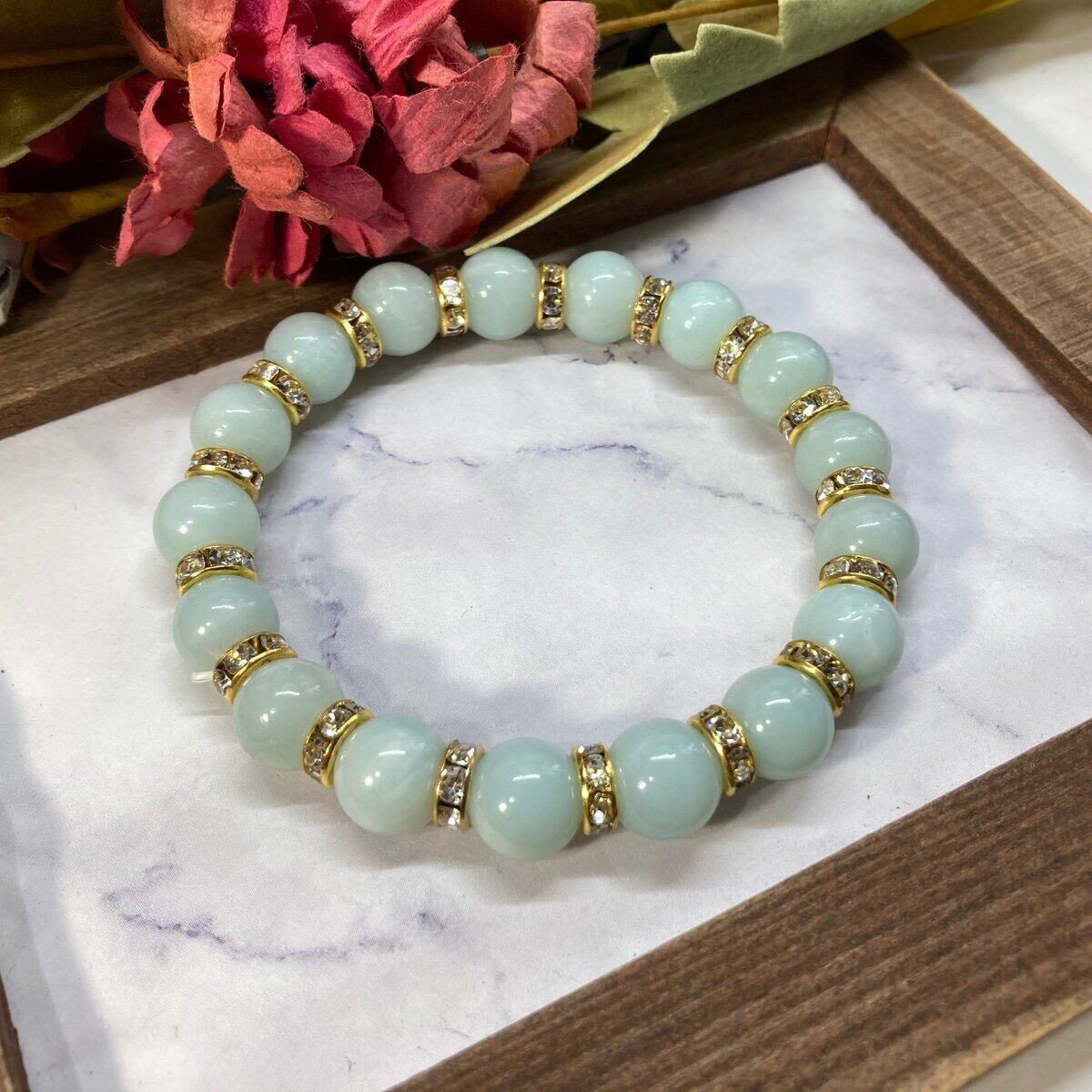 アマゾナイト パワーストーン ブレスレット 10mm (ゴールド)メンズ・レディース 男性・女性 数珠ブレス 開運 ☆
