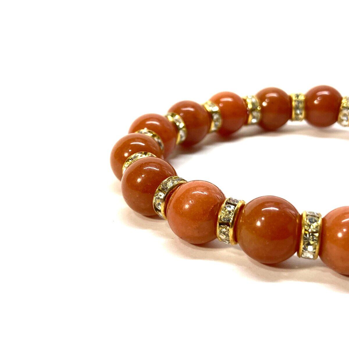 レッドアベンチュリン パワーストーン ブレスレット 10mm (ゴールド)メンズ・レディース 男性・女性 数珠ブレス 開運 ☆