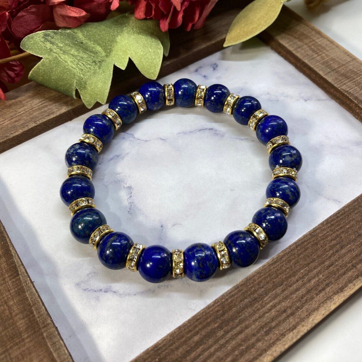 ラピスラズリ パワーストーン ブレスレット 天然石 10mm (ゴールド)メンズ・レディース 男性・女性 数珠ブレス 開運 ☆