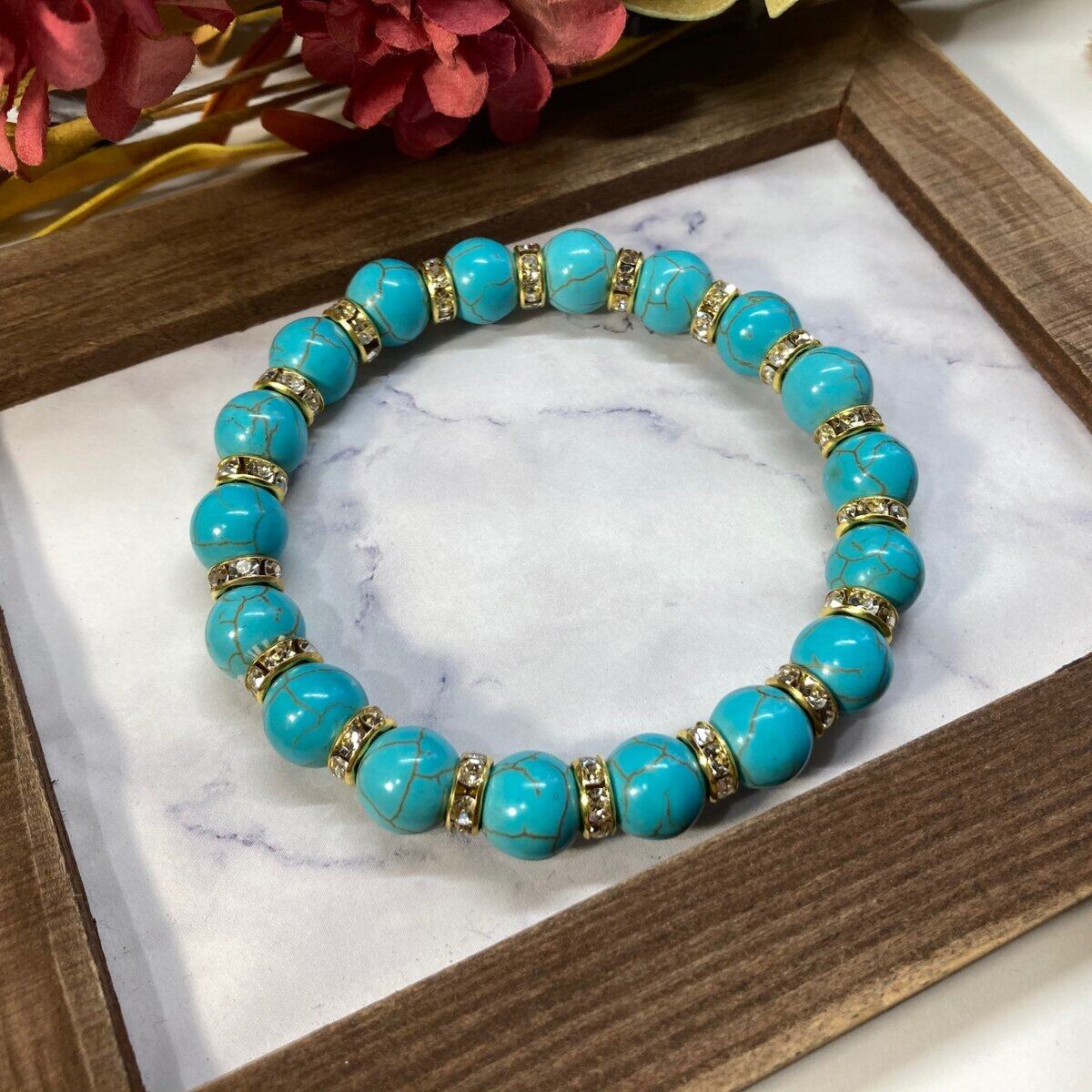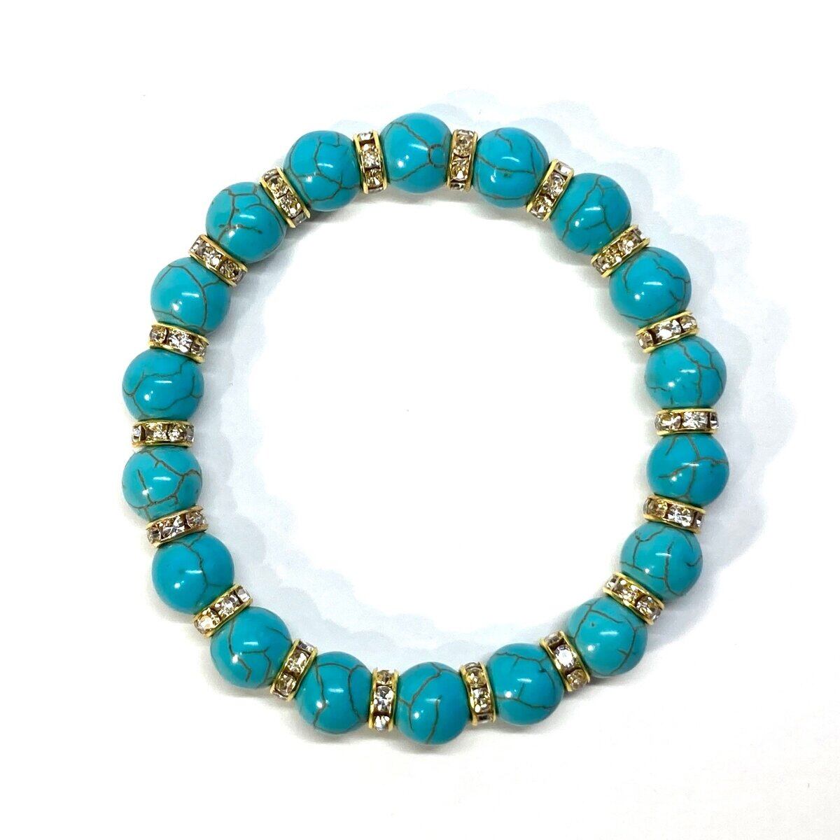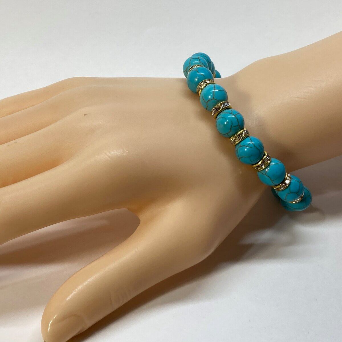 ターコイズ パワーストーン ブレスレット 10mm #2 (ゴールド)メンズ・レディース 男性・女性 数珠ブレス 開運 ☆