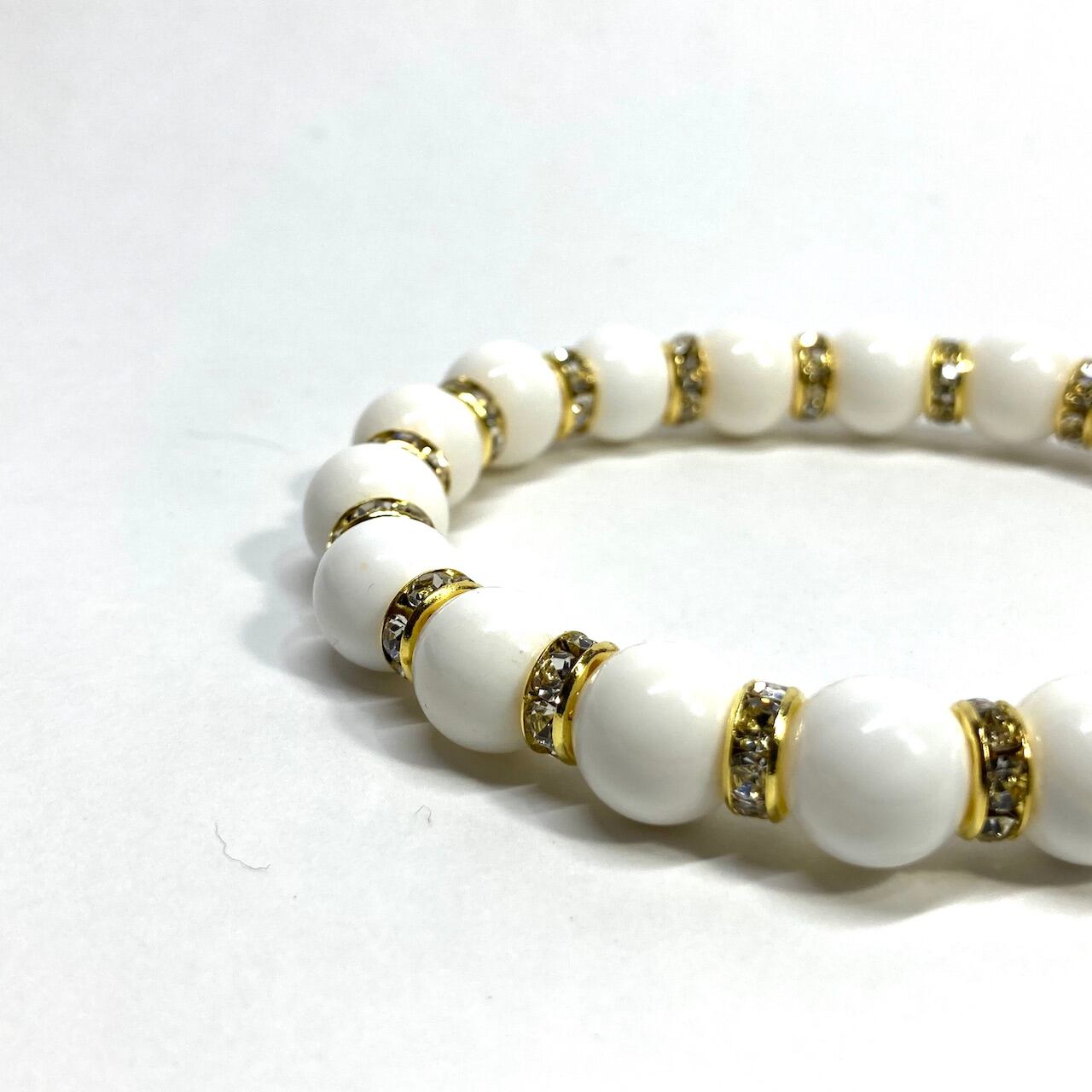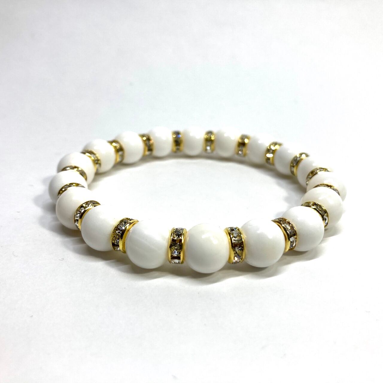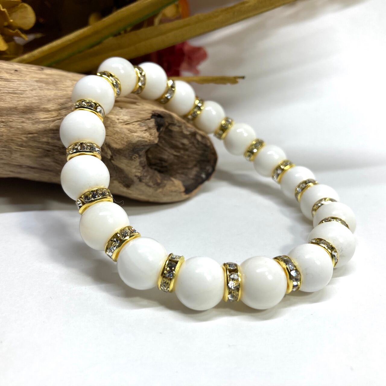 ホワイトオニキス パワーストーン ブレスレット 10mm (ゴールド)メンズ・レディース 男性・女性 数珠ブレス 開運 ☆