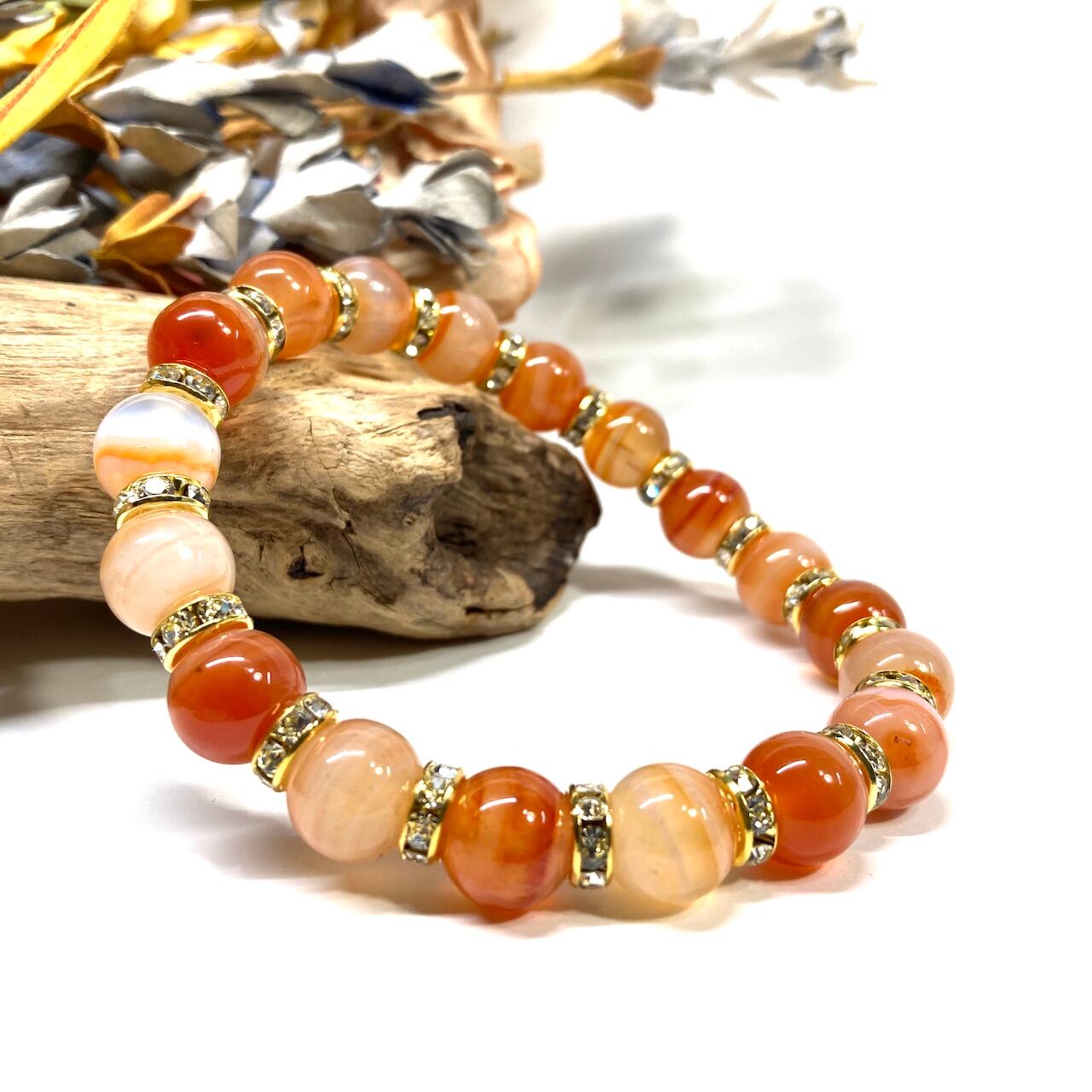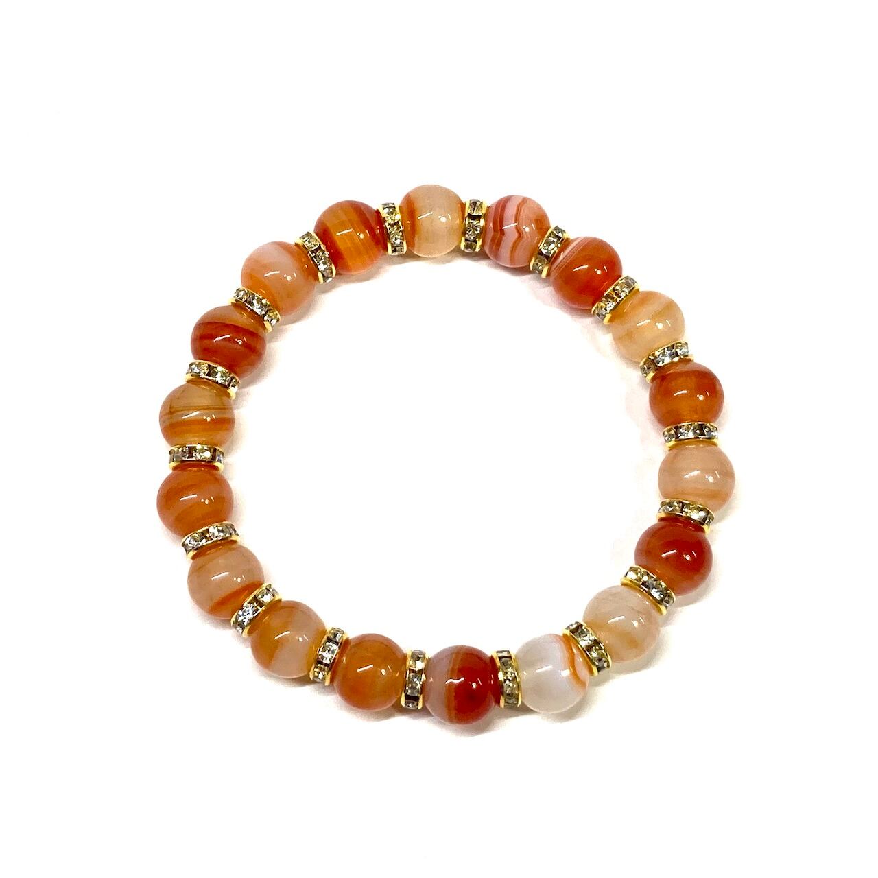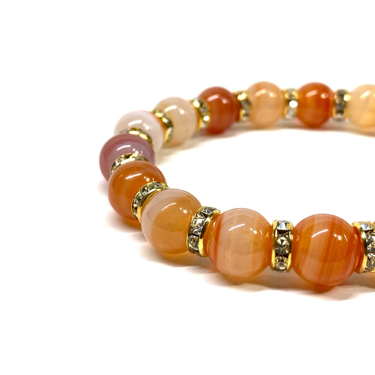 カーネリアン・サードニクス パワーストーン ブレスレット 10mm (ゴールド)メンズ・レディース 男性・女性 数珠ブレス 開運 ☆