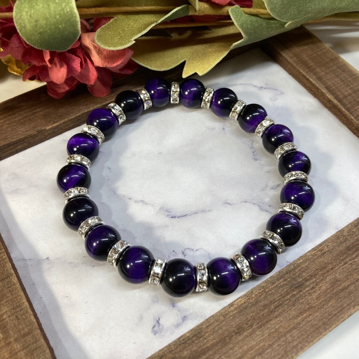 パープルタイガーアイ パワーストーン ブレスレット 10mm (シルバー)メンズ・レディース 男性・女性 数珠ブレス 開運 ☆
