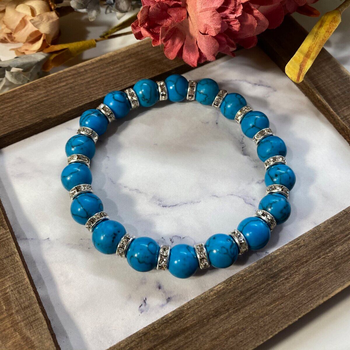 ターコイズ パワーストーン ブレスレット 10mm (シルバー)メンズ・レディース 男性・女性 数珠ブレス 開運 ☆