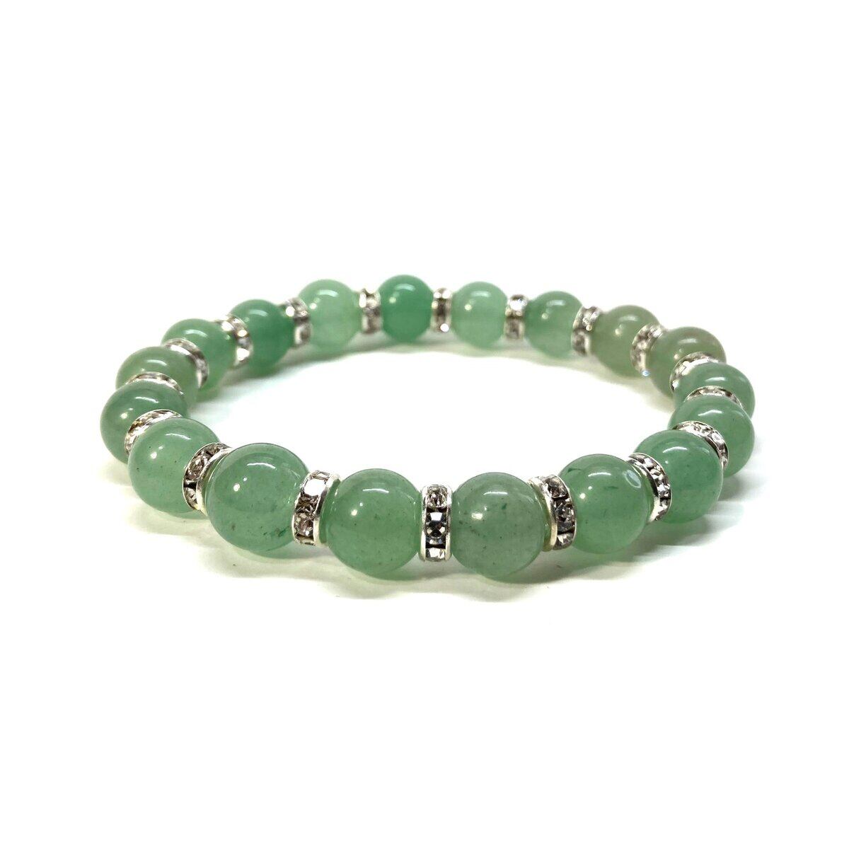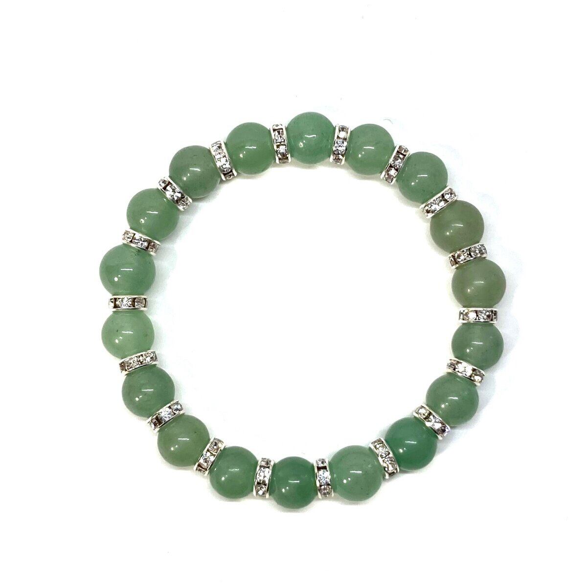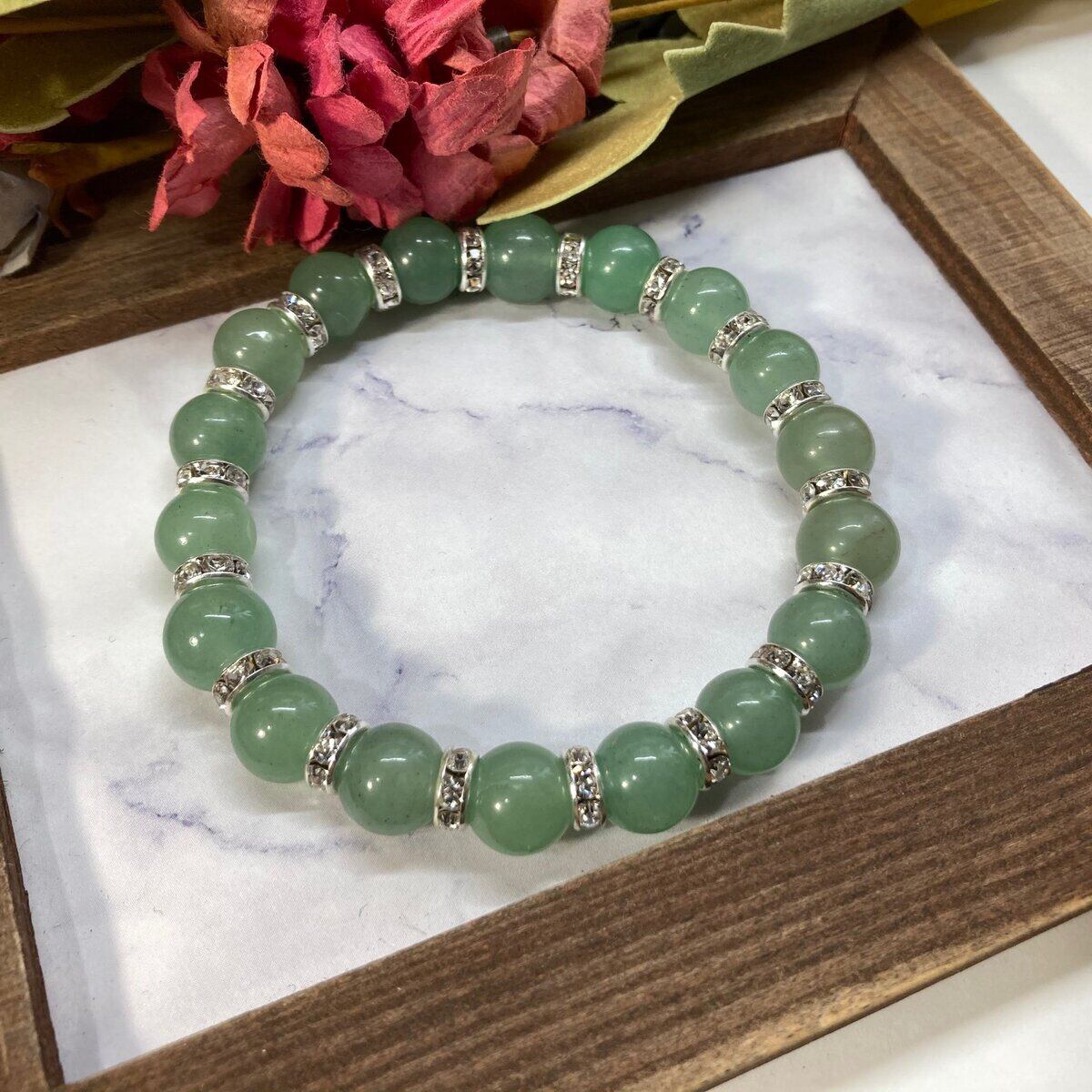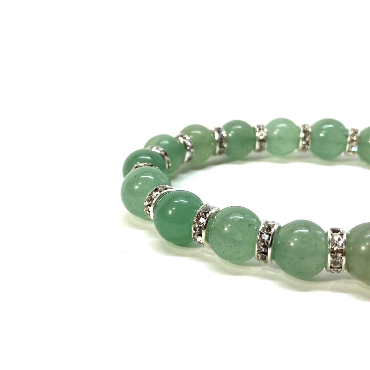 こちらは、アベンチュリンの10mm玉を使用したパワーストーンブレスレットです。石との間にはロンデルを挟み高級感を演出しております。シンプルなデザインは、シーン問わずどんなコーディネートとも合わせ易いブレスレットです。サイズは種類を選択からお選びください。(内周約14cm?内周約22cmでお選び頂けます)当社の中でも一番人気の実績があるデザインとなっております。気になる方はお早めにどうぞ。
