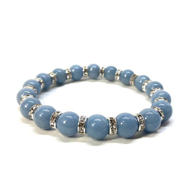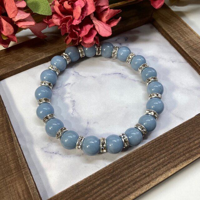 こちらは、エンジェライトの10mm玉を使用したパワーストーンブレスレットです。石との間にはロンデルを挟み高級感を演出しております。シンプルなデザインは、シーン問わずどんなコーディネートとも合わせ易いブレスレットです。サイズは種類を選択からお選びください。(内周約14cm?内周約22cmでお選び頂けます)当社の中でも一番人気の実績があるデザインとなっております。気になる方はお早めにどうぞ。