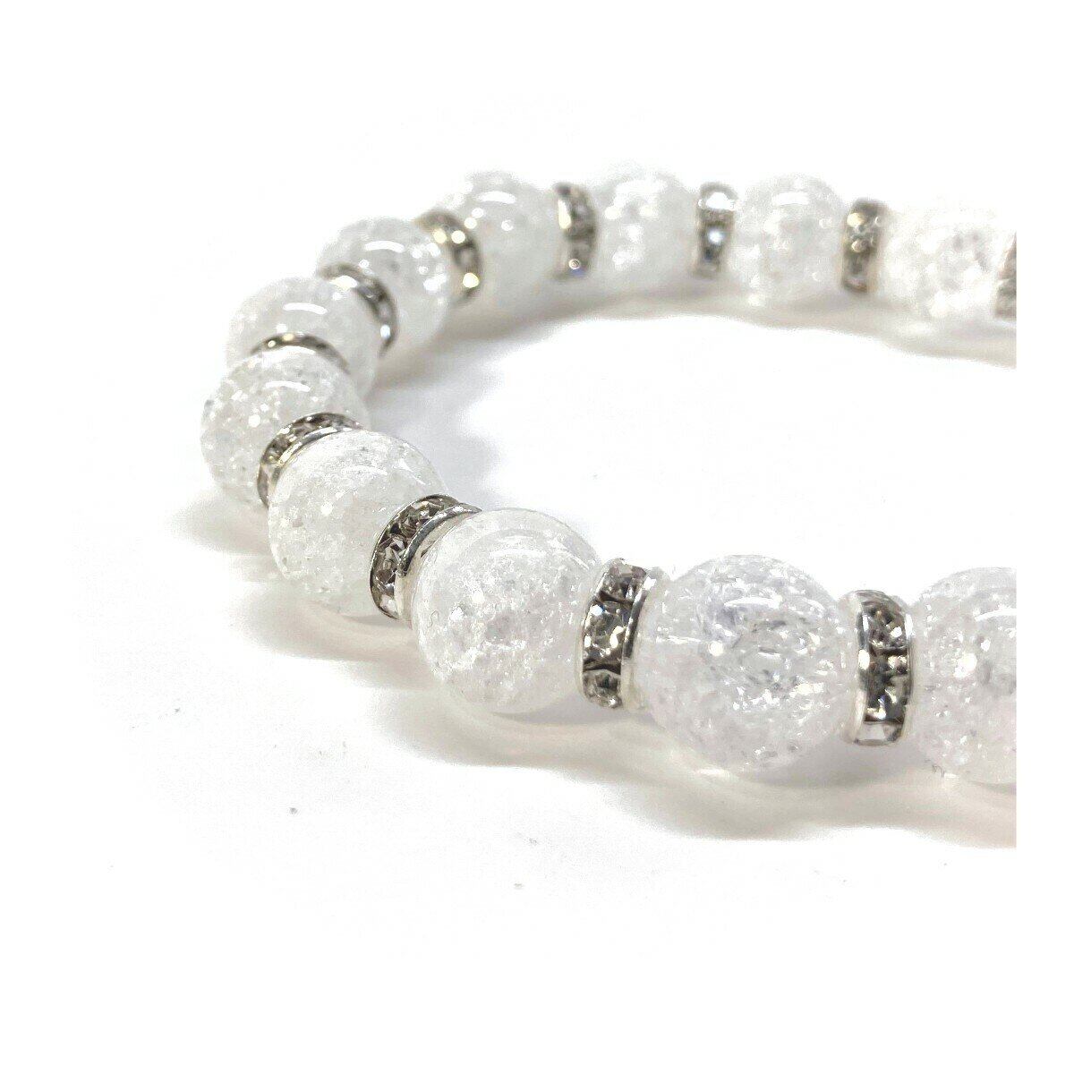 クラック水晶 パワーストーン ブレスレット 10mm (シルバー)メンズ・レディース 男性・女性 数珠ブレス 開運 ☆