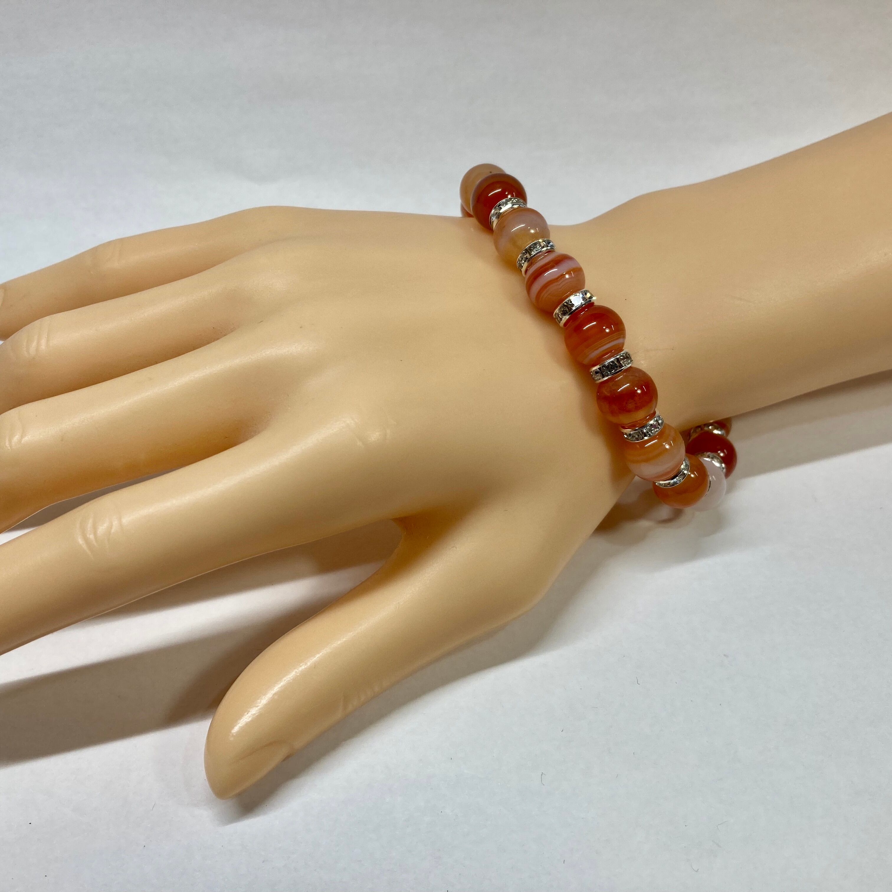 カーネリアン・サードニクス パワーストーン ブレスレット 10mm (シルバー)メンズ・レディース 男性・女性 数珠ブレス 開運 ☆