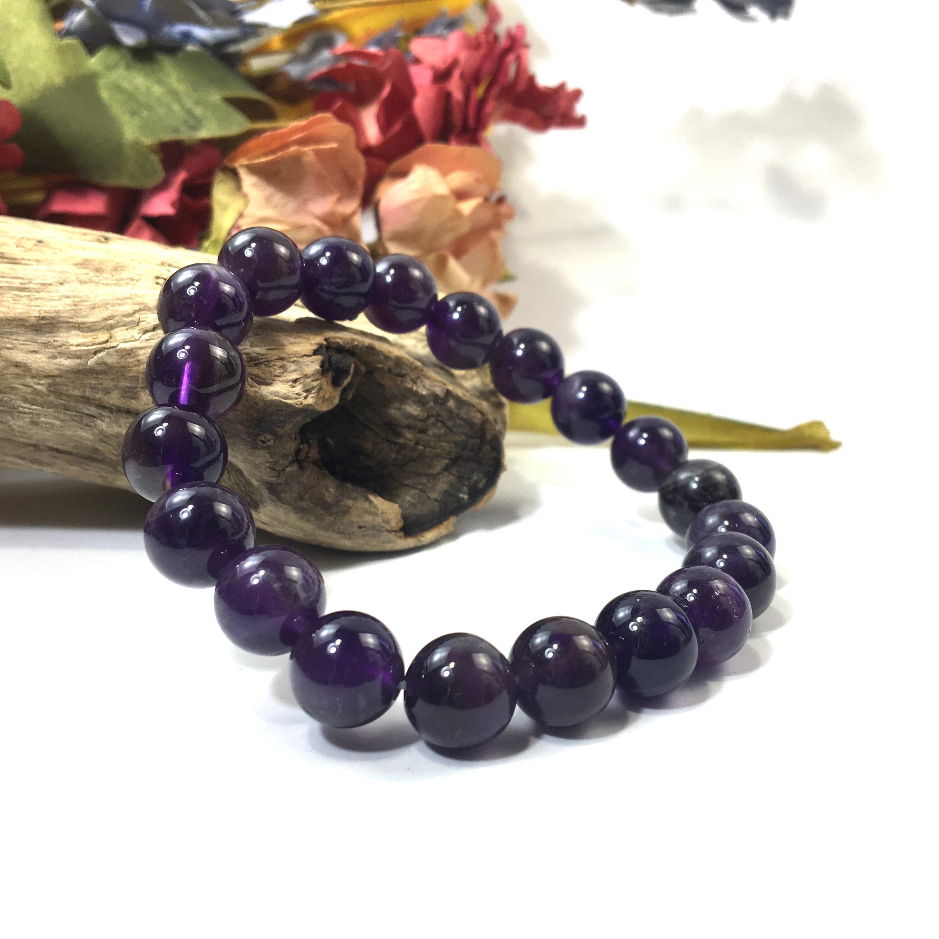 こちらは、アメジストの10mm玉を使用したパワーストーンブレスレットです。シンプルなデザインは、シーン問わずどんなコーディネートとも合わせ易いブレスレットです。サイズは種類を選択からお選びください。(内周約14cm?内周約22cmでお選び頂けます)。気になる方はお早めにどうぞ。