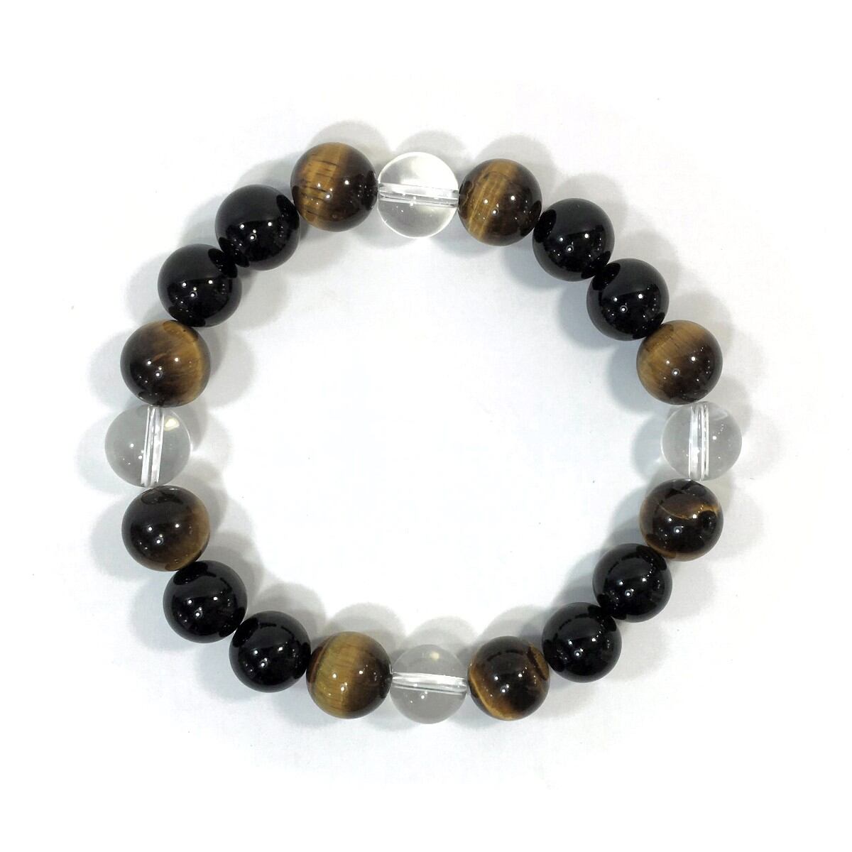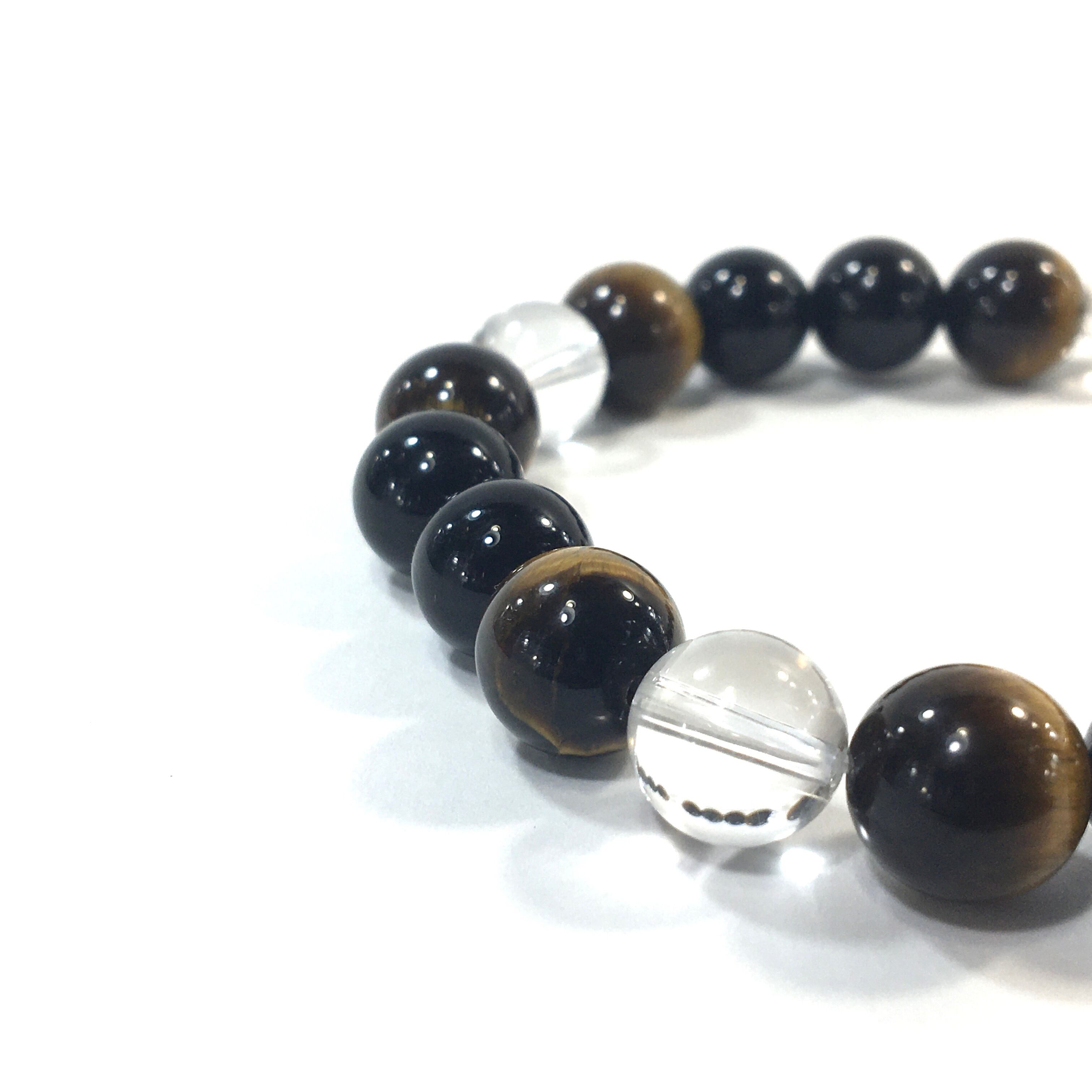 水晶×タイガーアイ×オニキス パワーストーン ブレスレット 10mm 天然石 メンズ・レディース 男性・女性 数珠ブレス 開運 ☆