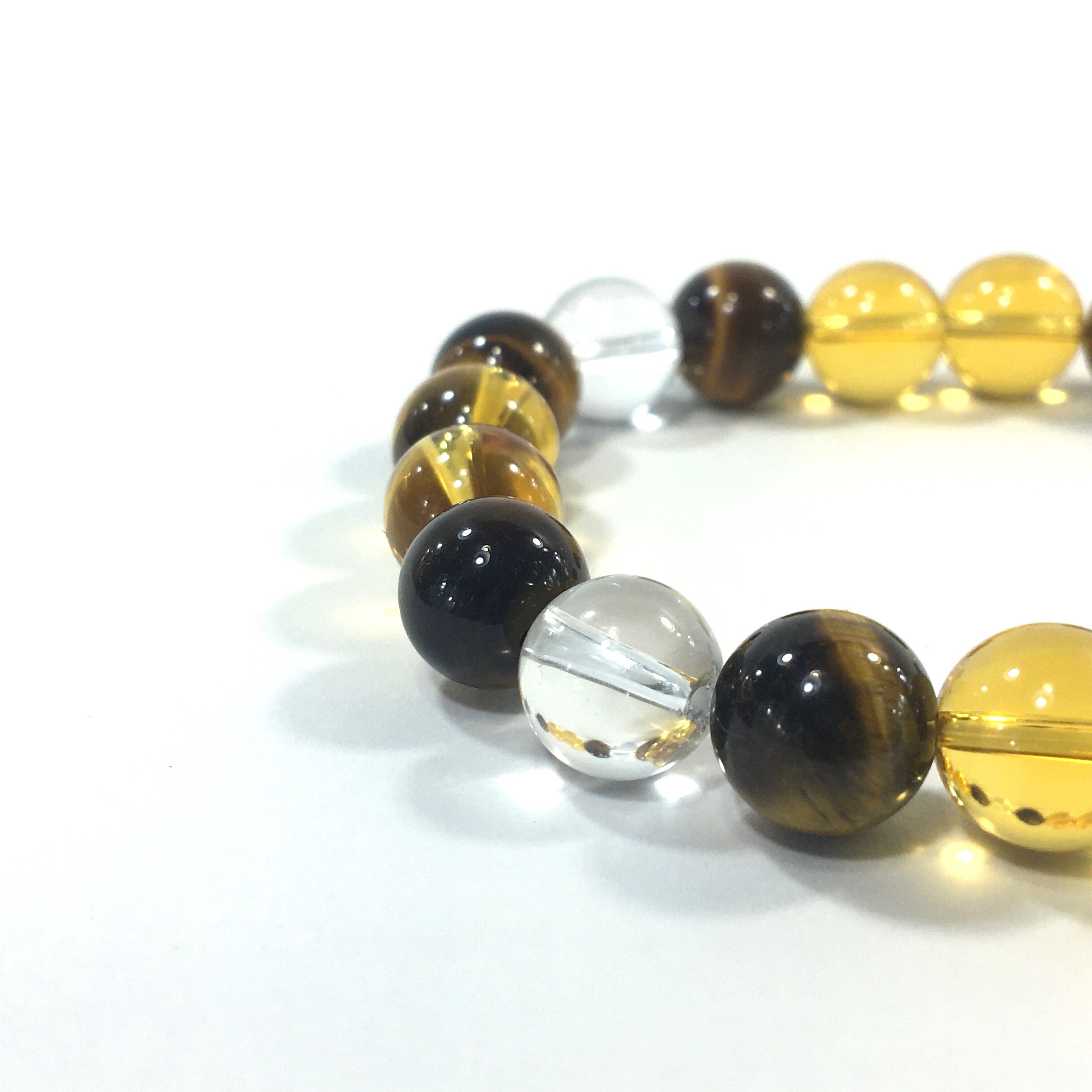 水晶×タイガーアイ×シトリン パワーストーン ブレスレット 10mm 天然石 メンズ・レディース 男性・女性 数珠ブレス 開運 ☆