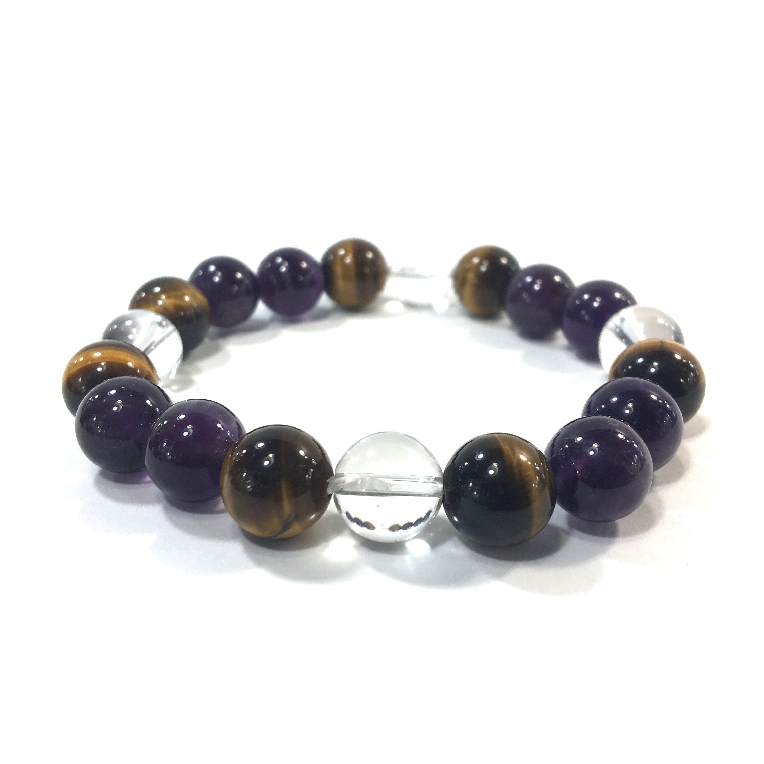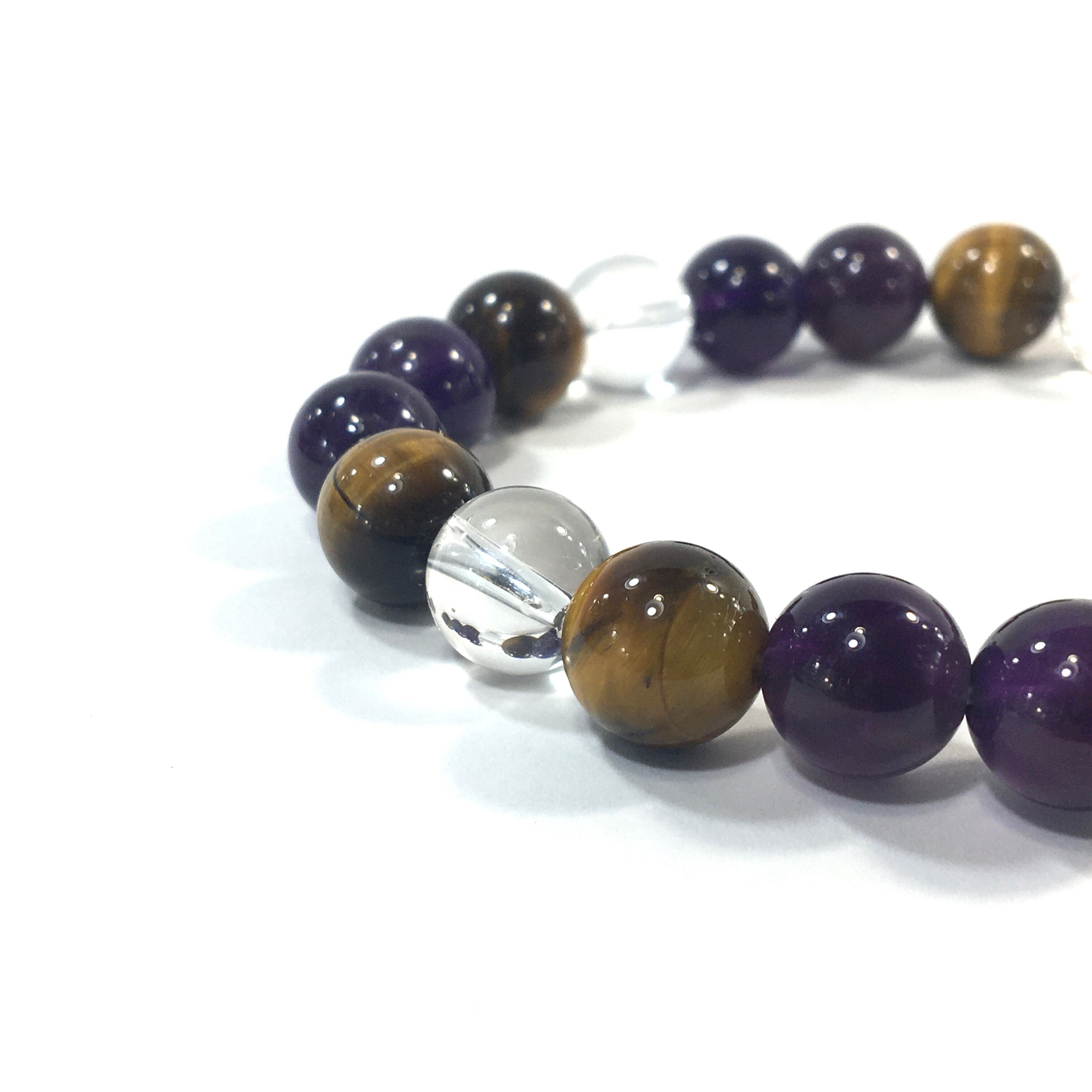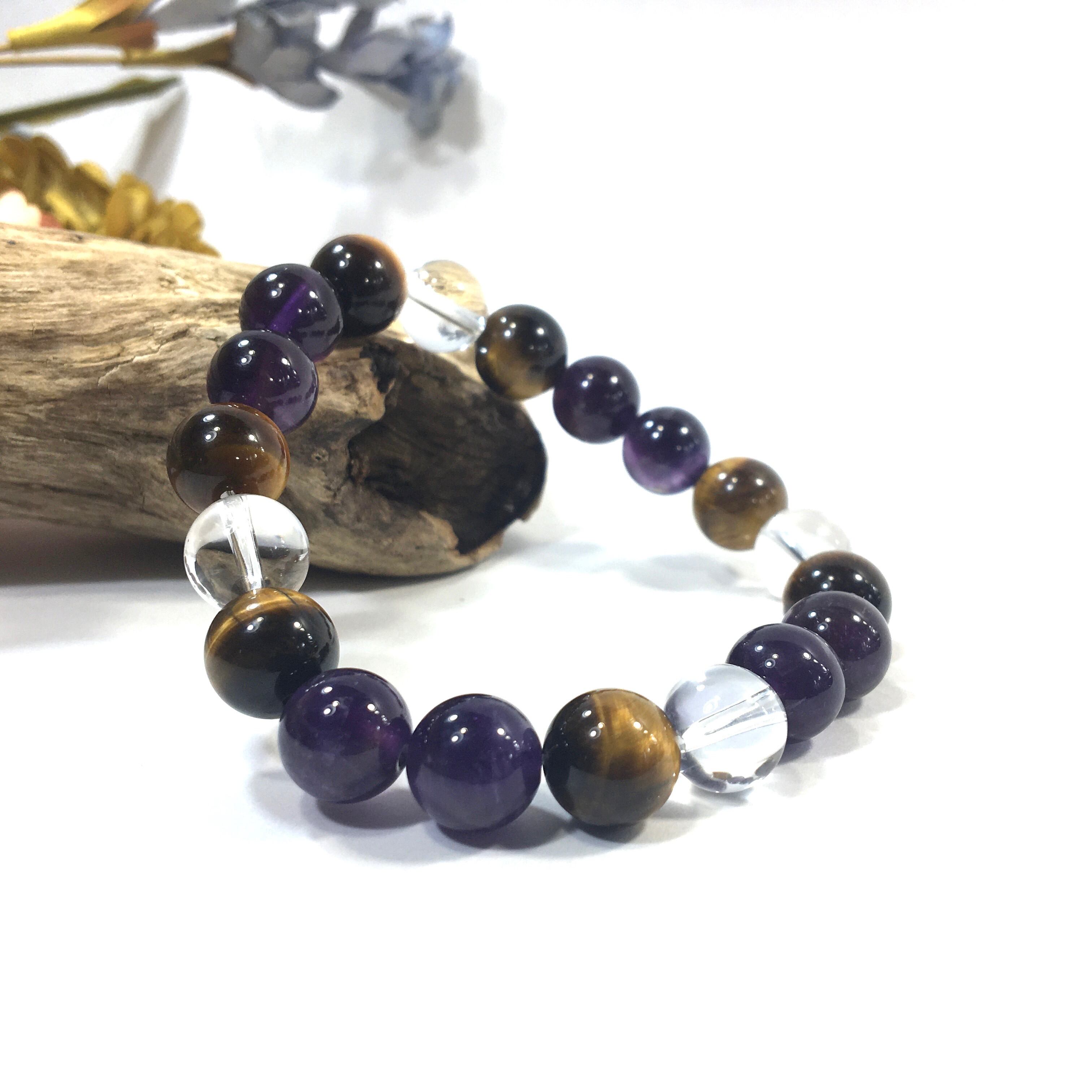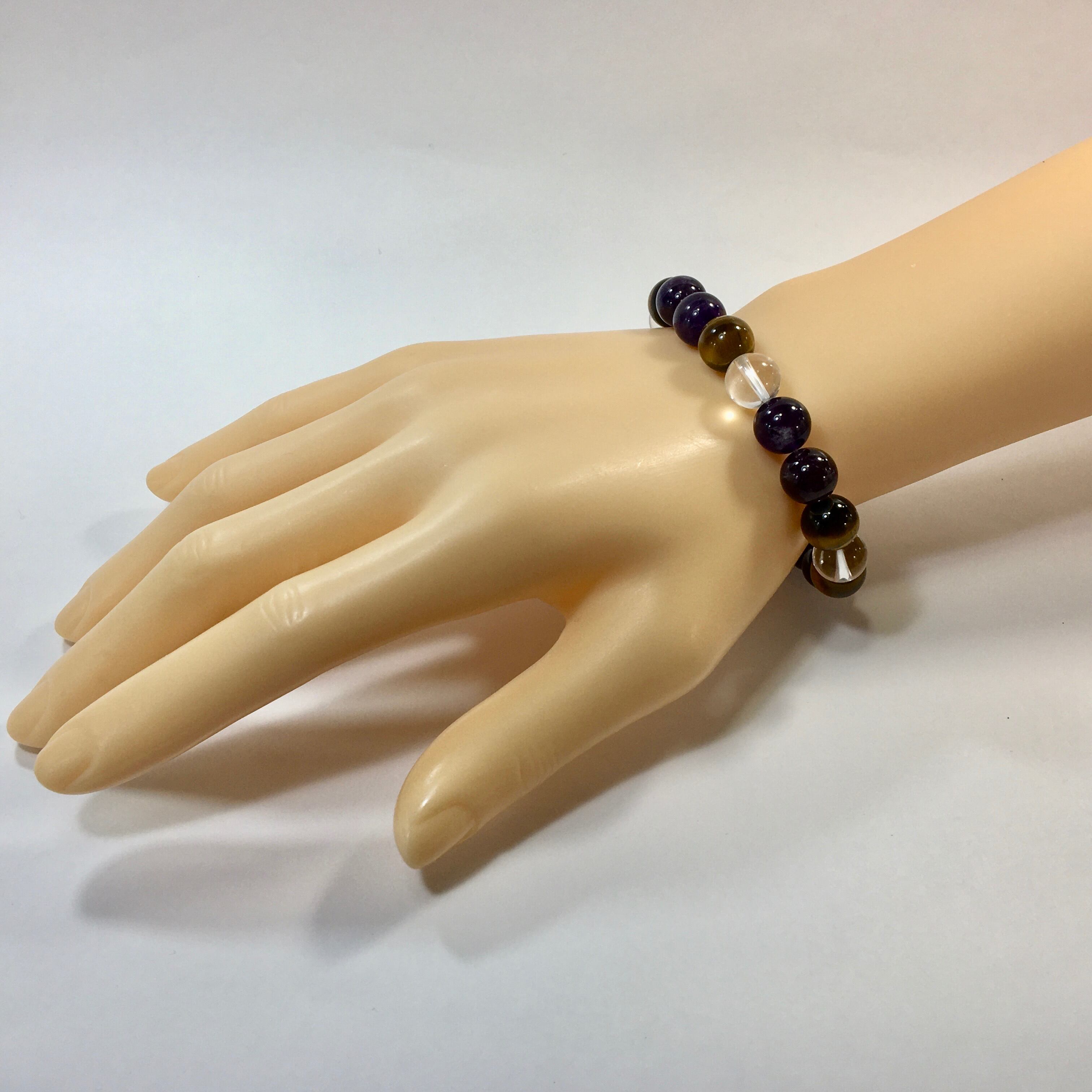 水晶×タイガーアイ×アメジスト パワーストーン ブレスレット 10mm 天然石 メンズ・レディース 男性・女性 数珠ブレス 開運 ☆