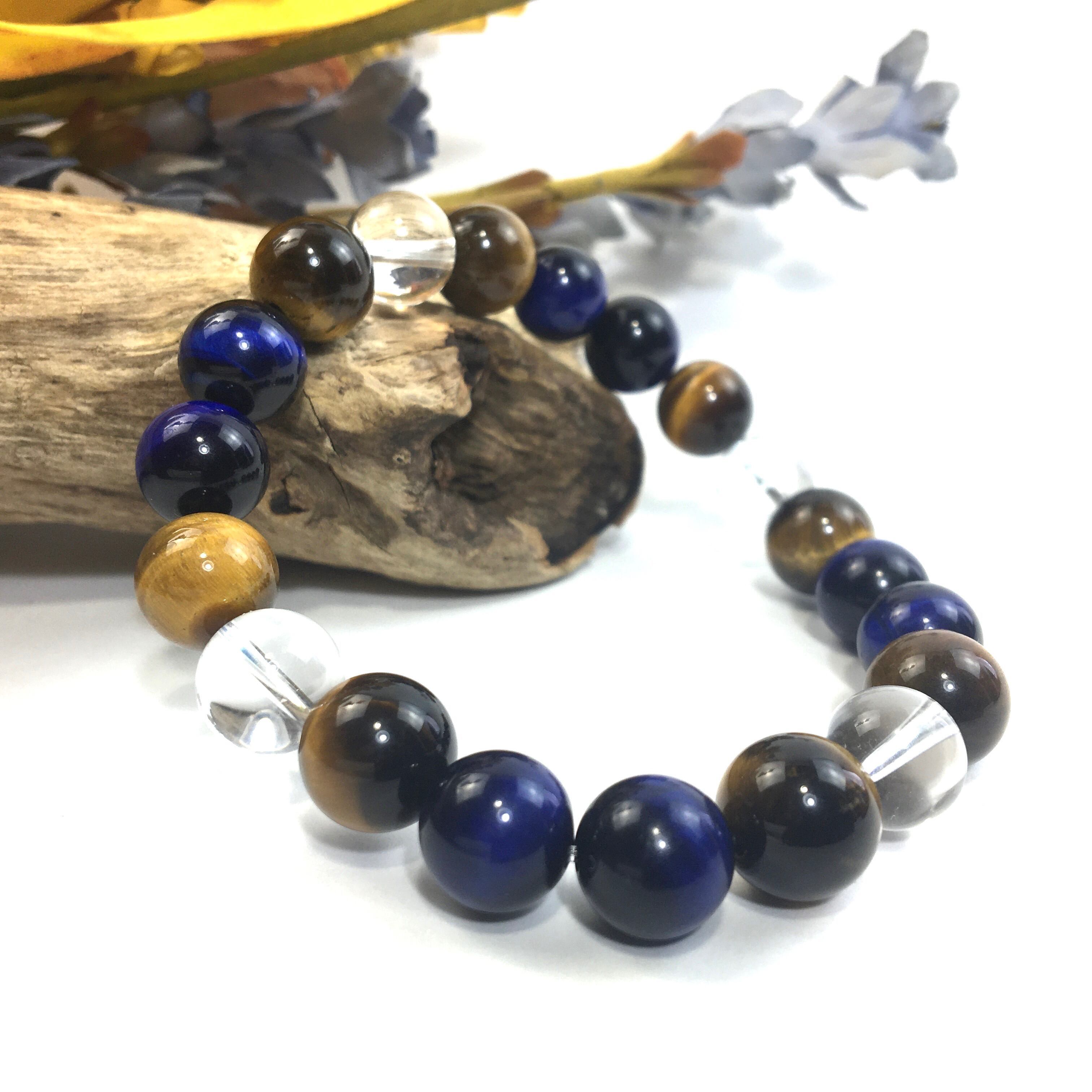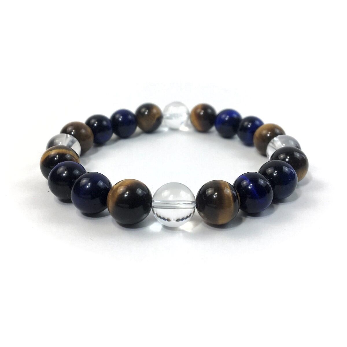 水晶×タイガーアイ×ブルータイガーアイ パワーストーン ブレスレット 10mm メンズ・レディース 男性・女性 数珠ブレス 開運 ☆
