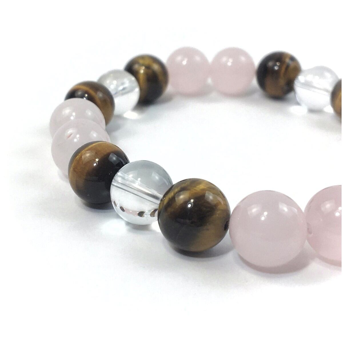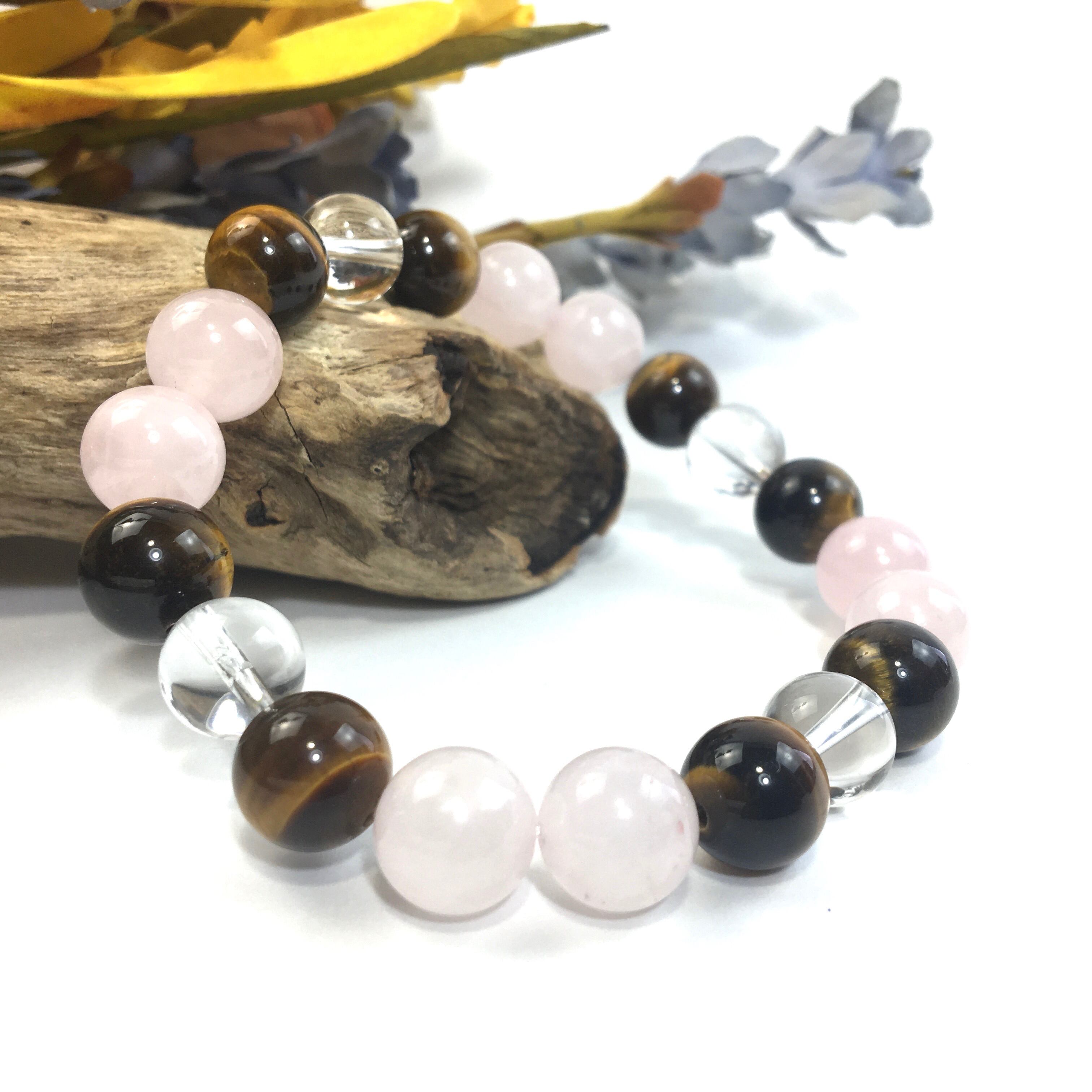 水晶×タイガーアイ×ローズクォーツ パワーストーン ブレスレット 10mm 天然石 メンズ・レディース 男性・女性 数珠ブレス 開運 ☆