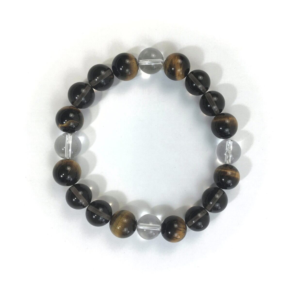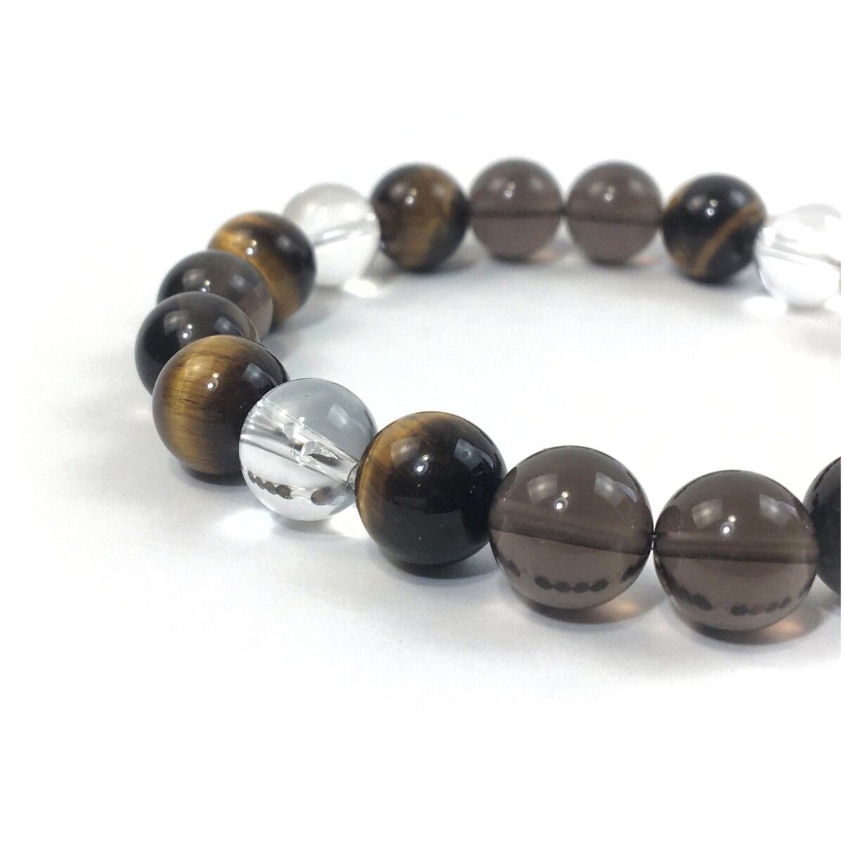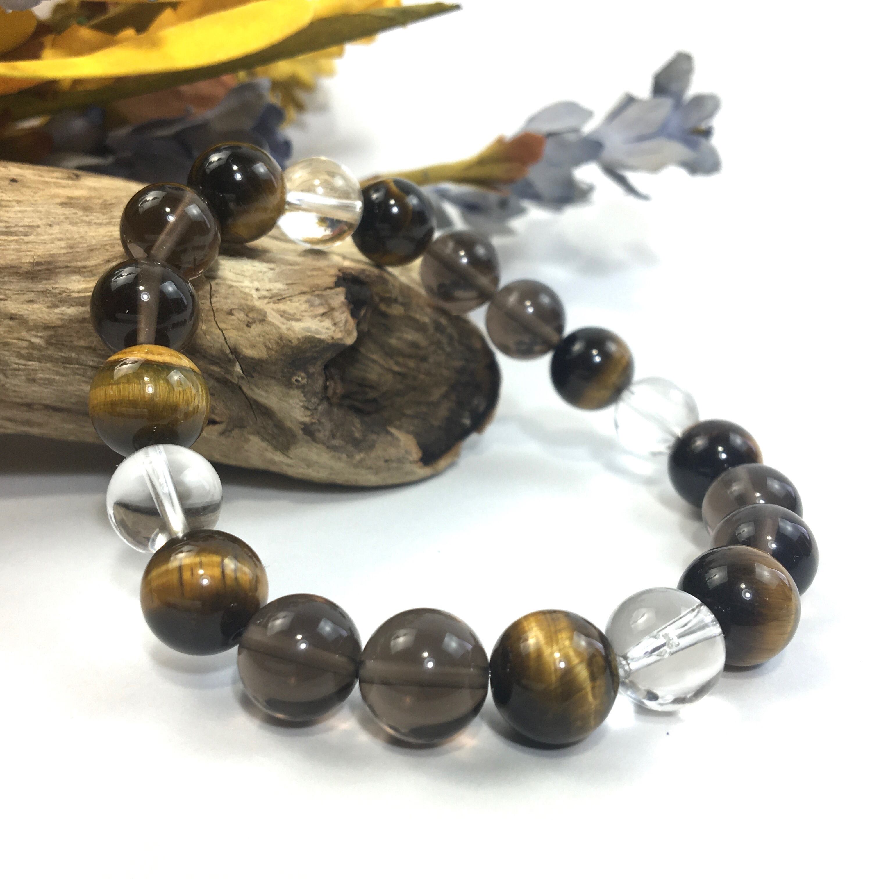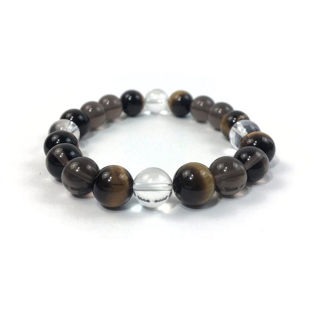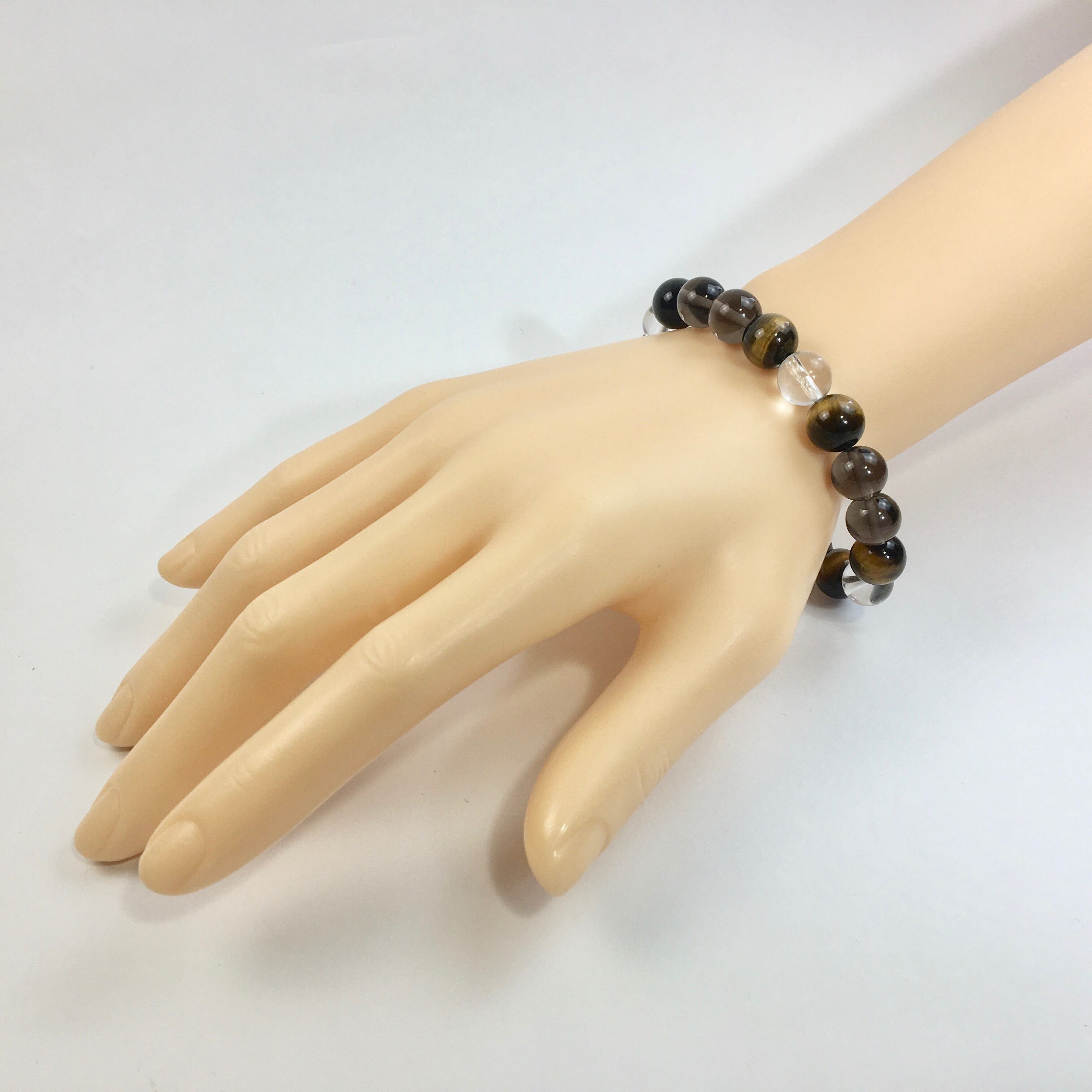 水晶×タイガーアイ×スモーキークォーツ パワーストーン ブレスレット 10mm 天然石 メンズ・レディース 男性・女性 数珠ブレス 開運 ☆