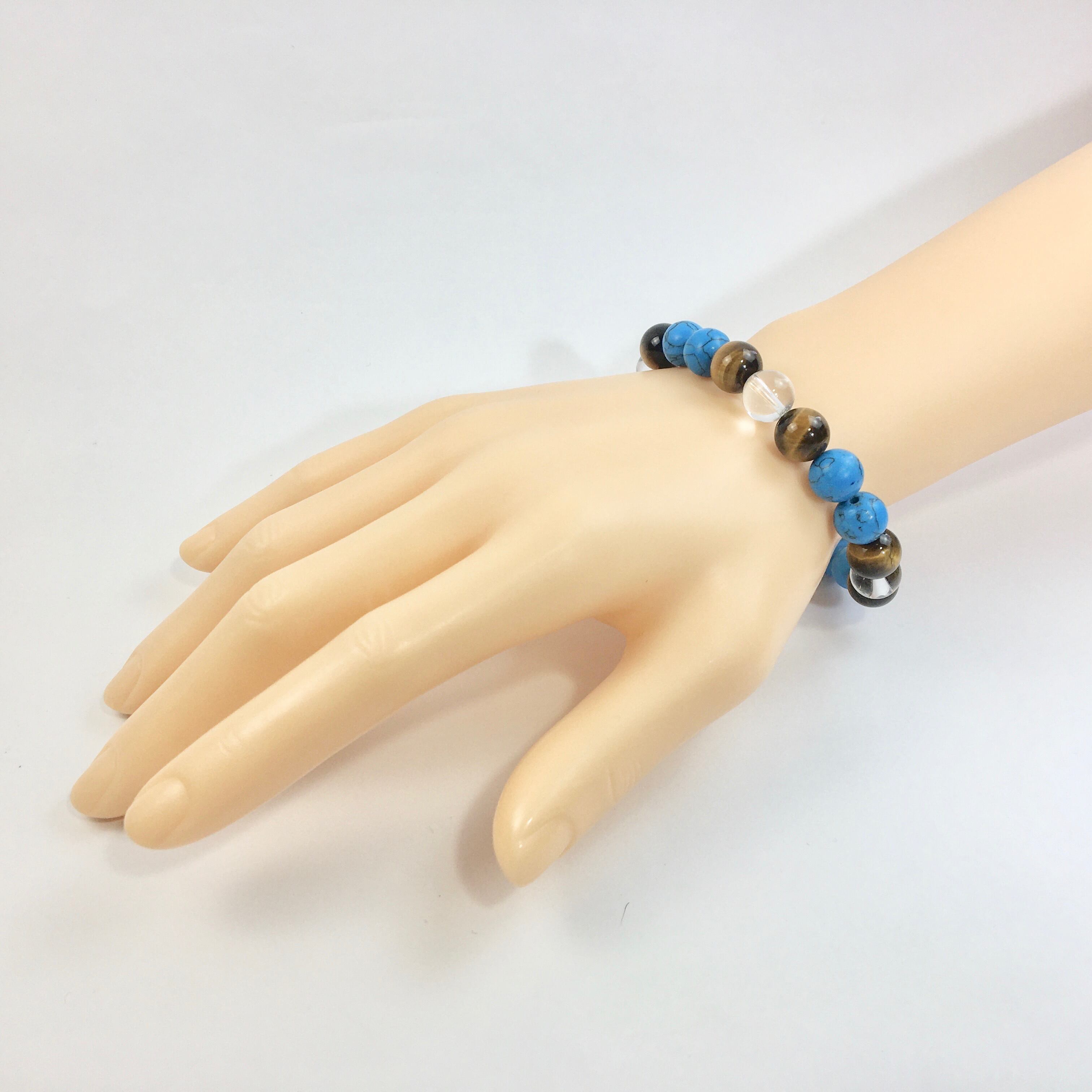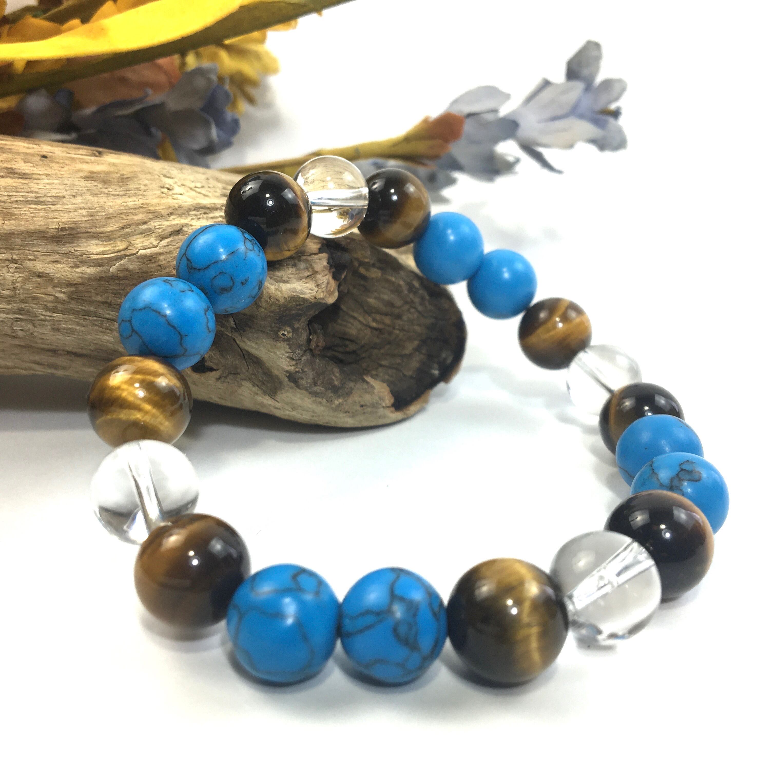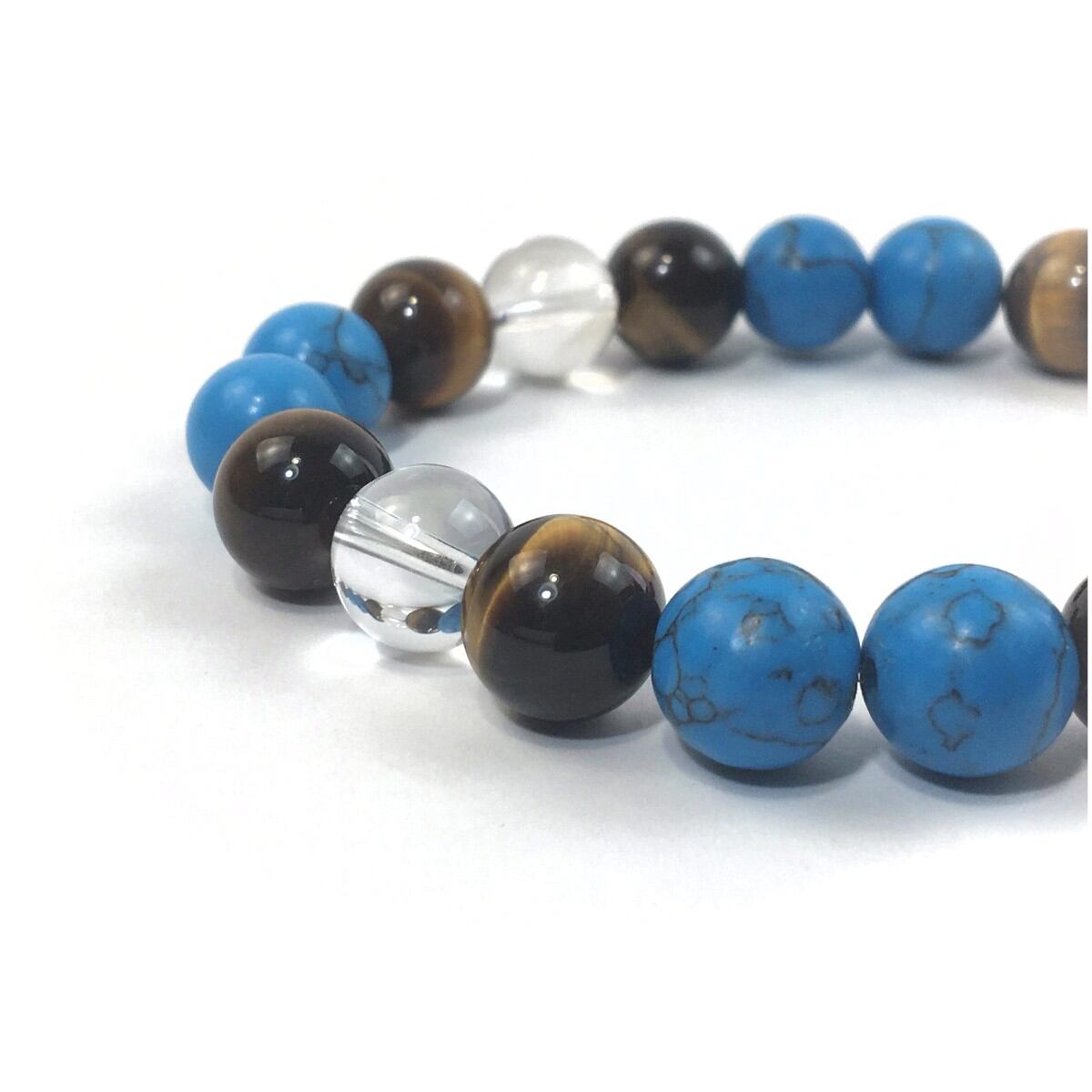 水晶×タイガーアイ×ターコイズ パワーストーン ブレスレット 10mm 天然石 メンズ・レディース 男性・女性 数珠ブレス 開運 ☆