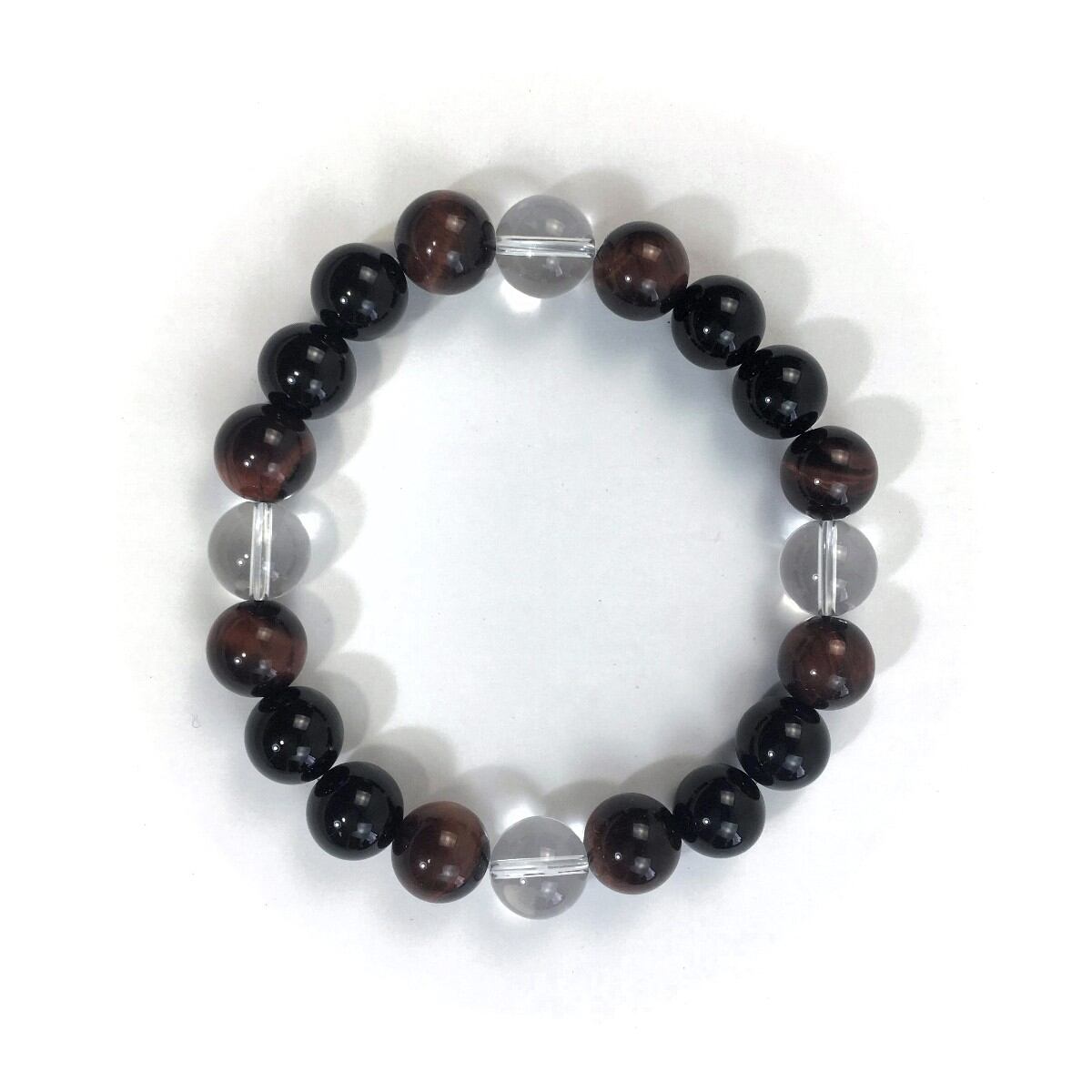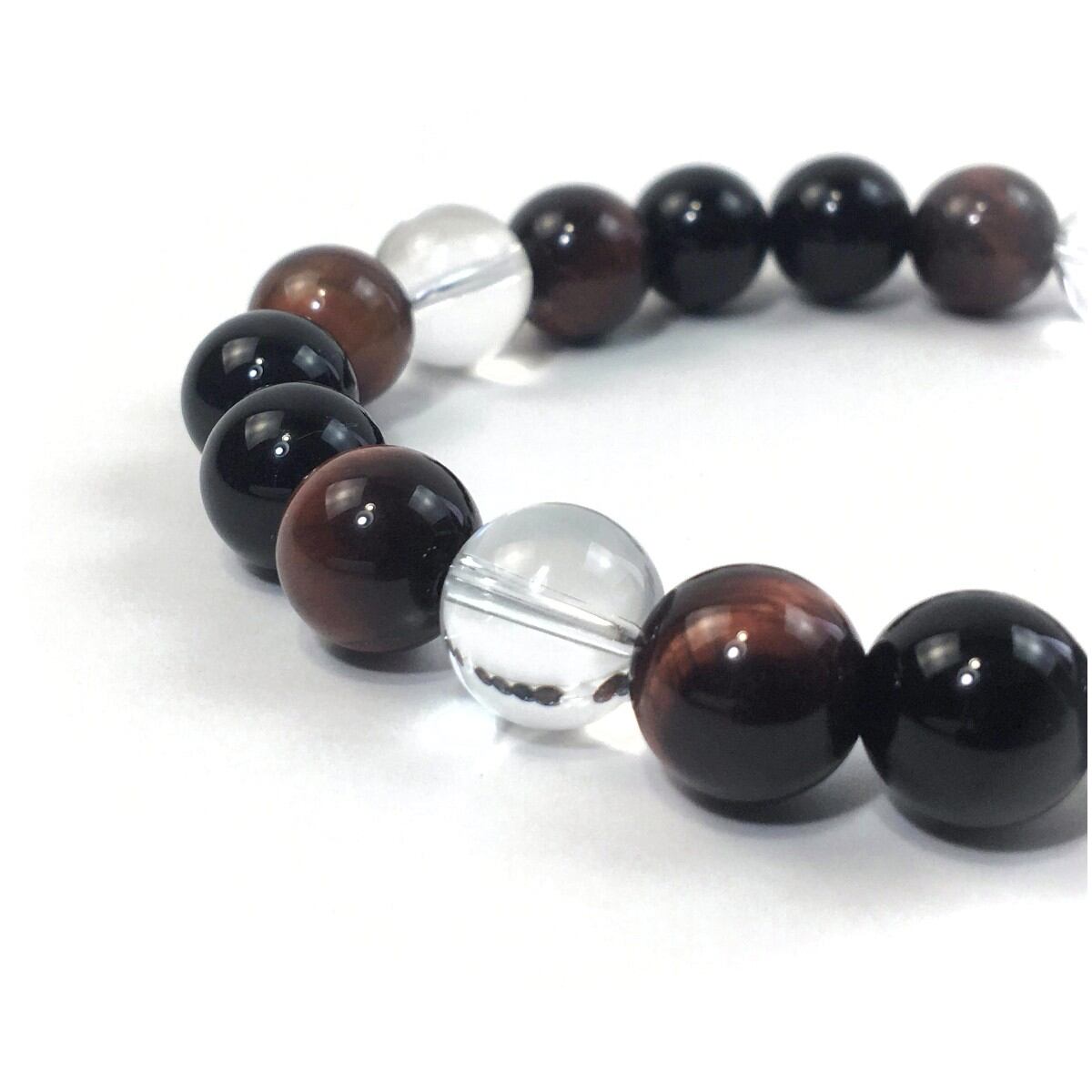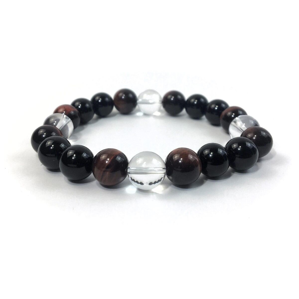 水晶×レッドタイガーアイ×オニキス パワーストーン ブレスレット 10mm 天然石 メンズ・レディース 男性・女性 数珠ブレス 開運 ☆
