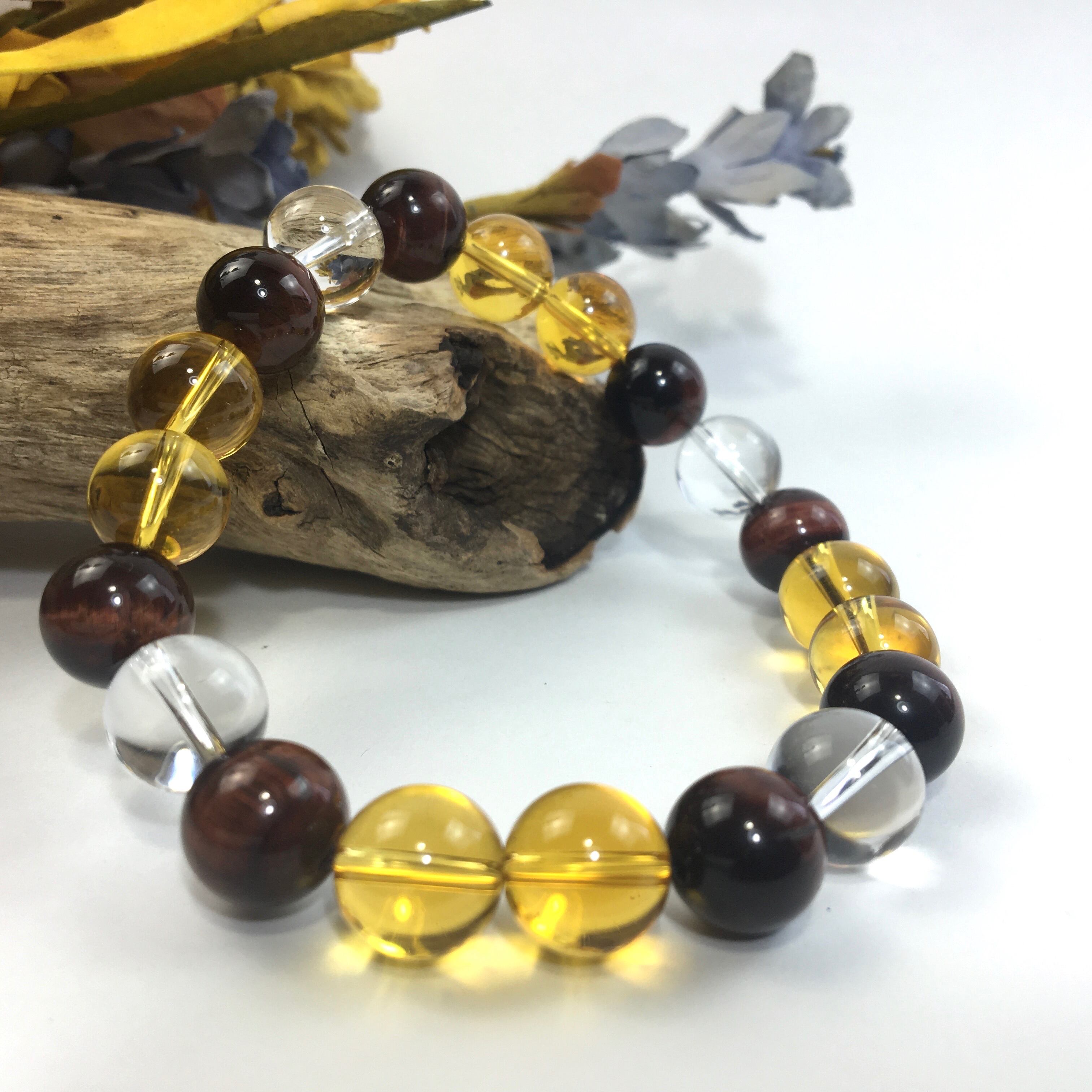 水晶×レッドタイガーアイ×シトリン パワーストーン ブレスレット 10mm 天然石 メンズ・レディース 男性・女性 数珠ブレス 開運 ☆