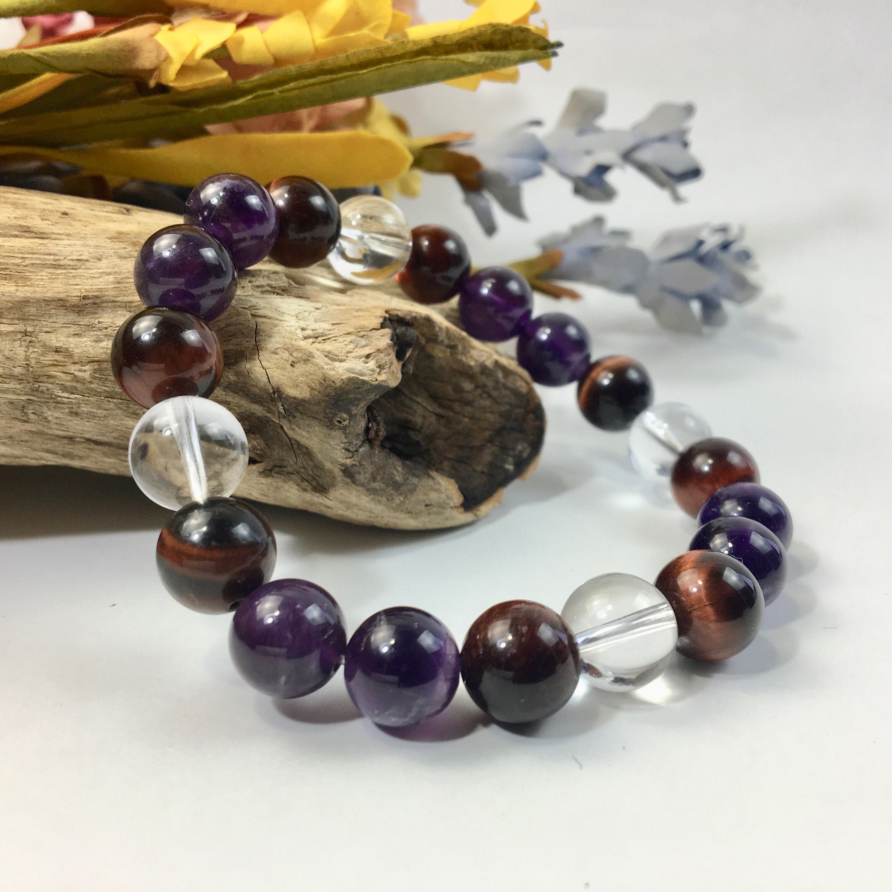 水晶×レッドタイガーアイ×アメジスト パワーストーン ブレスレット 10mm 天然石 メンズ・レディース 男性・女性 数珠ブレス 開運 ☆