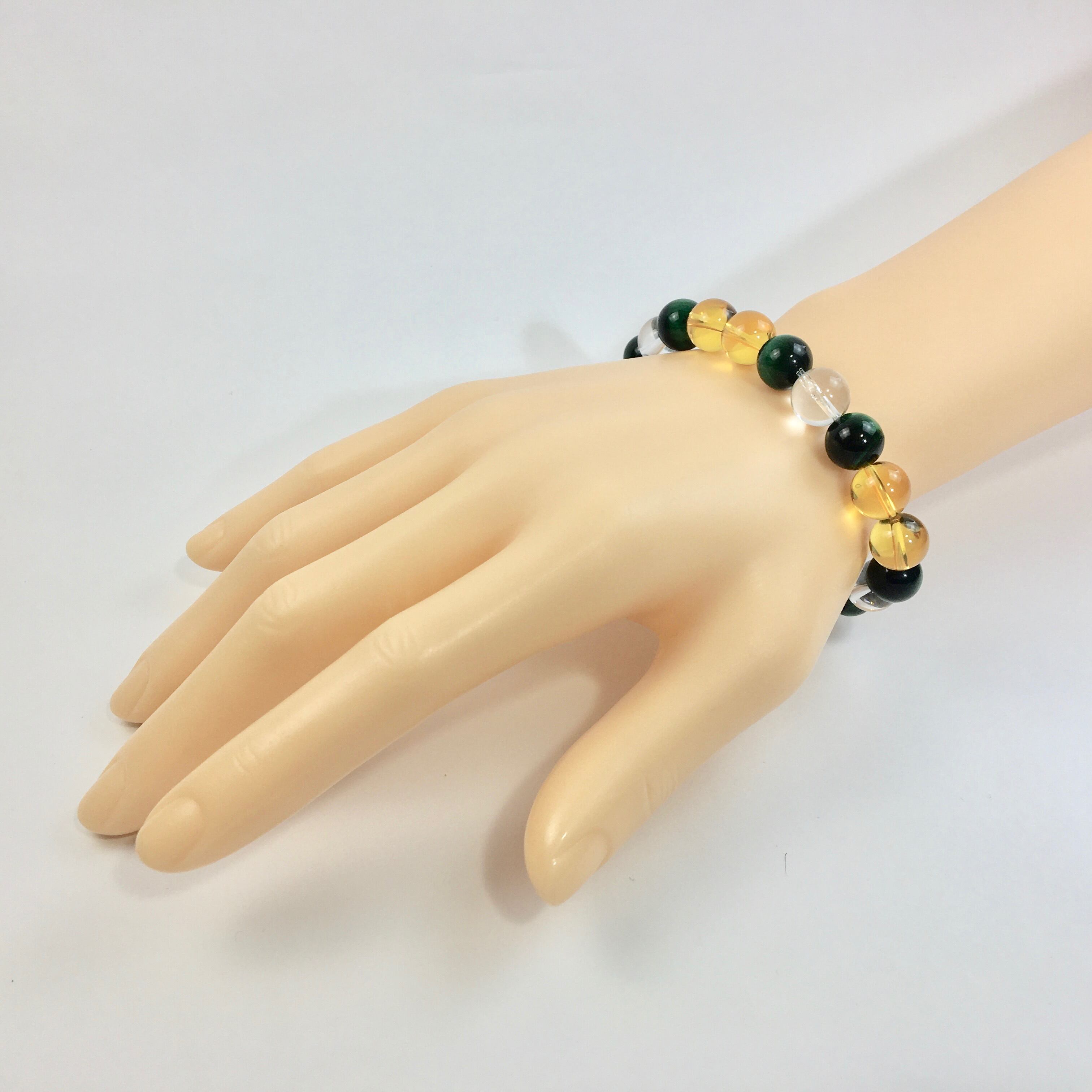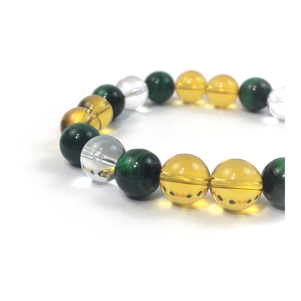 水晶×グリーンタイガーアイ×シトリン パワーストーン ブレスレット 10mm 天然石 メンズ・レディース 男性・女性 数珠ブレス 開運 ☆