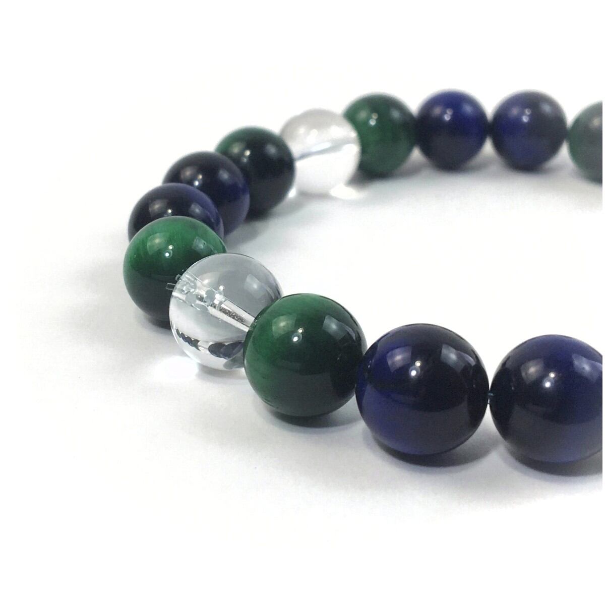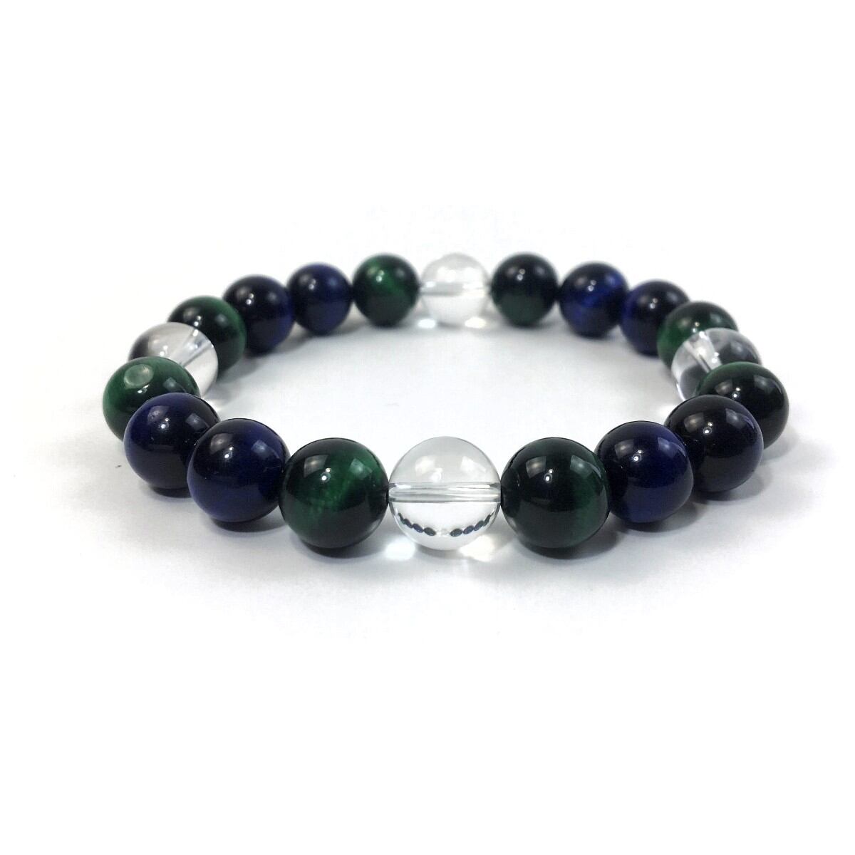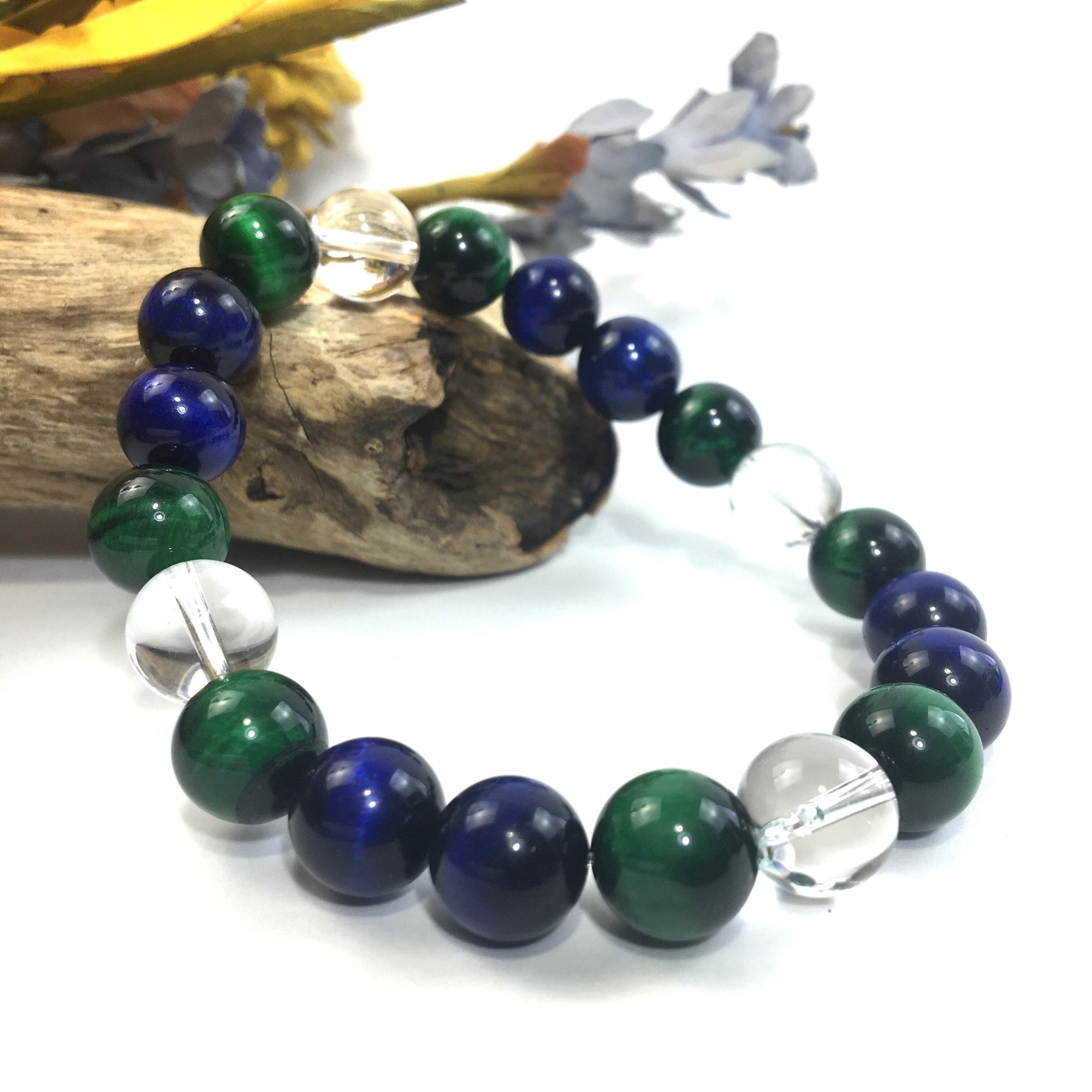 水晶×グリーンタイガーアイ×ブルータイガーアイ パワーストーン ブレスレット 10mm 天然石 メンズ・レディース 男性・女性 数珠ブレス 開運 ☆