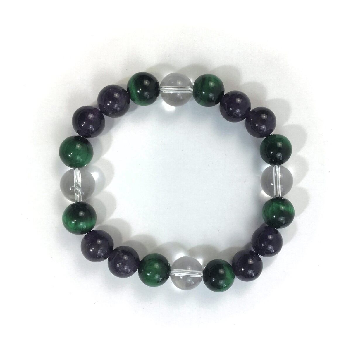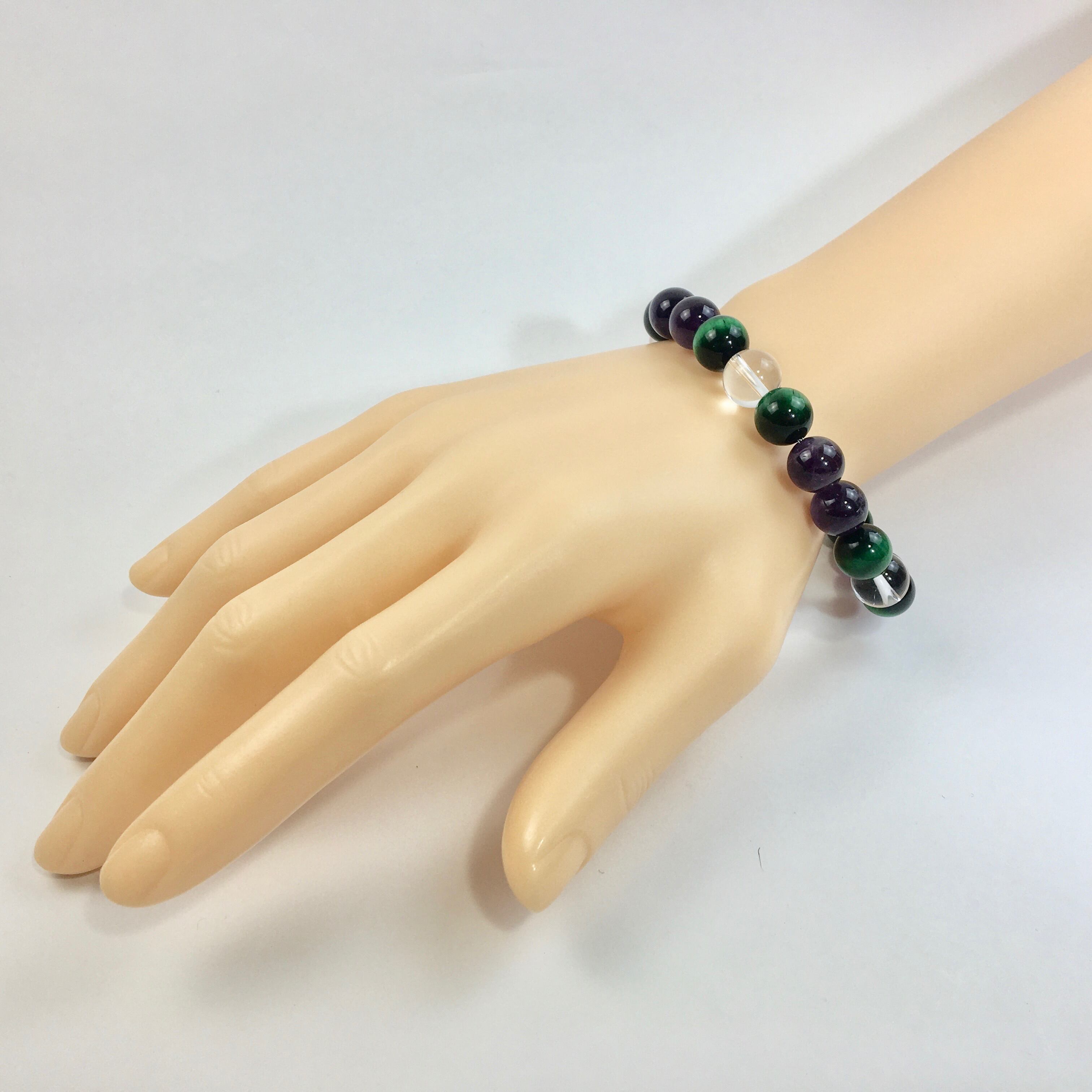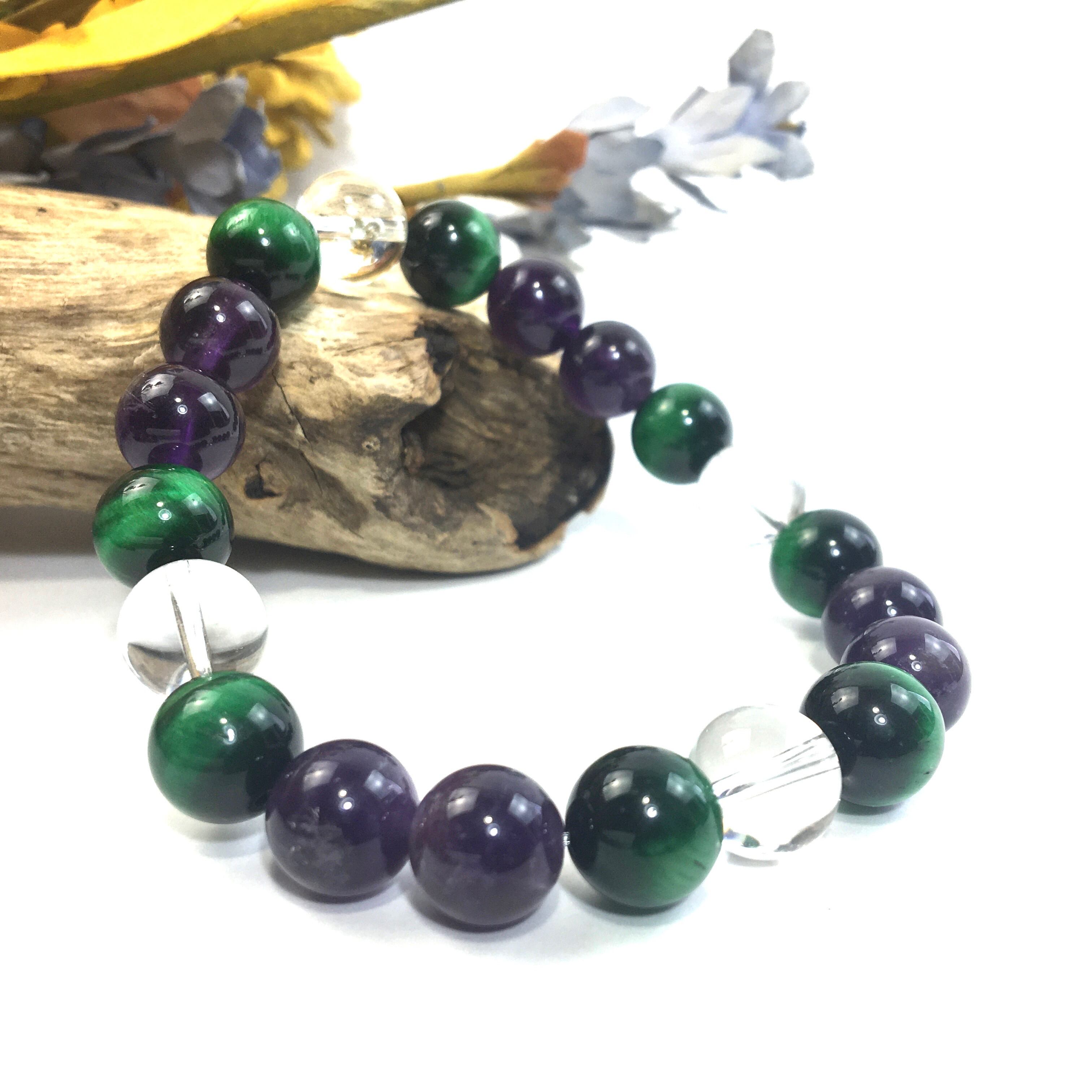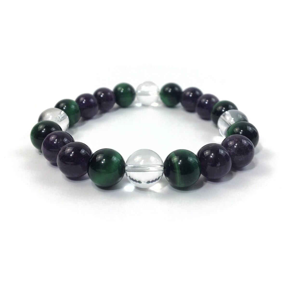 水晶×グリーンタイガーアイ×アメジスト パワーストーン ブレスレット 10mm 天然石 メンズ・レディース 男性・女性 数珠ブレス 開運 ☆