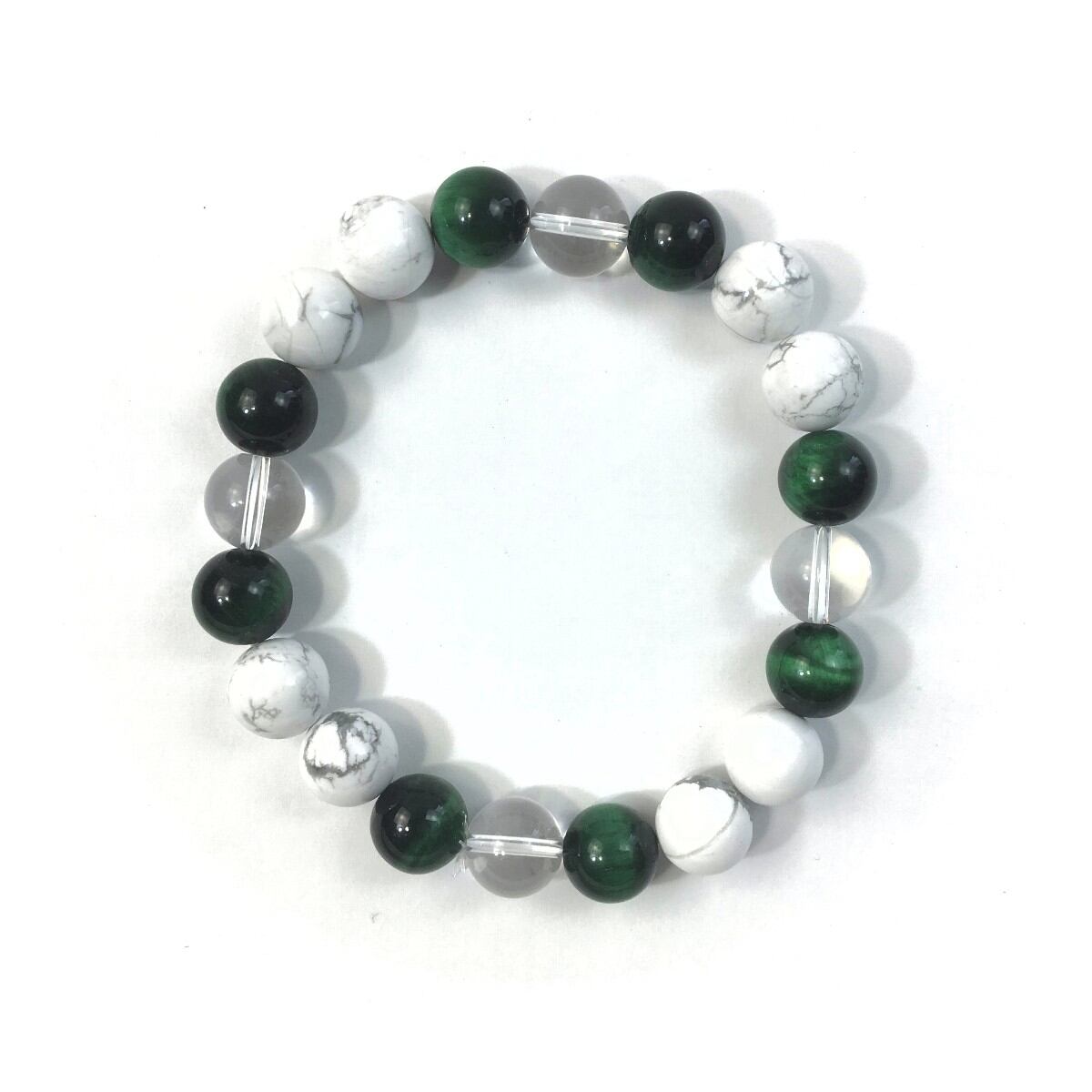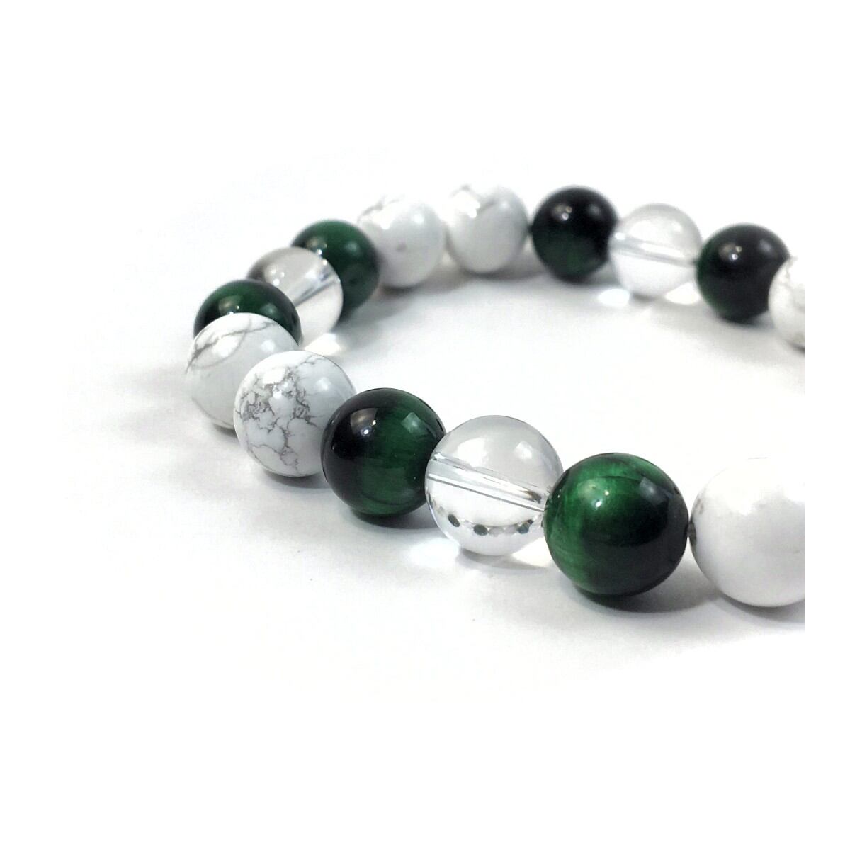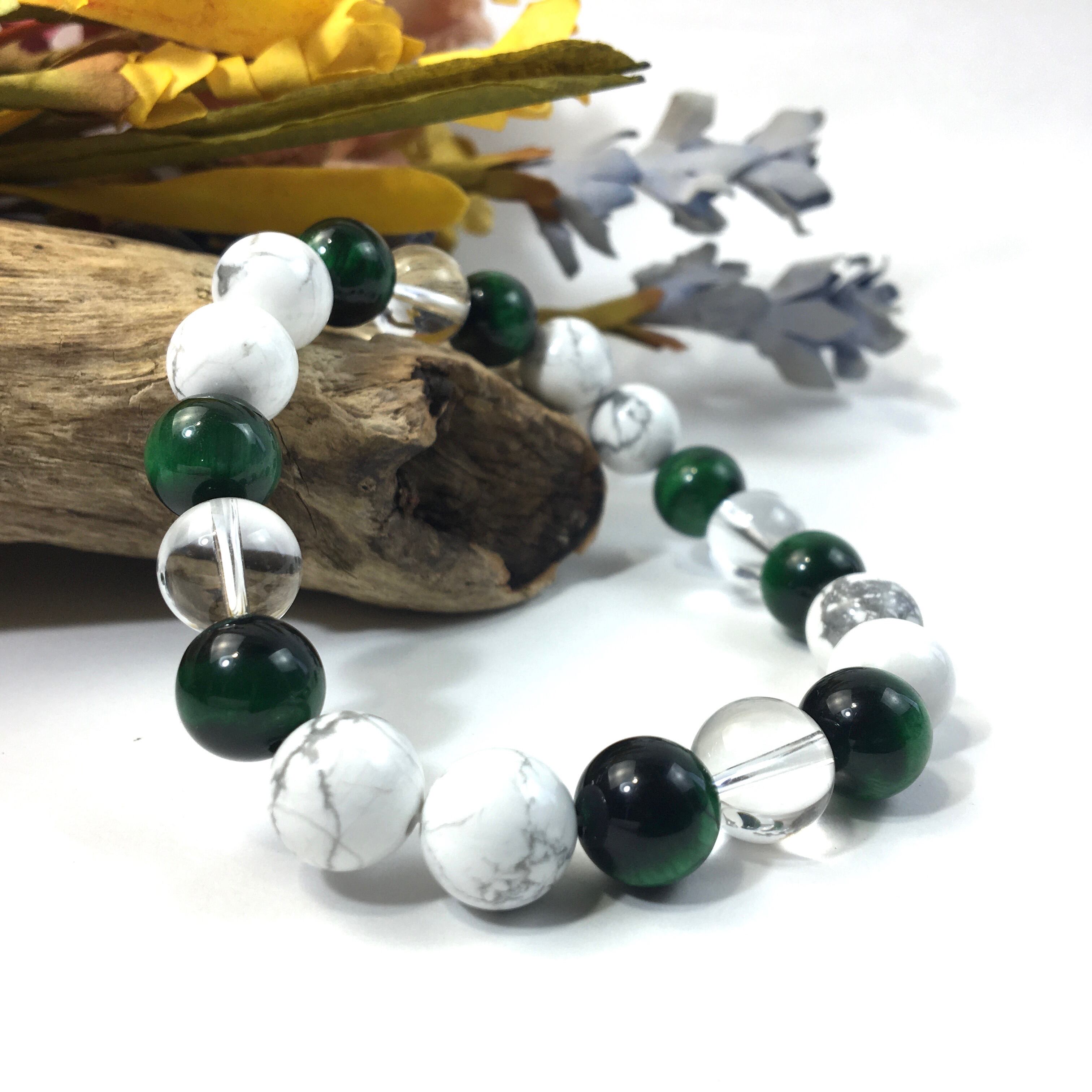 水晶×グリーンタイガーアイ×ハウライト パワーストーン ブレスレット 10mm 天然石 メンズ・レディース 男性・女性 数珠ブレス 開運 ☆