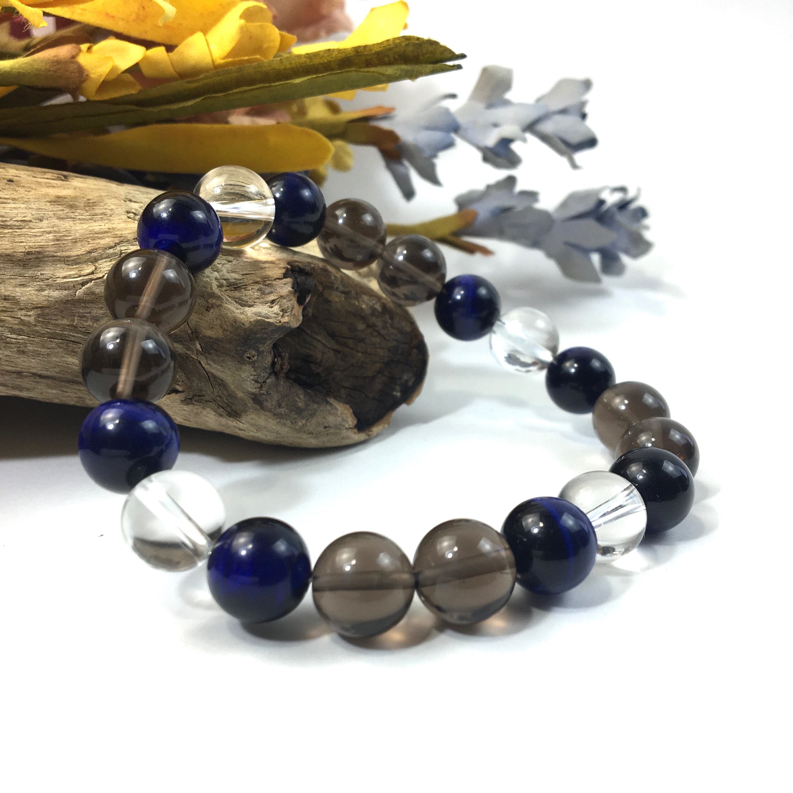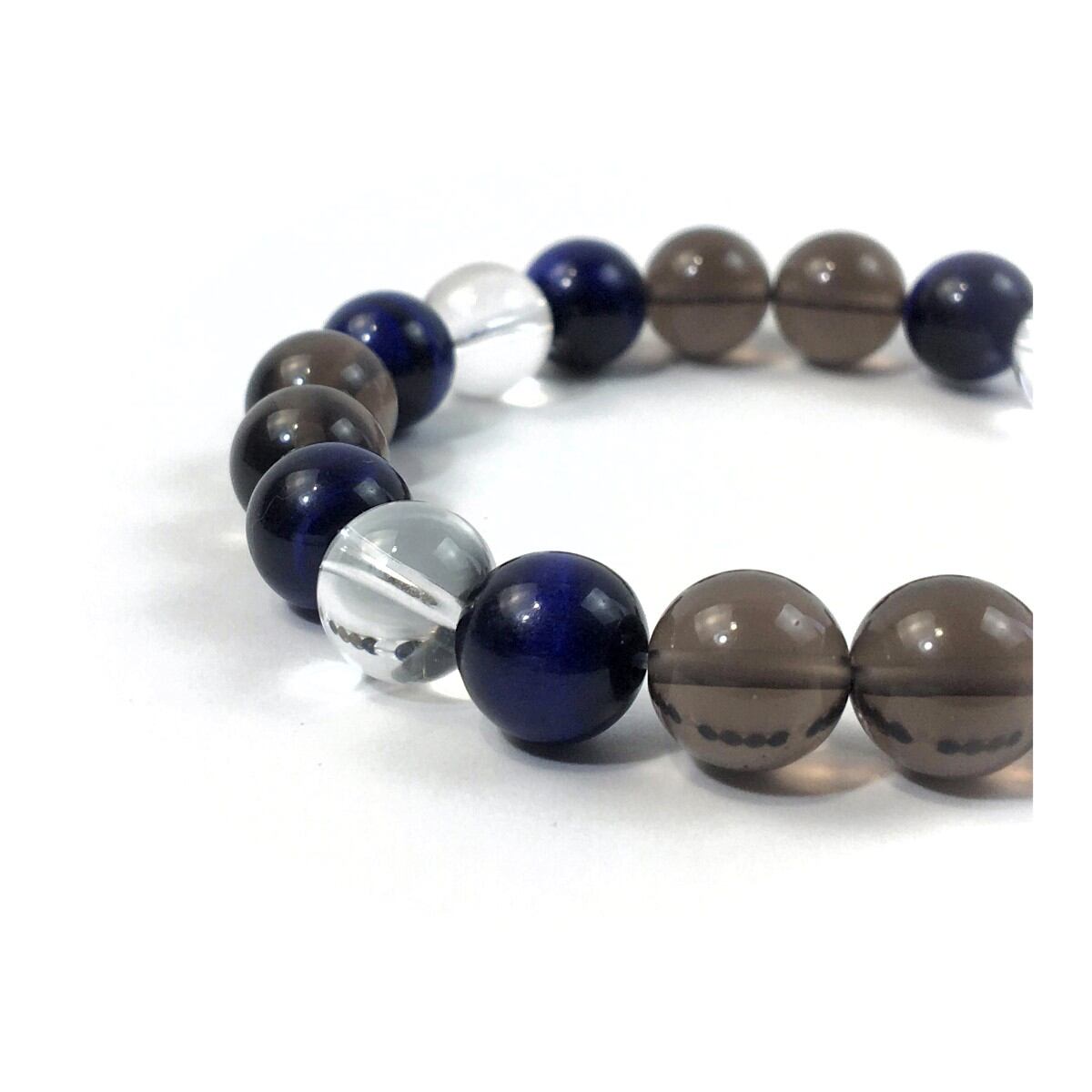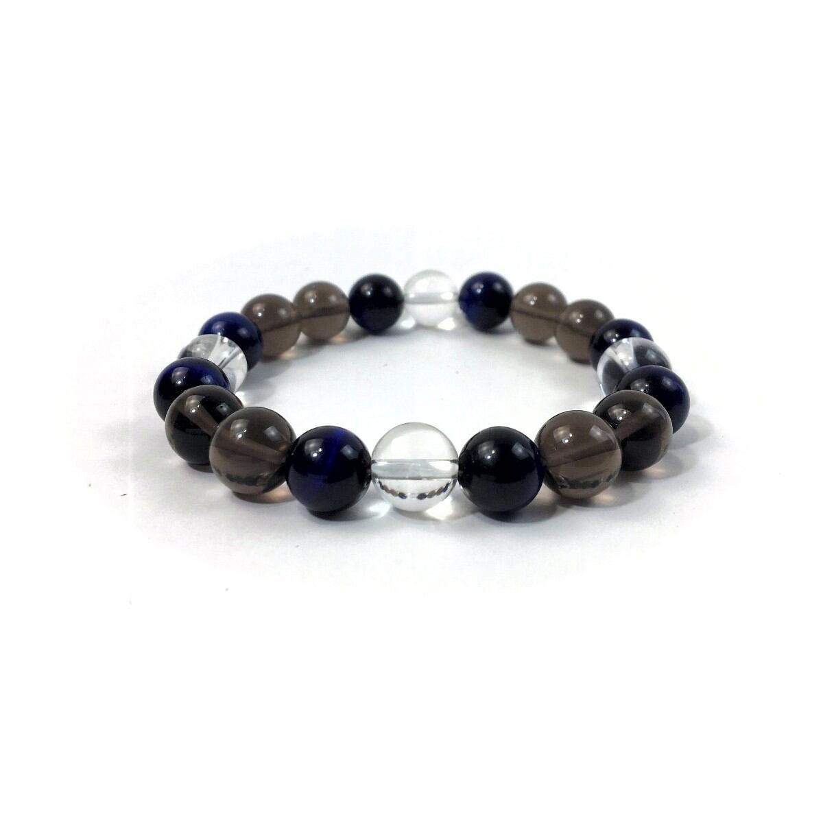 水晶×ブルータイガーアイ×スモーキークォーツ パワーストーン ブレスレット 10mm 天然石 メンズ・レディース 男性・女性 数珠ブレス 開運 ☆