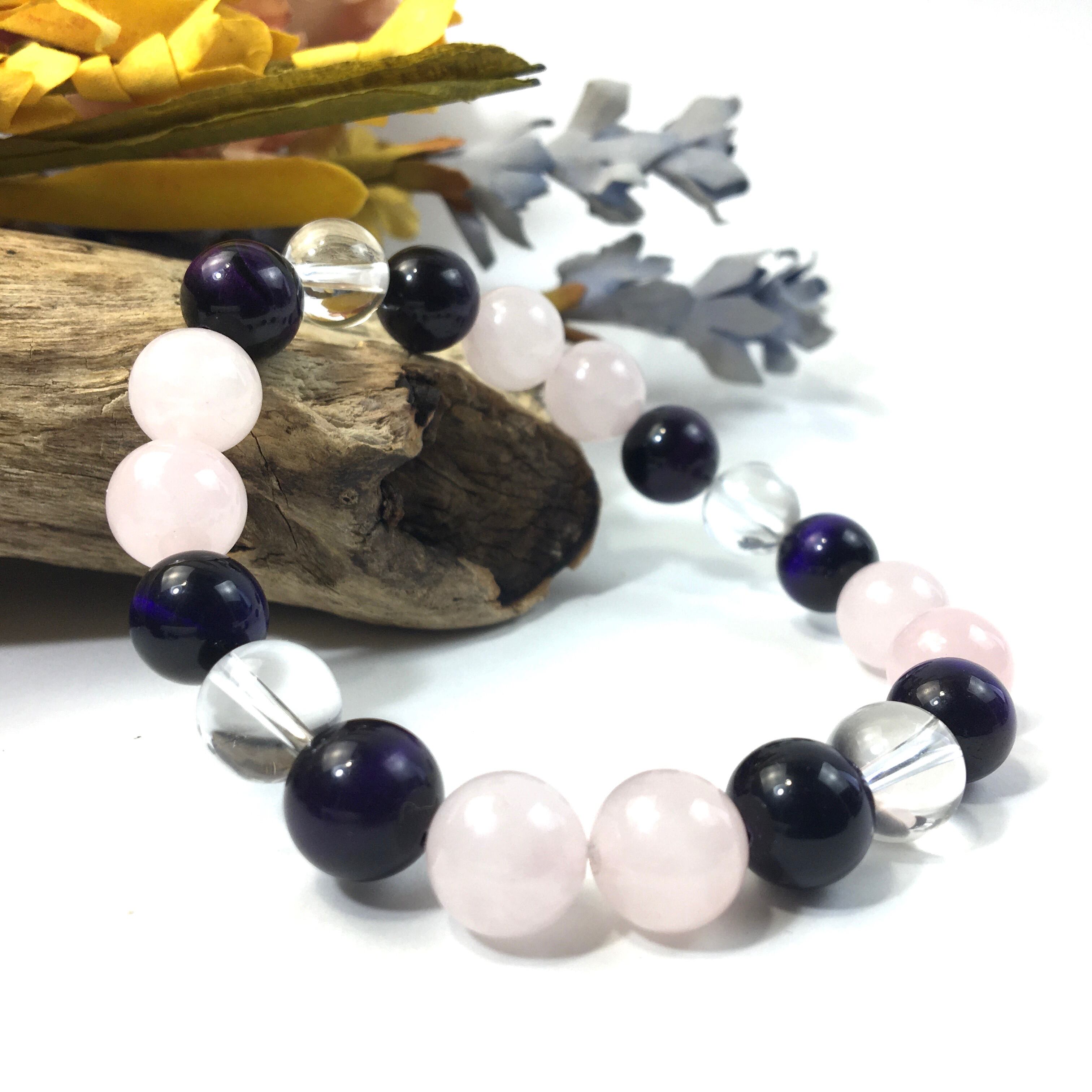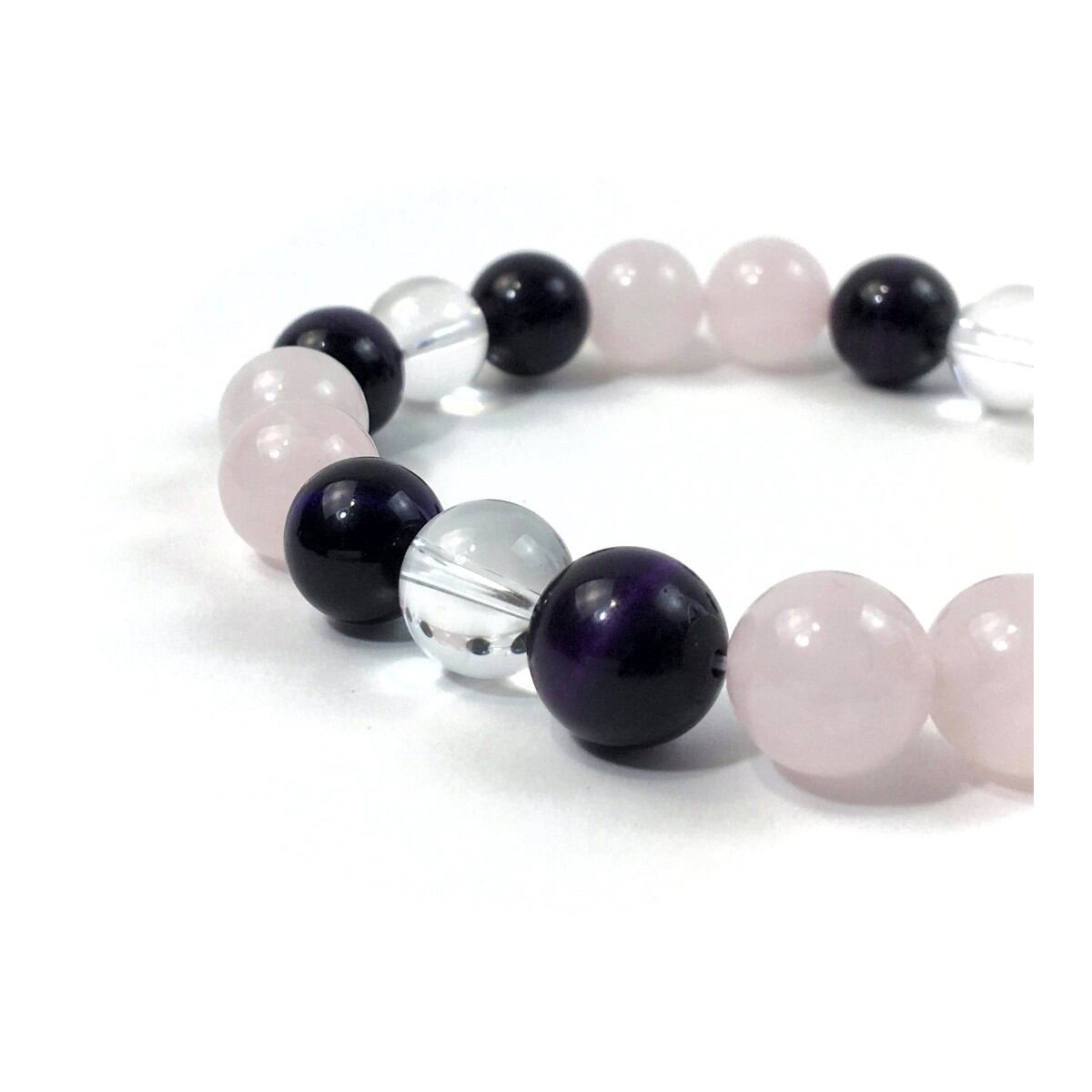 水晶×パープルタイガーアイ×ローズクォーツ パワーストーン ブレスレット 10mm 天然石 メンズ・レディース 男性・女性 数珠ブレス 開運 ☆