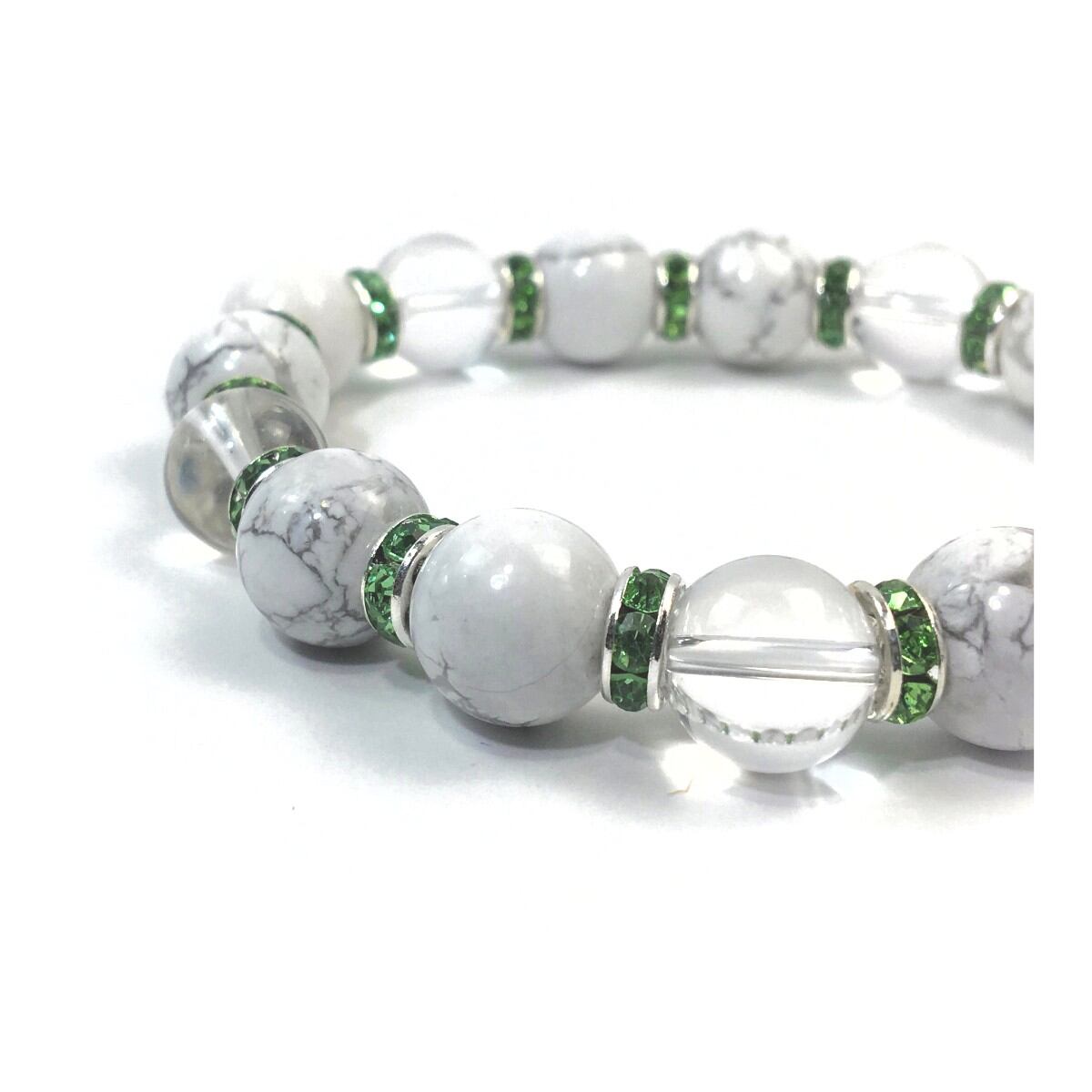ハウライト&水晶 パワーストーン ブレスレット 天然石 12mm (グリーン)メンズ・レディース 男性・女性 数珠ブレス 開運