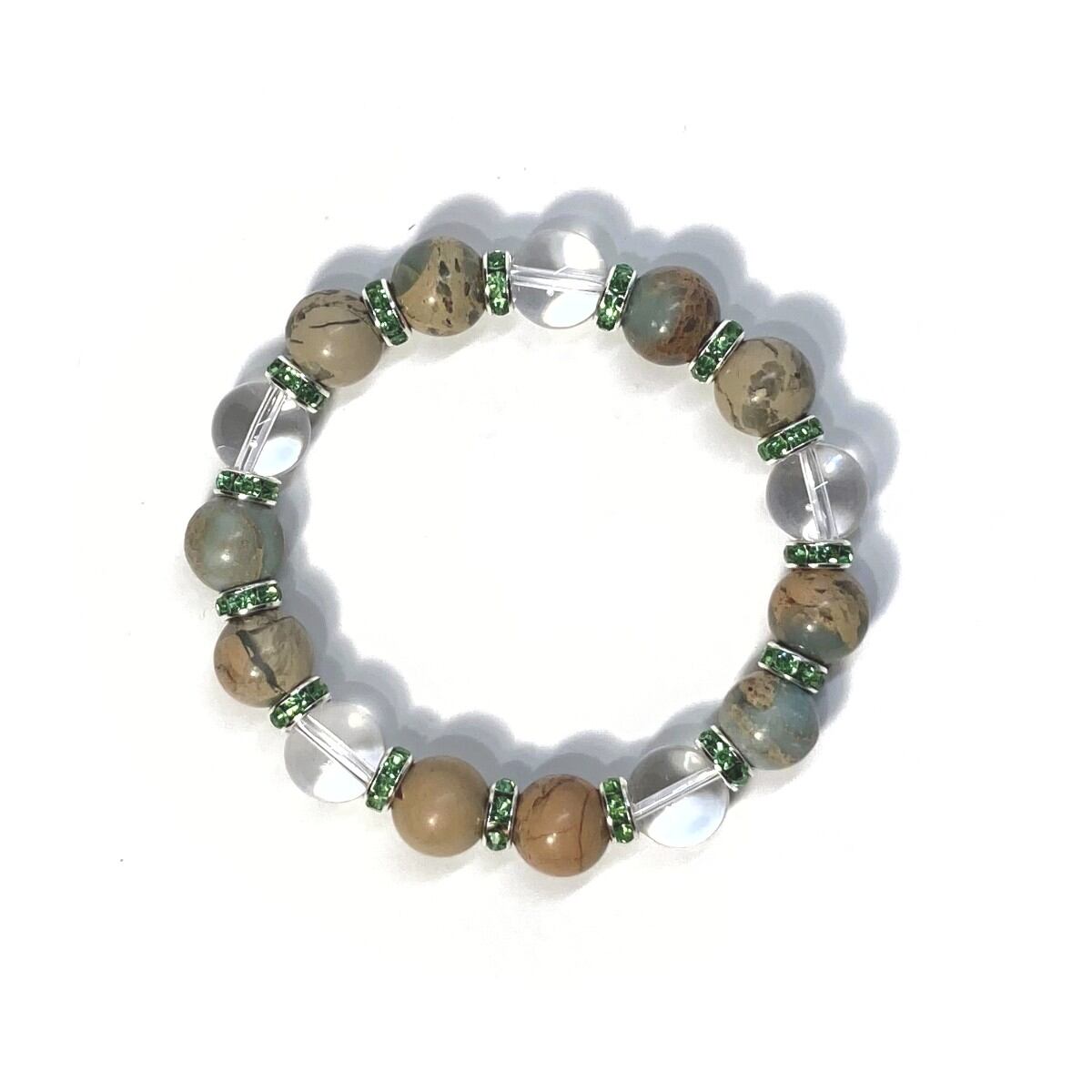 インプレッションストーン&水晶 パワーストーン ブレスレット 12mm(グリーン)メンズ・レディース 男性・女性 数珠ブレス 開運