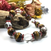タイガーアイ&水晶 パワーストーン ブレスレット 天然石 12mm (レッド)メンズ・レディース 男性・女性 数珠ブレス 開運