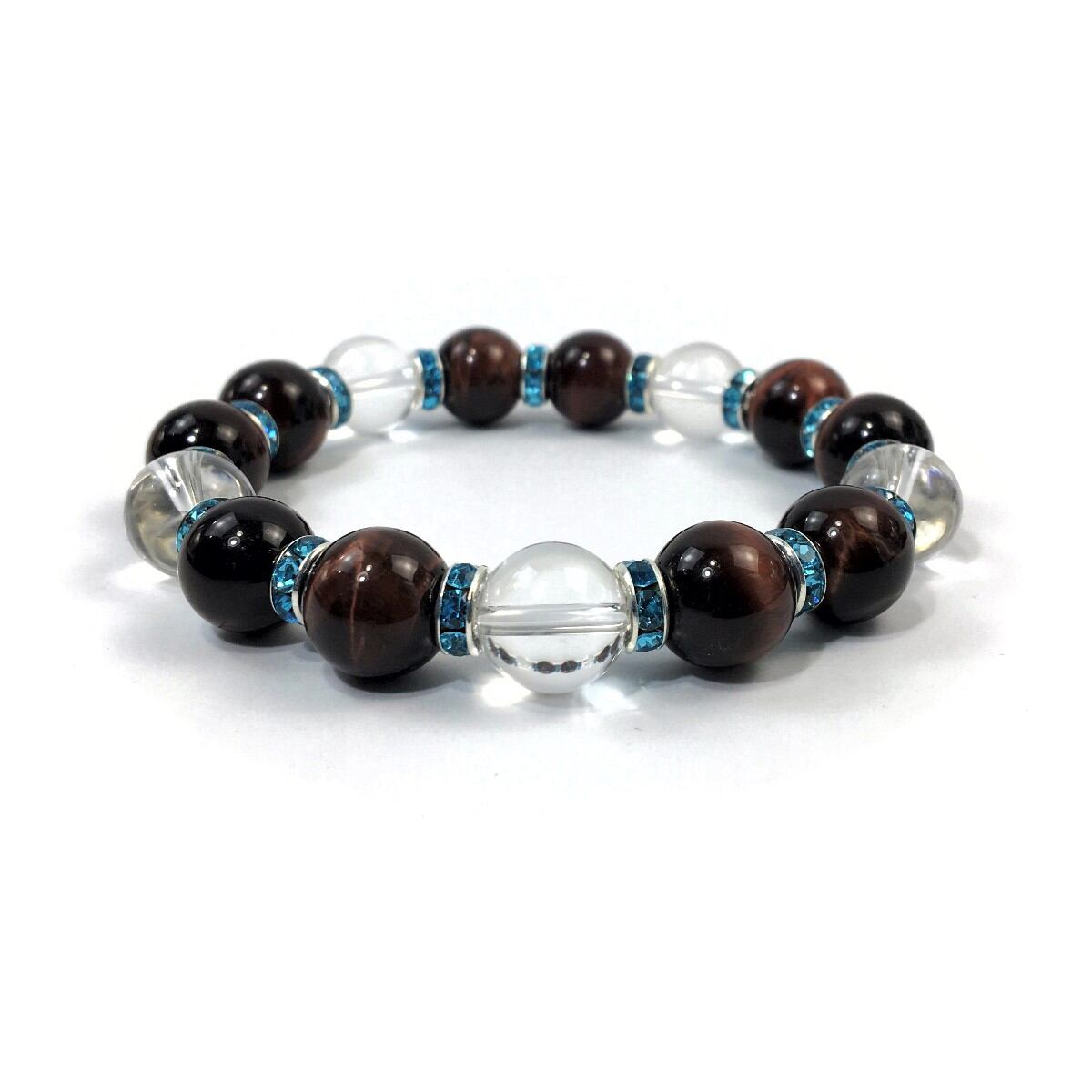 レッドタイガーアイ&水晶 パワーストーン ブレスレット 12mm (ライトブルー)メンズ・レディース 男性・女性 数珠ブレス 開運
