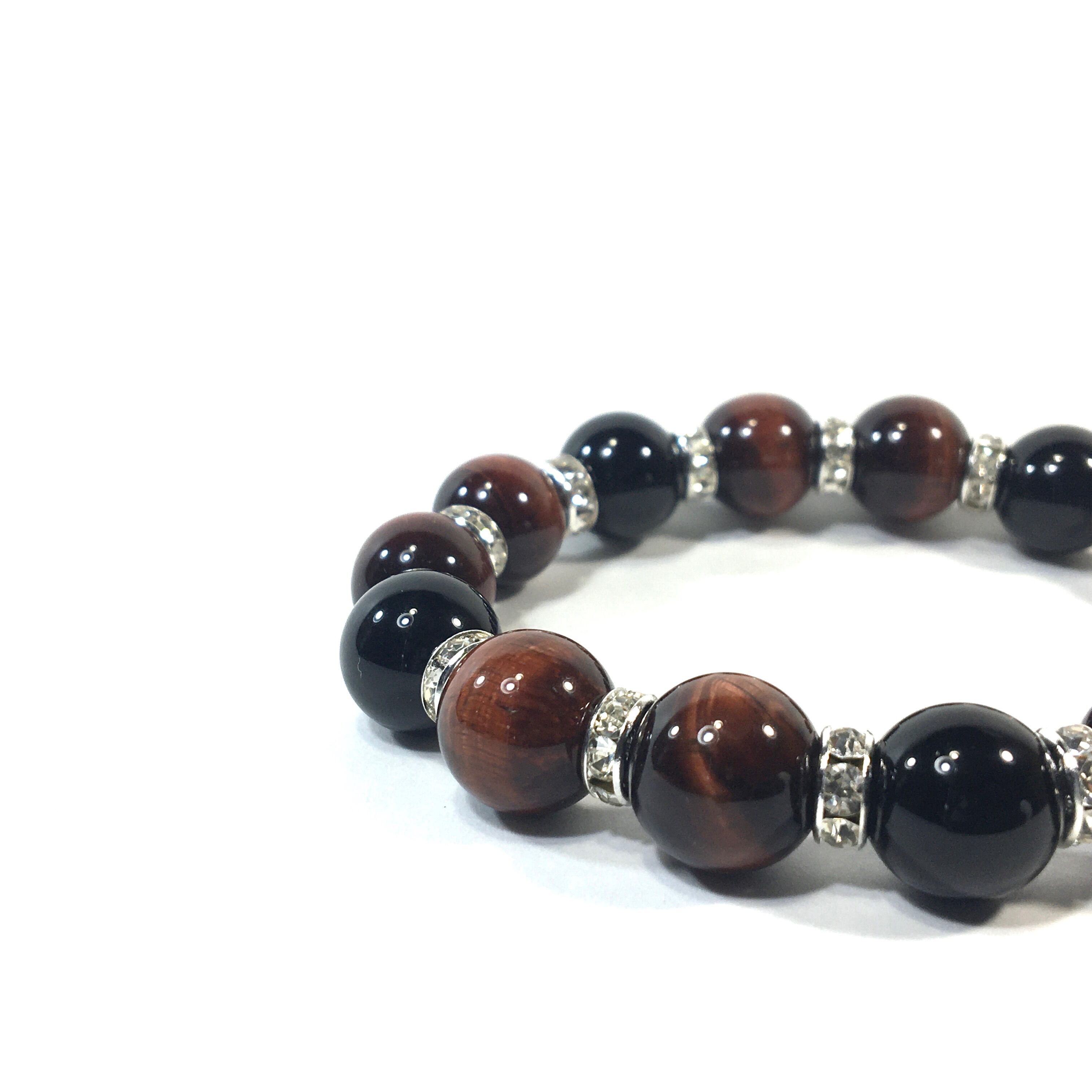 レッドタイガーアイ&オニキス パワーストーン ブレスレット 12mm (シルバー)メンズ・レディース 男性・女性 数珠ブレス 開運