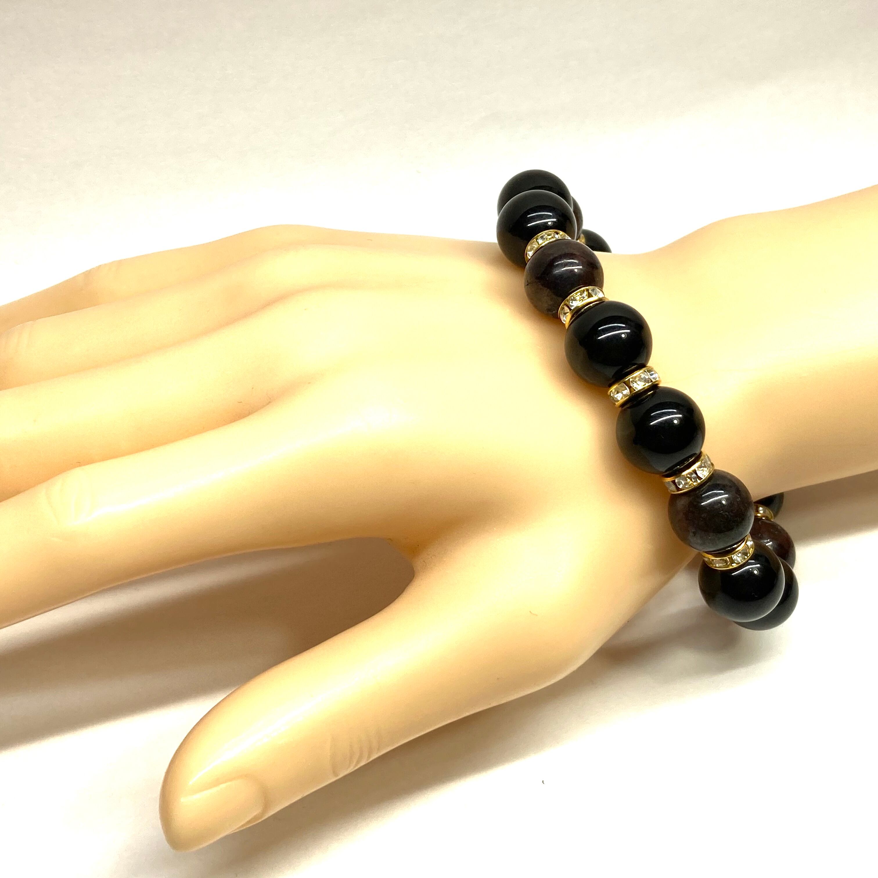 こちらは、モリオンとガーネットを組み合わせたパワーストーンブレスレットです。間にはロンデルを挟み高級感あるデザインに仕上げております。石大きさは12mm玉を使用して内周 約18cmです。気になる方は是非この機会にどうぞ。